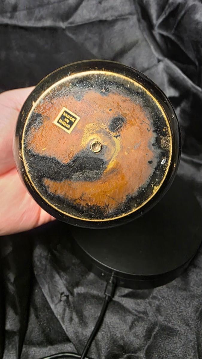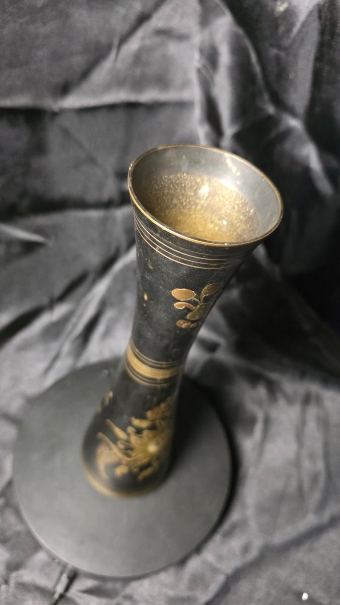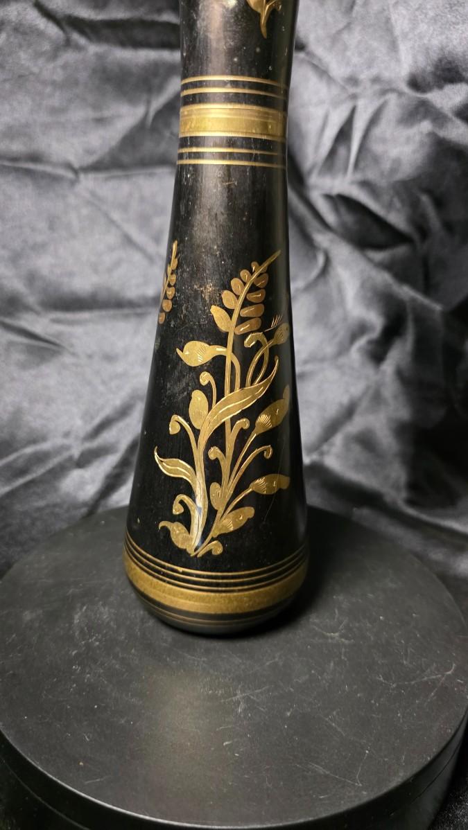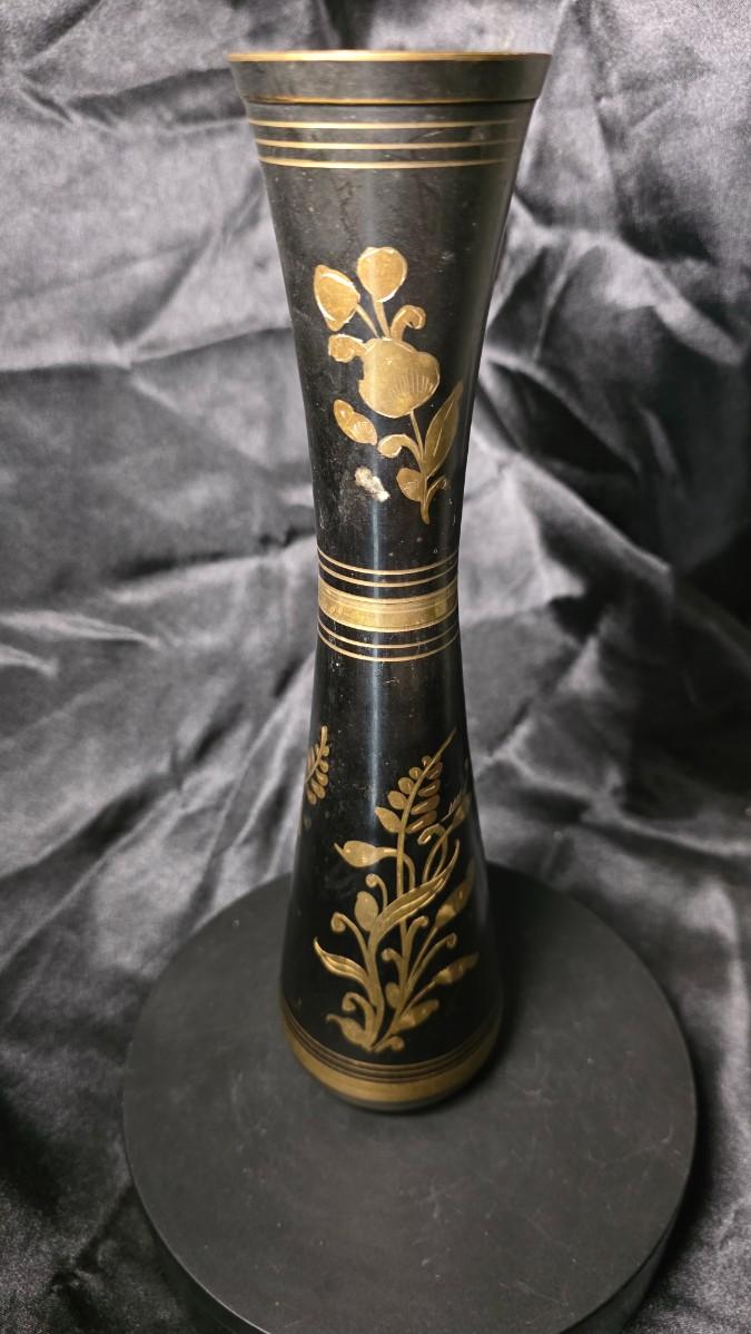 Vintage Black & Gold Hand-Etched Brass Vase – Indian Floral Motif