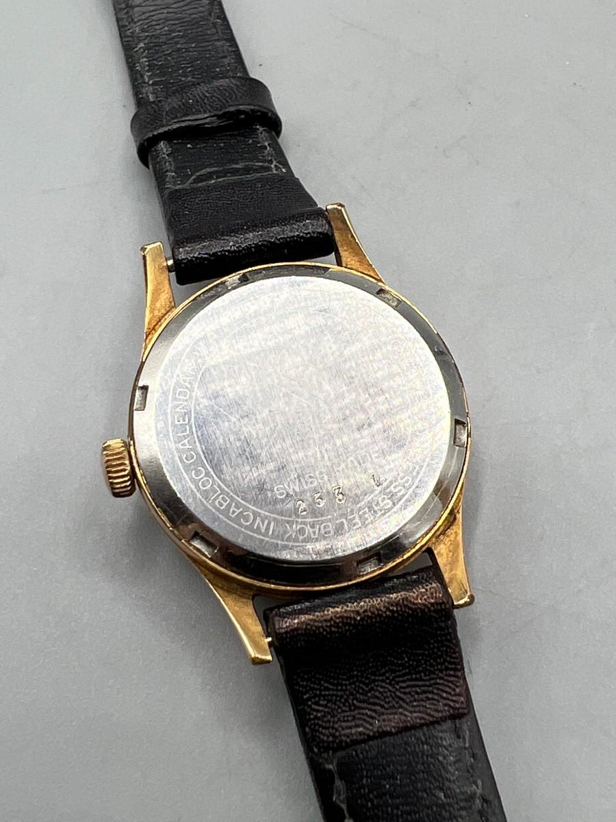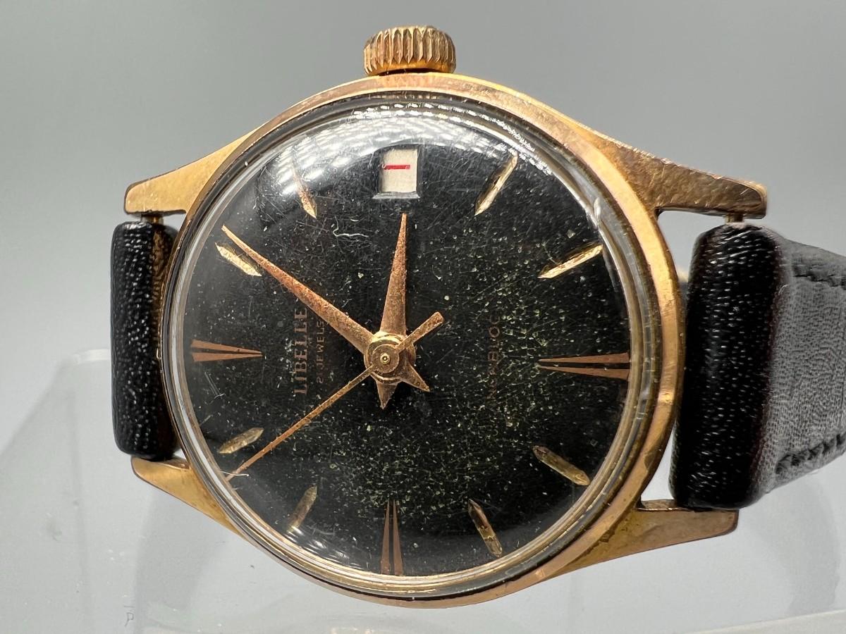 Vintage Black & Gold Tone Wristwatch Date Keeper Libelle