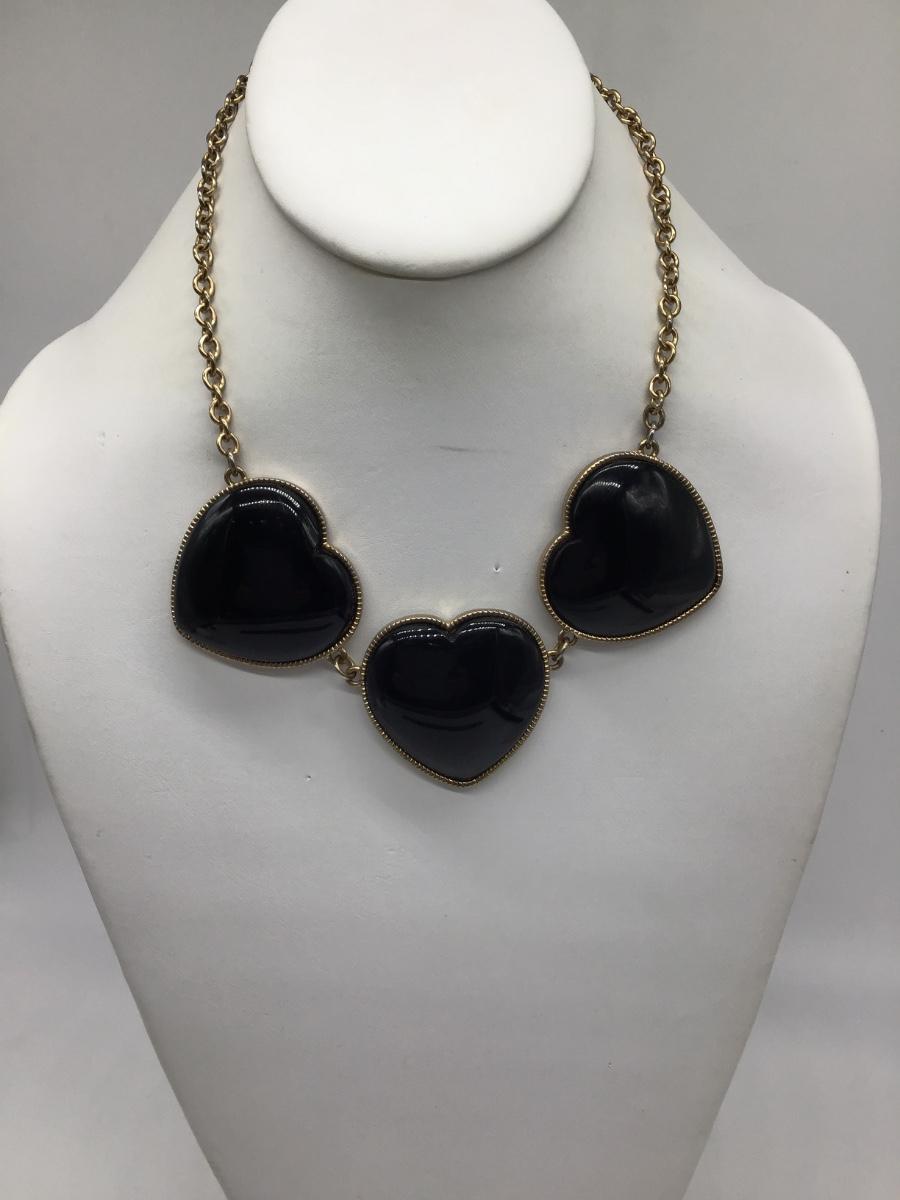 Vintage Black Heart Trio Necklace