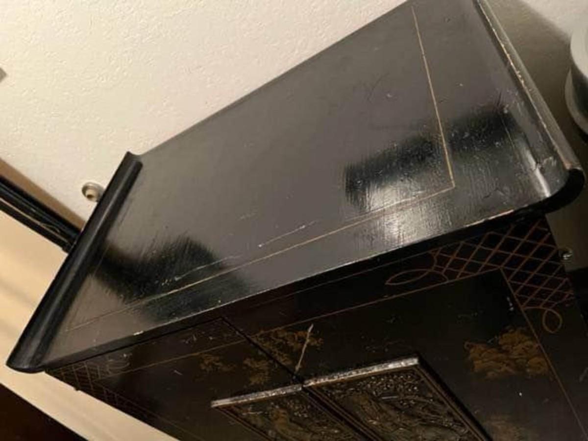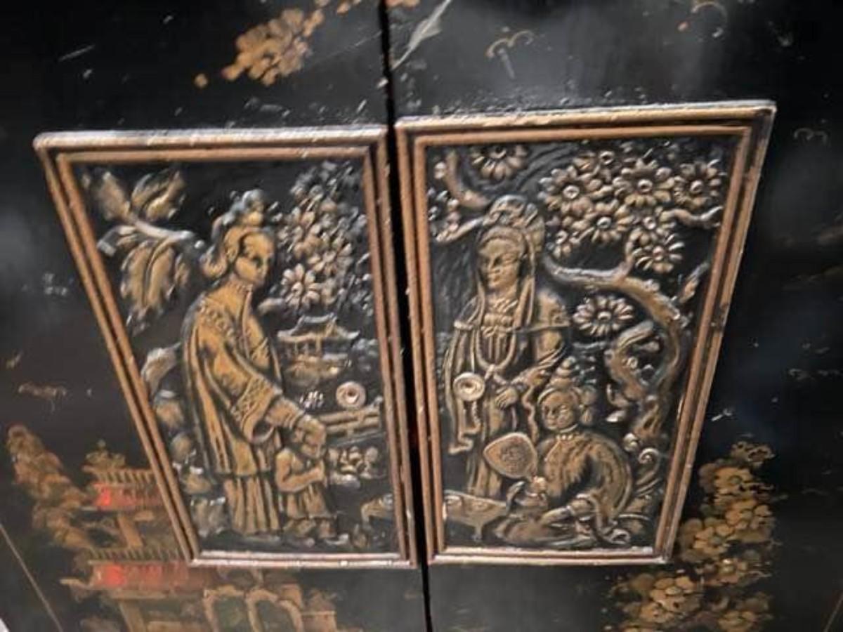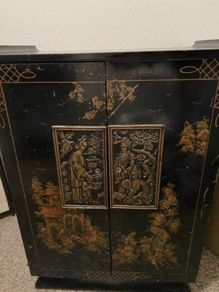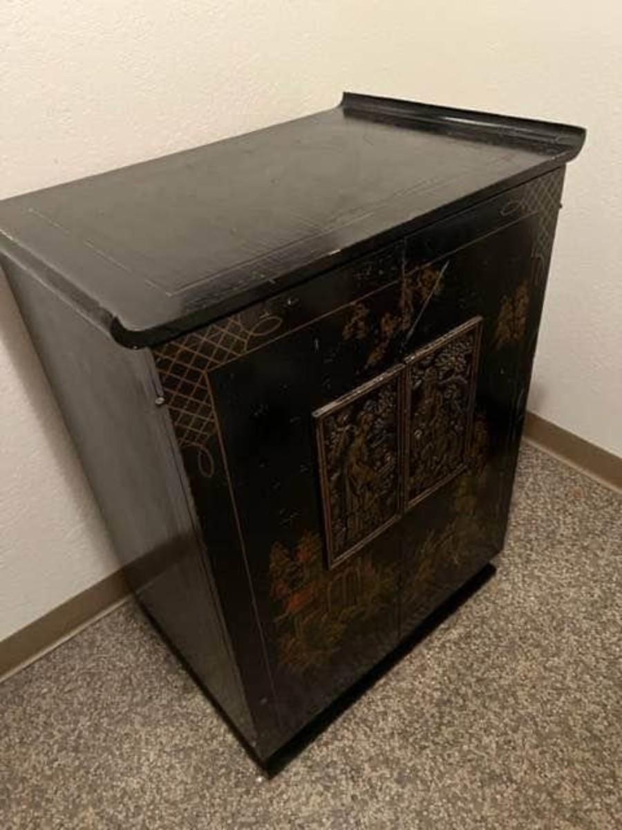 Vintage Black Lacquer Asian Wood Asian Wood Cabinet
