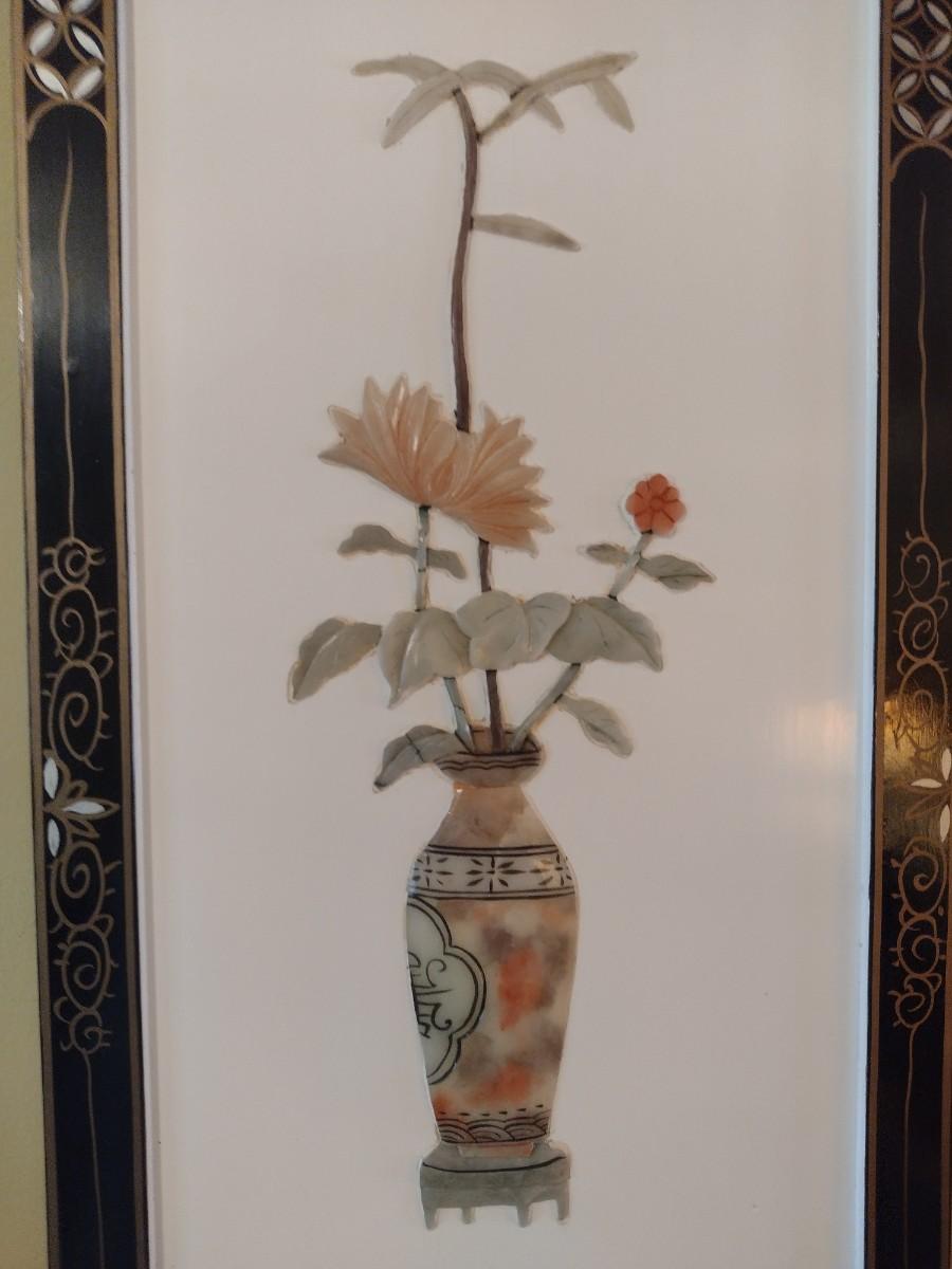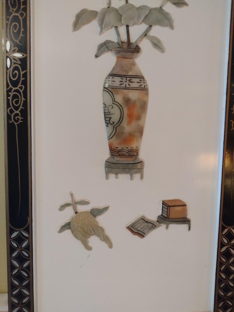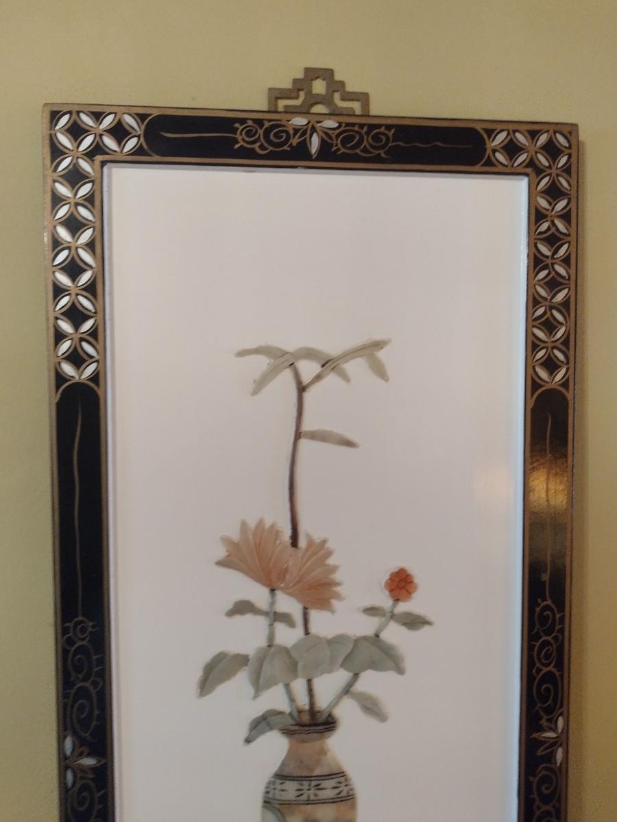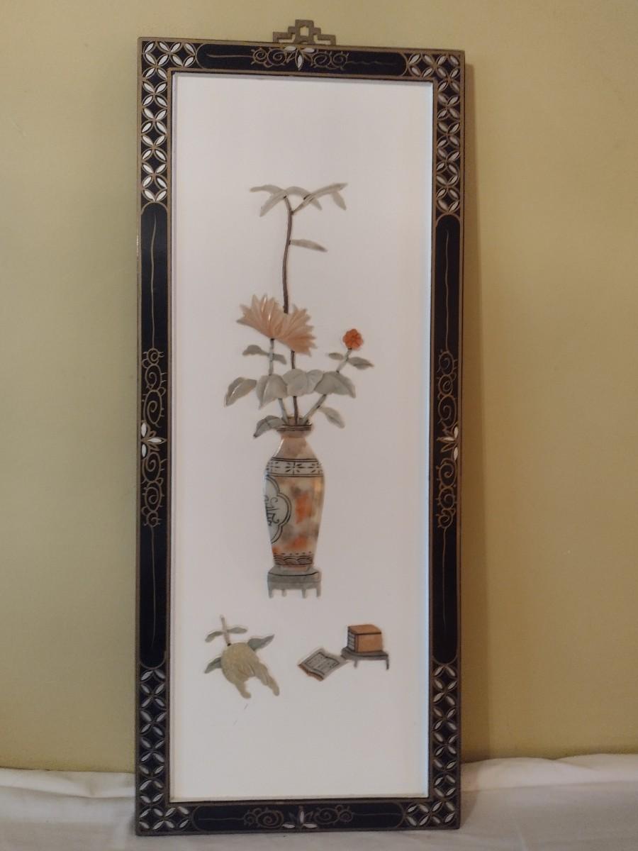 Vintage Black Lacquer Framed Mother of Pearl Wall Art