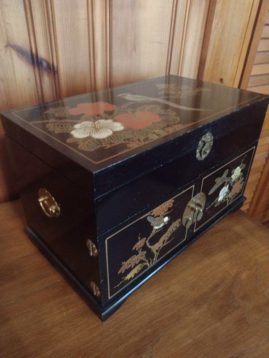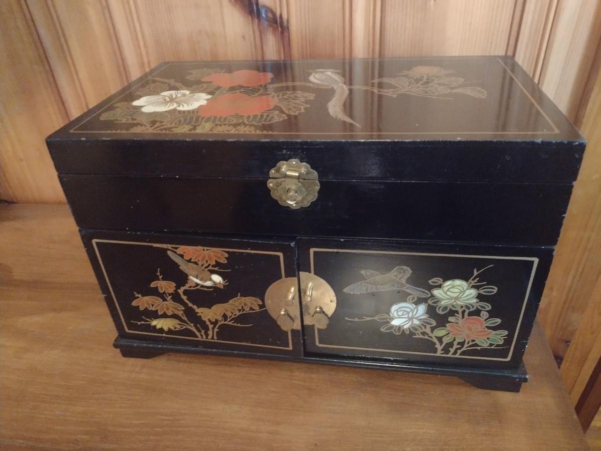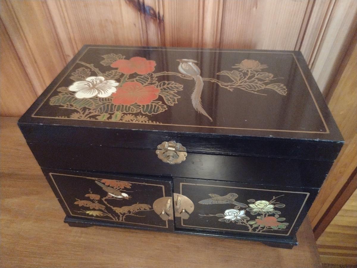 Vintage Black Lacquer Jewelry Chest (No Contents)