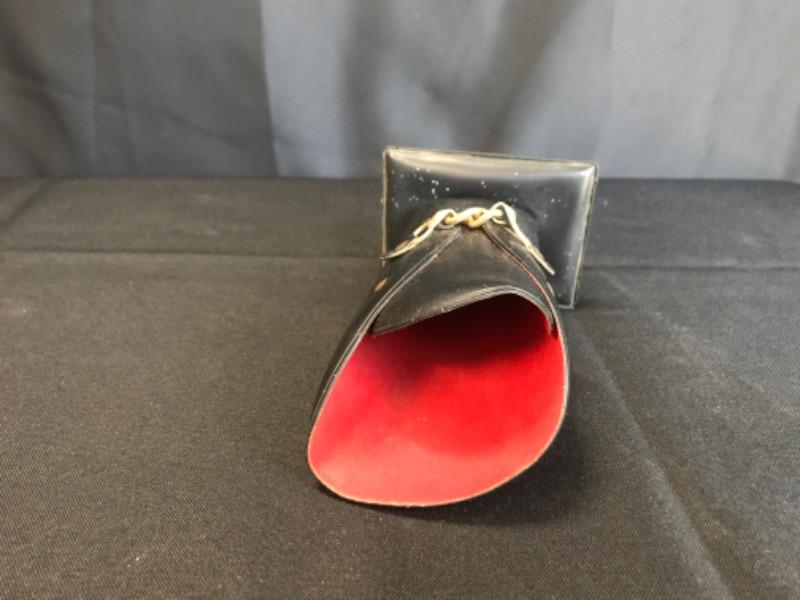 Black leather eyeglass holder In good vintage condition. About 6 inches tall