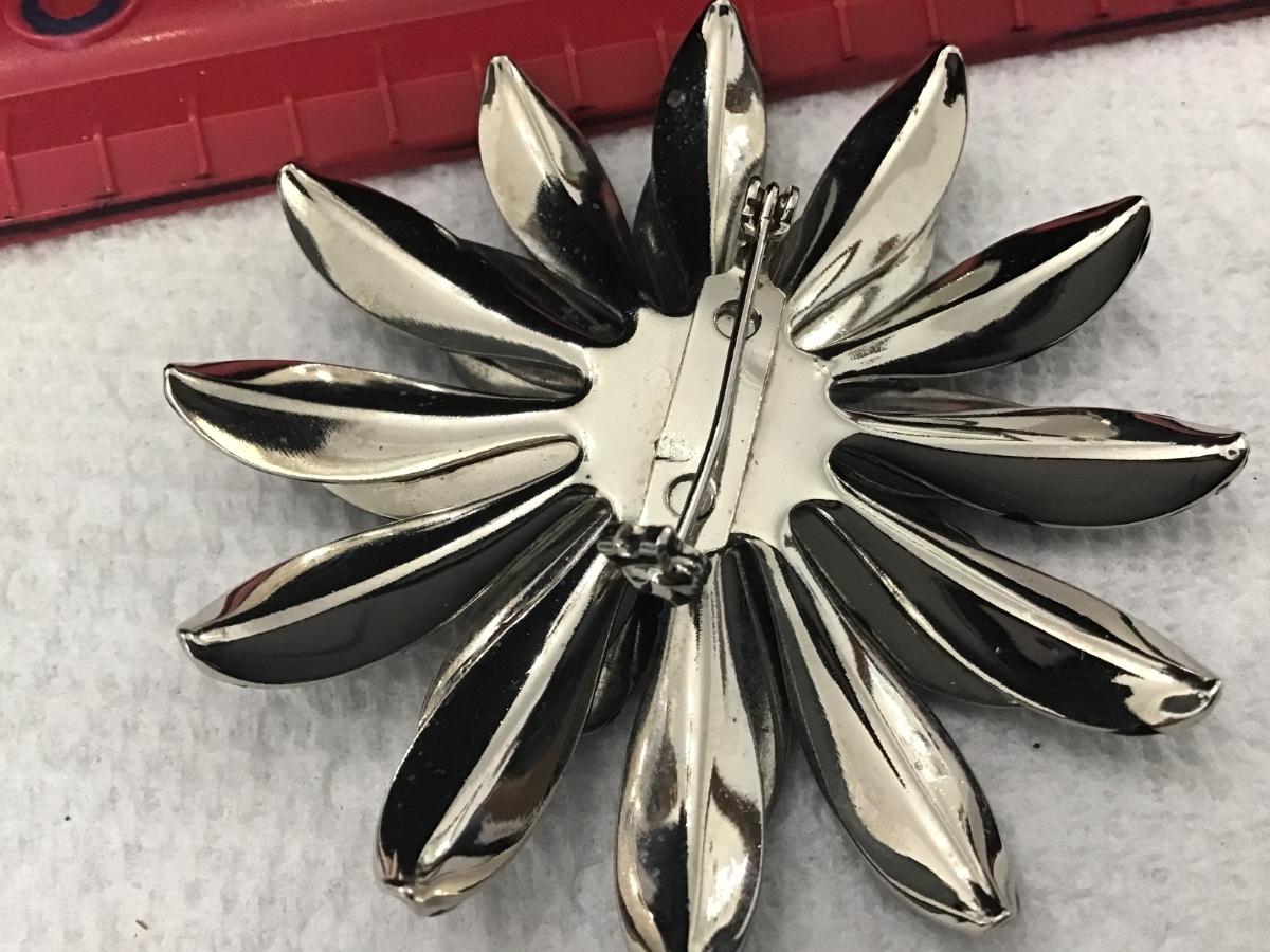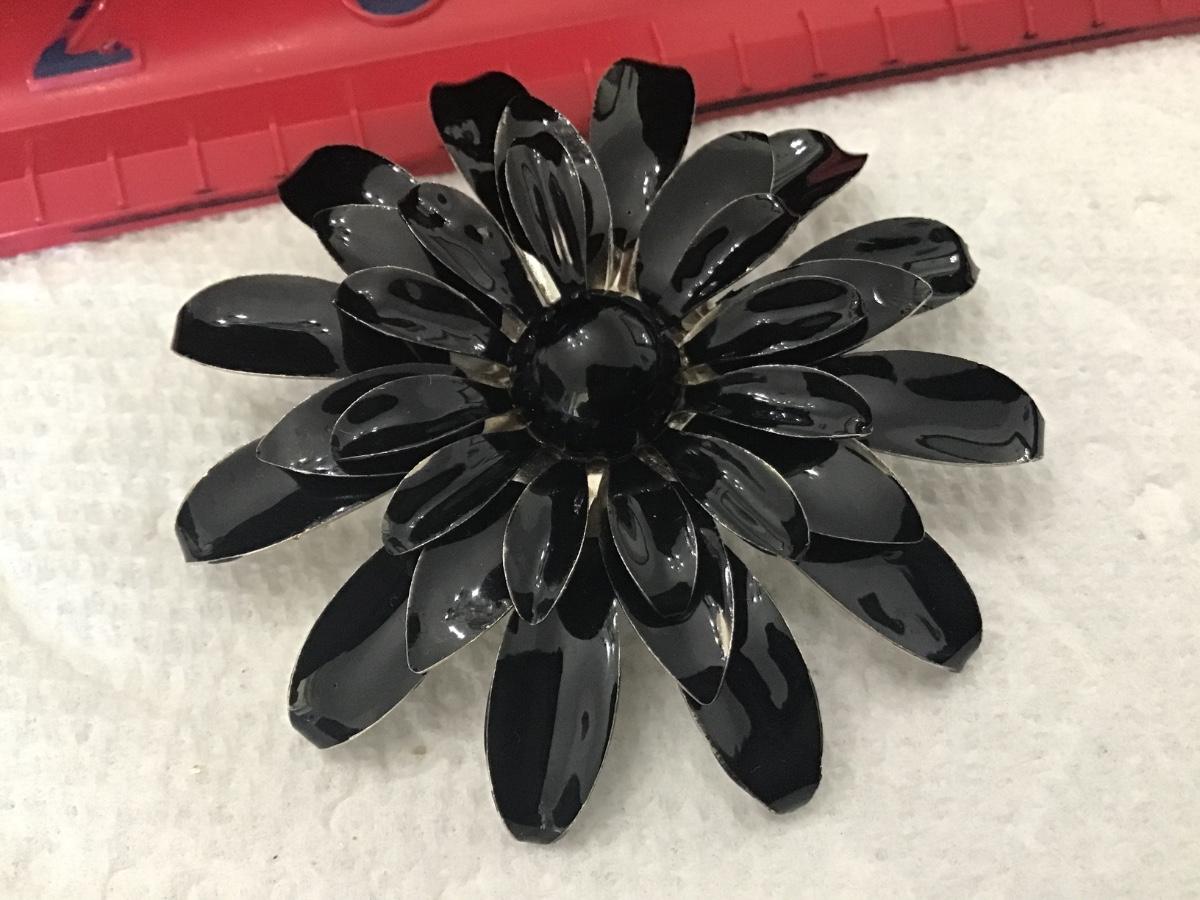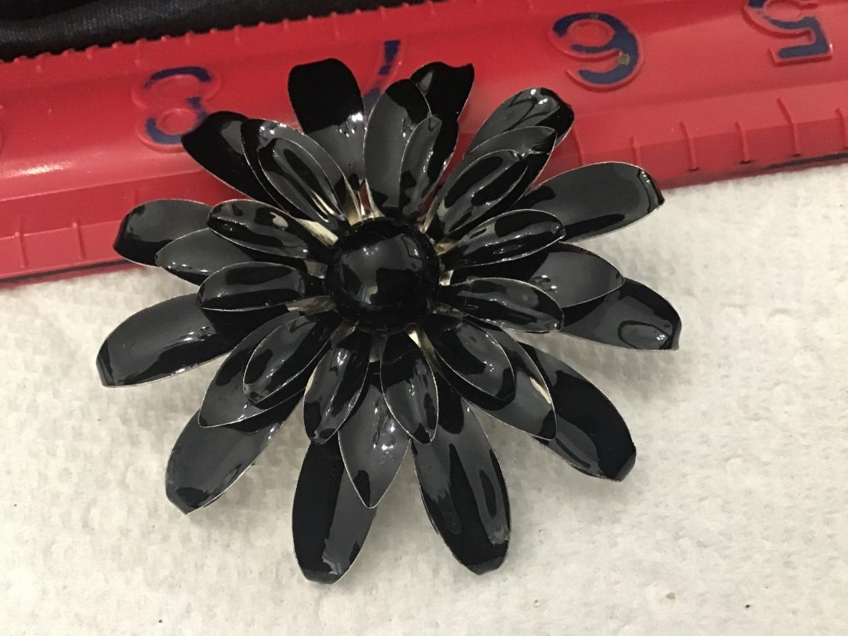 Vintage Black Metal Large Daisy Flower Pin / Brooch