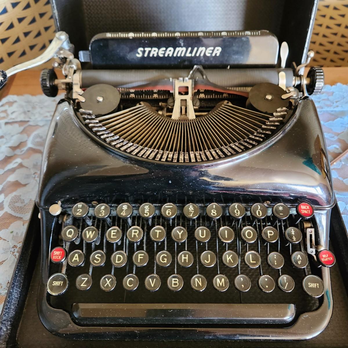 Vintage Black Remington Rand Streamliner Portable Typewriter with case