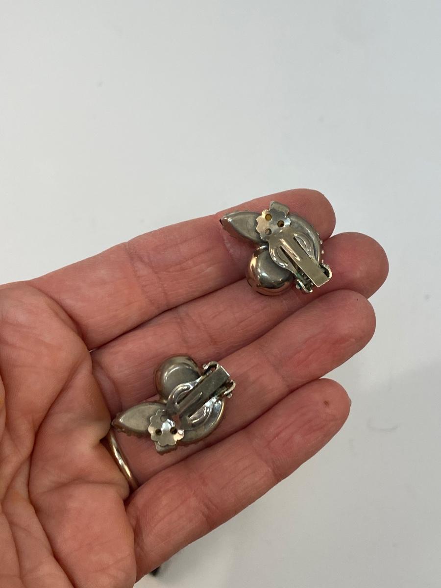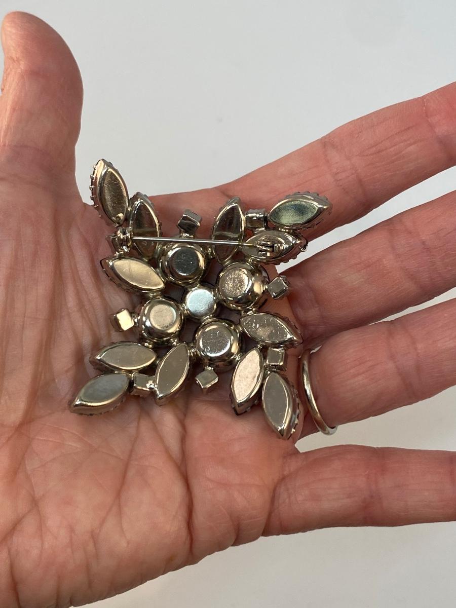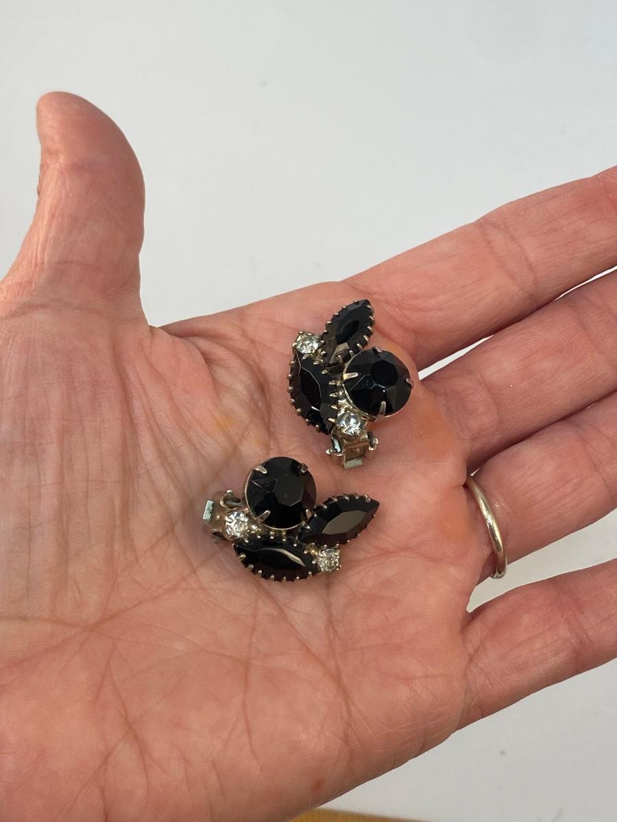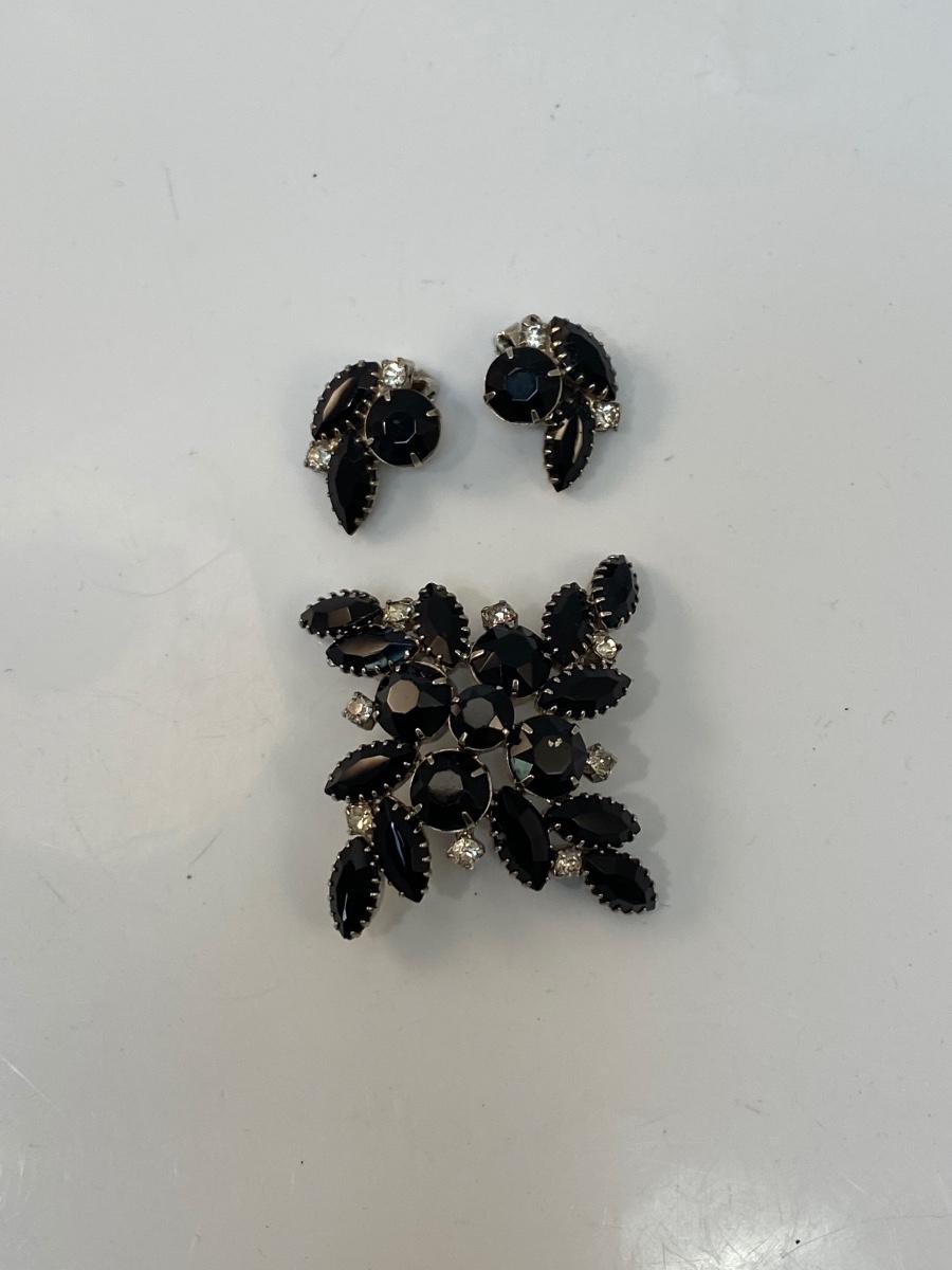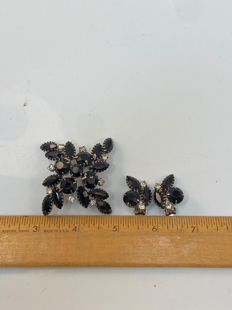 Vintage Black Rhinestone Brooch Pin & Clip Style Earrings