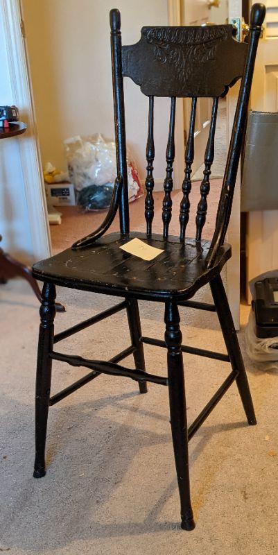 Vintage Black tall chair, child's high chair, pressed back and spindles(#46)