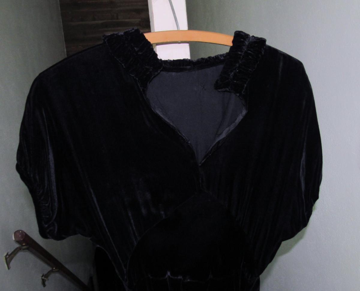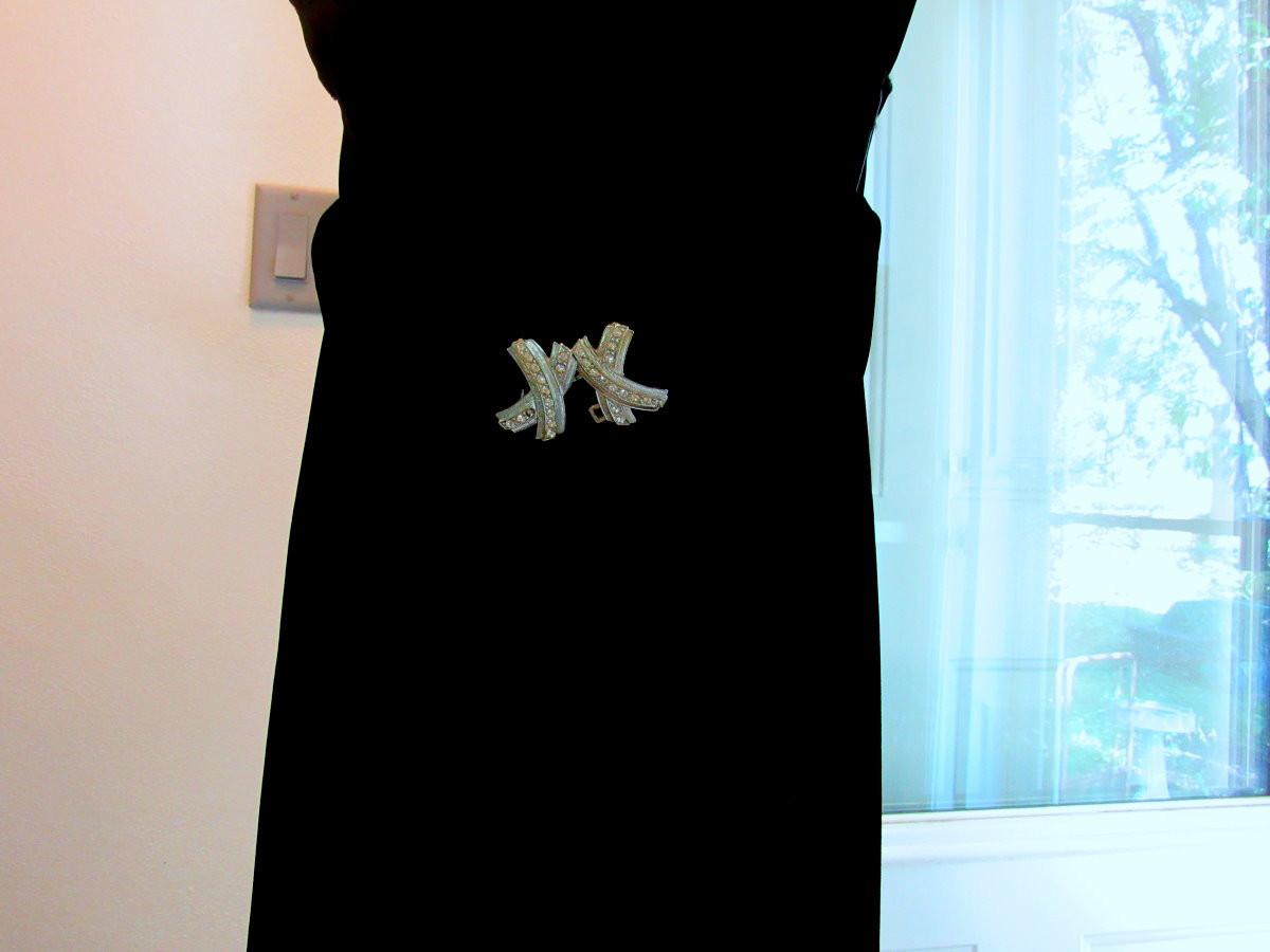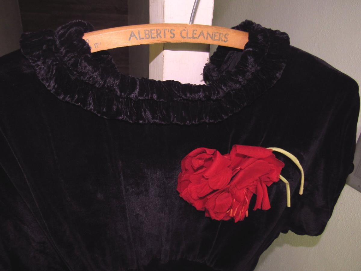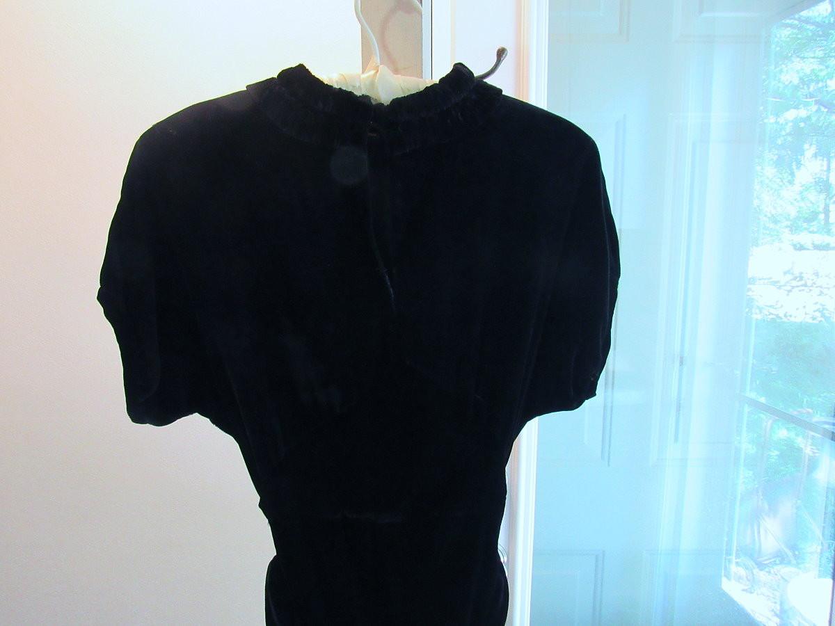 Lot 53: Vintage Black Velvet Dress With Fabric Flower And Rhinestone Buckle on Belt