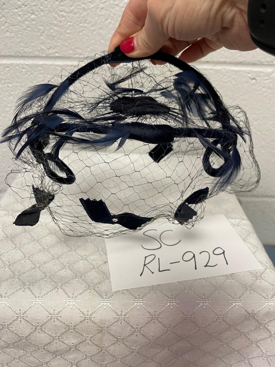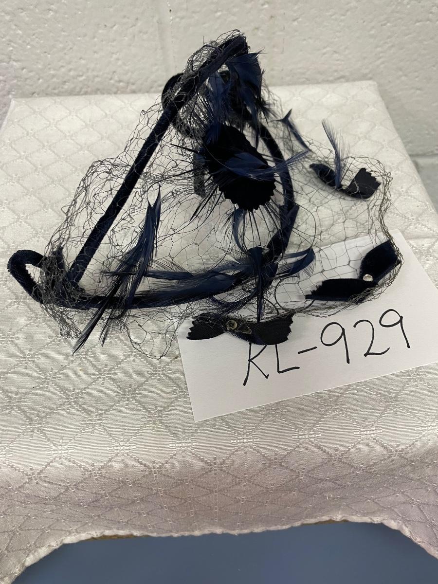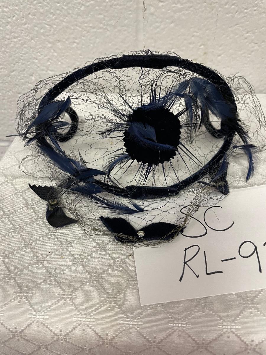 Vintage black with navy flowers, veil