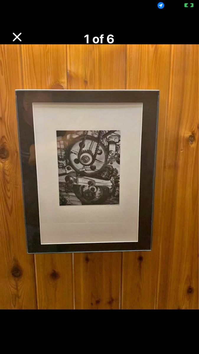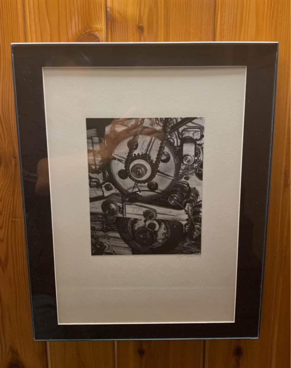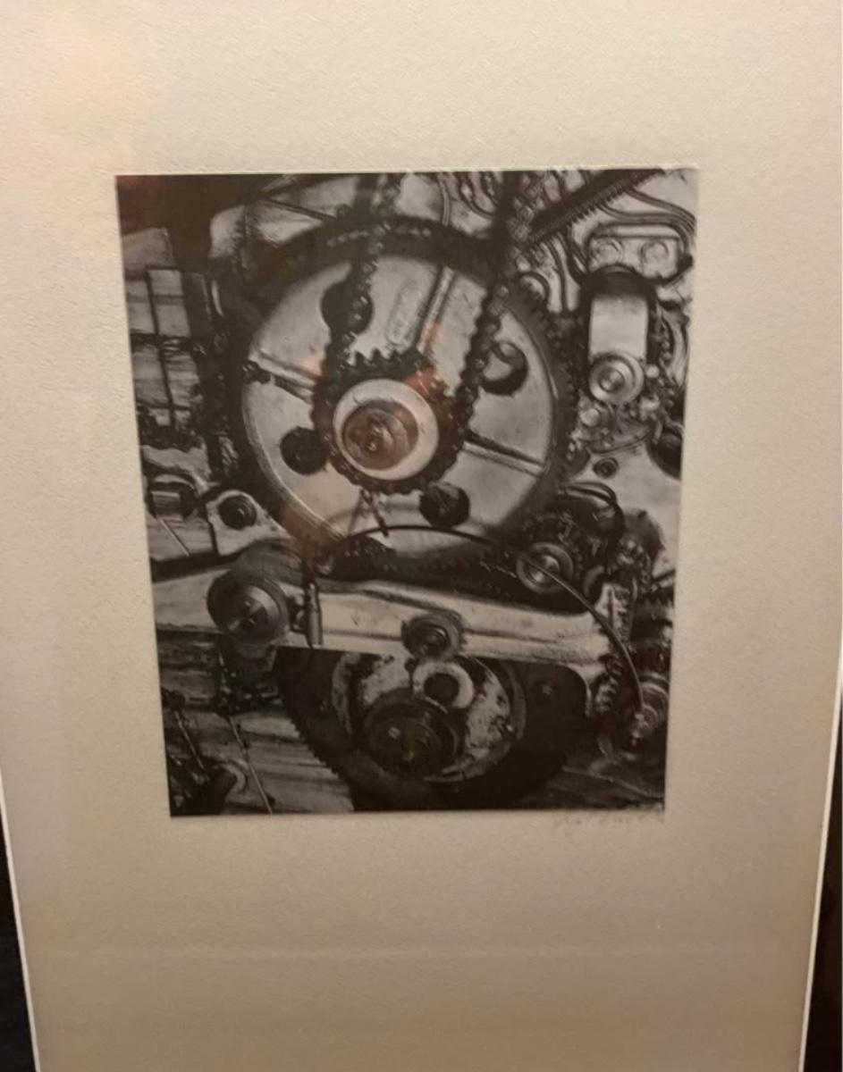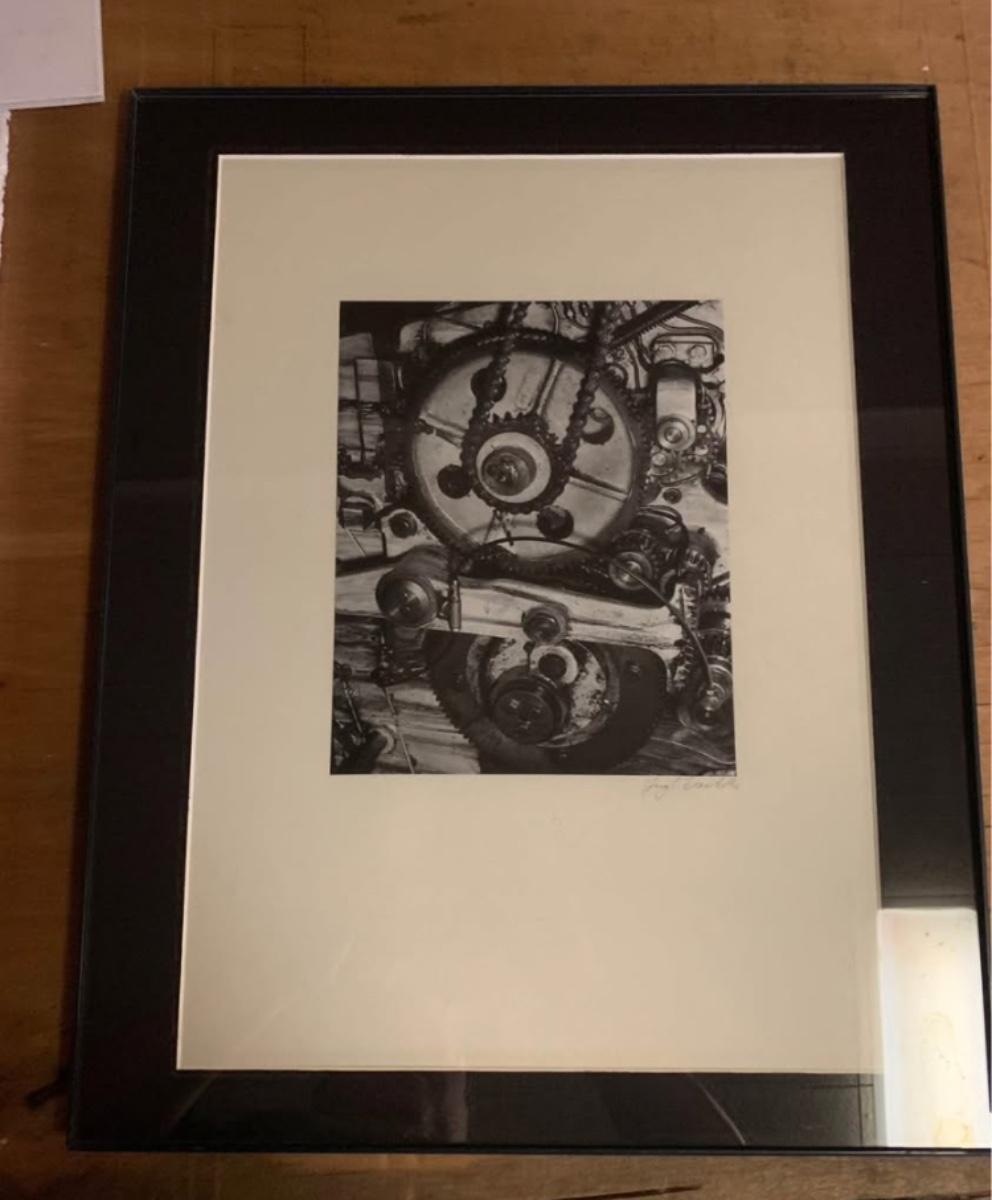 The photograph is signed in pencil in the lower right corner. Fraccioli is known for detailed industrial and mechanical photography, and this is one of his strongest compositions. The framing elevates the piece: clean black frame, crisp white mat, and a well-balanced presentation that looks gallery-ready.