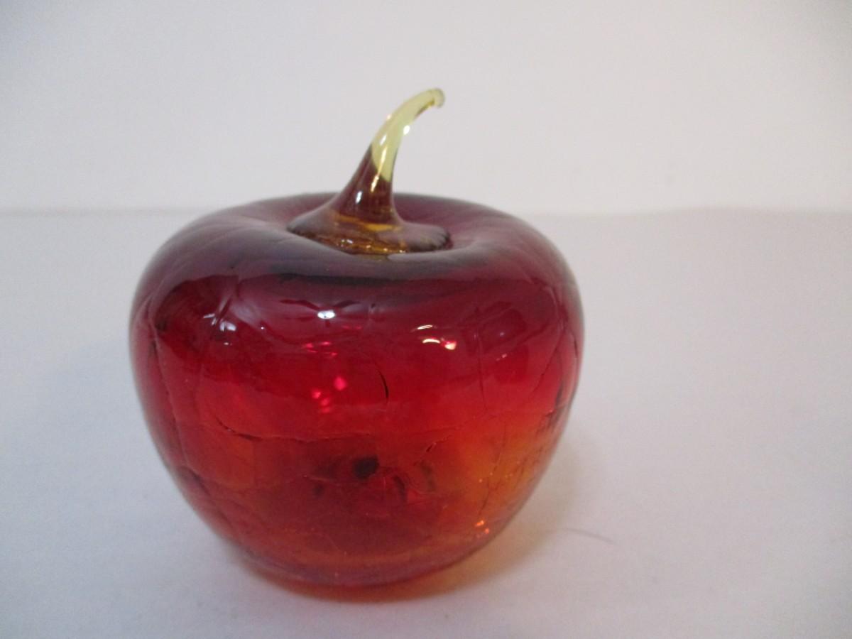Vintage Blenko Hand Blown Red Apple Paperweight Art Glass