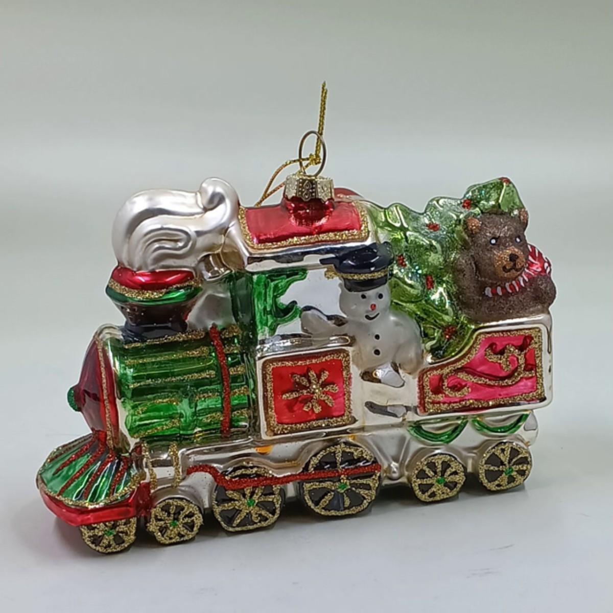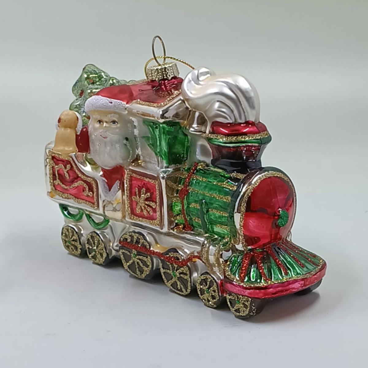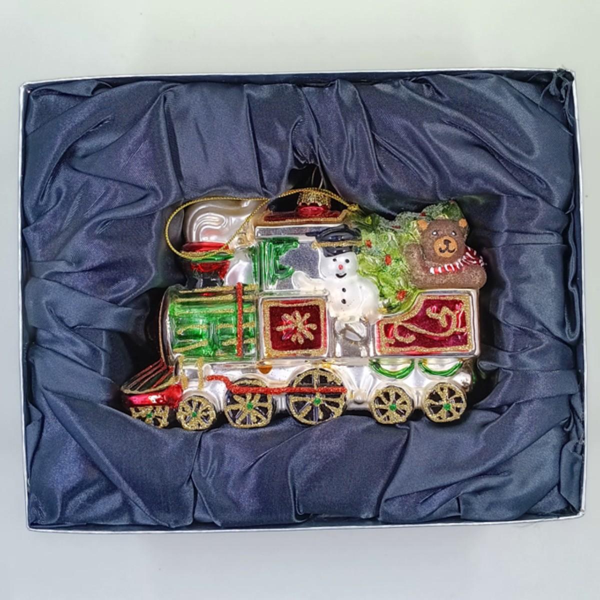 This large blown glass Christmas ornament is in very good, like new condition. The ornament comes in a satin lined silver foil giftbox.
