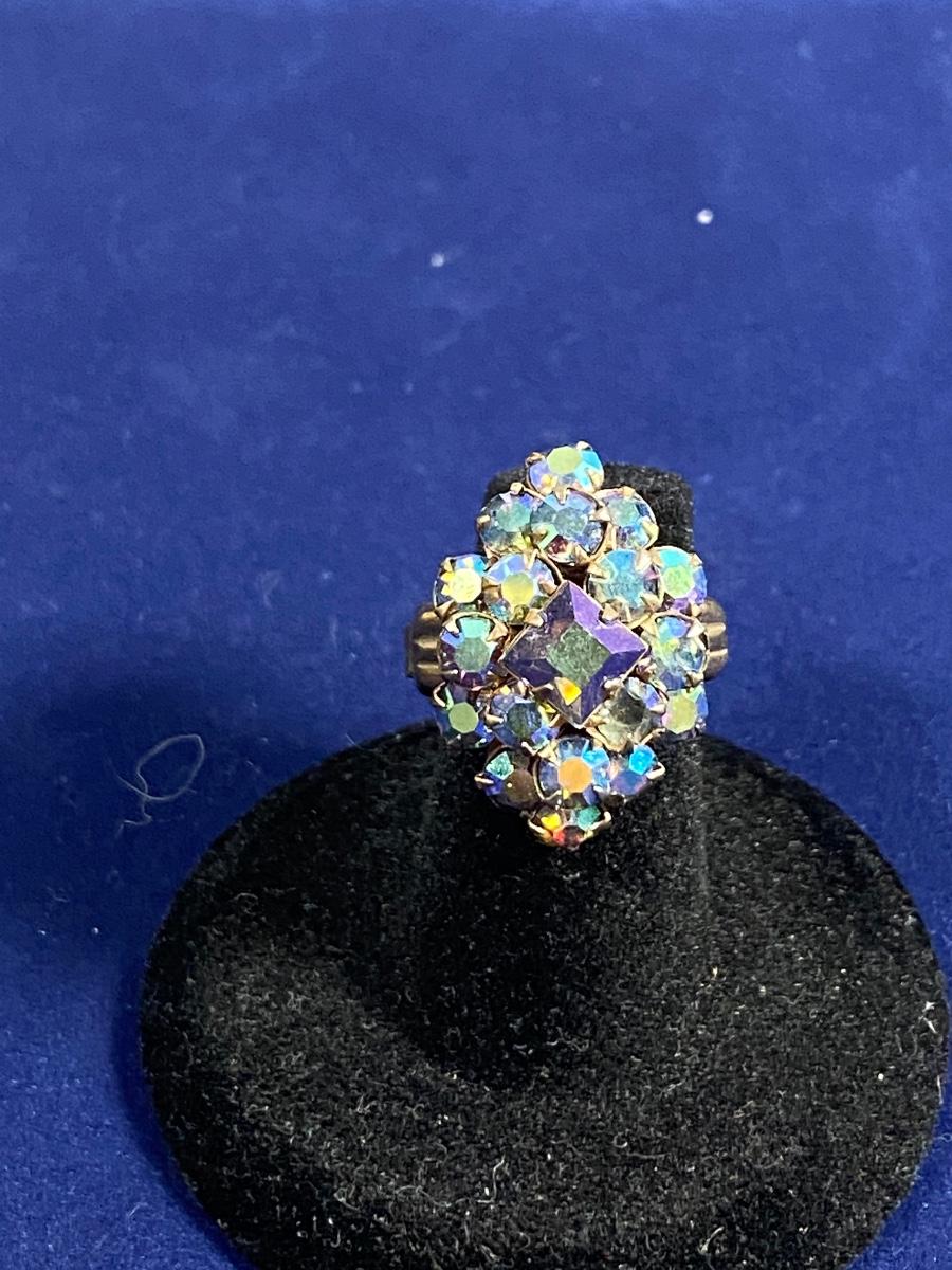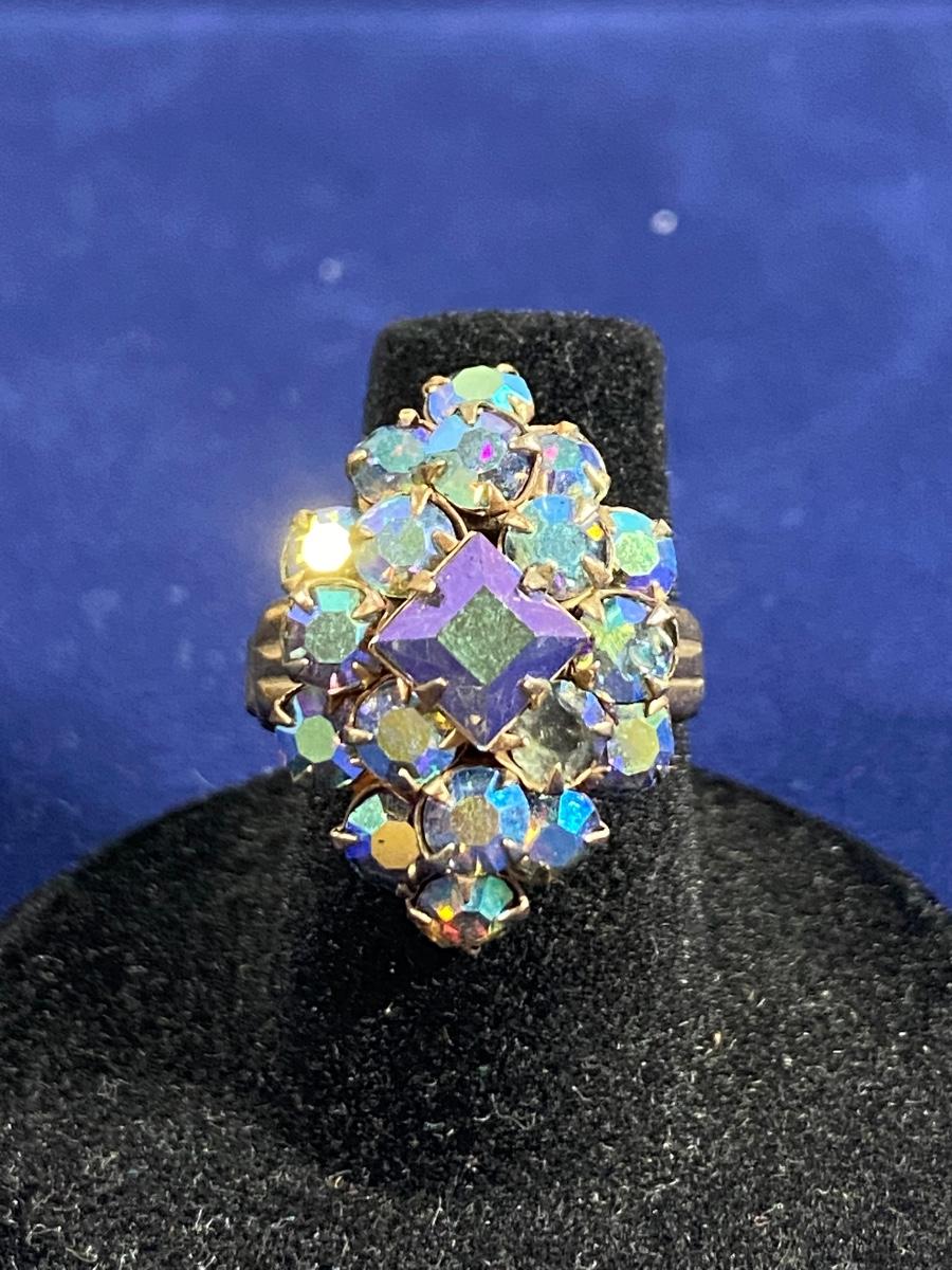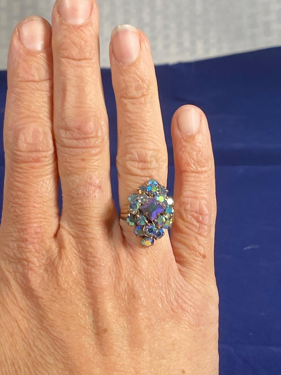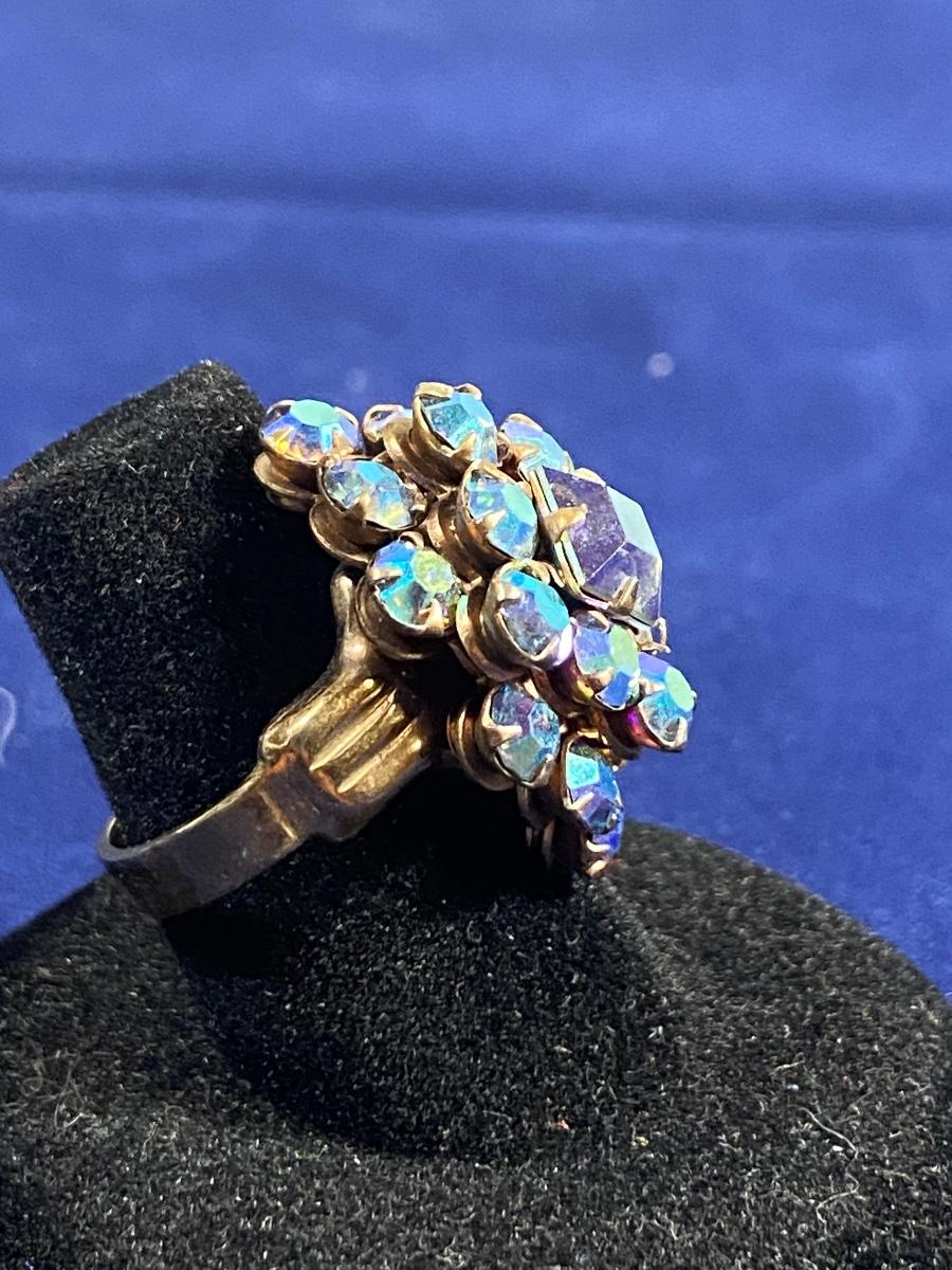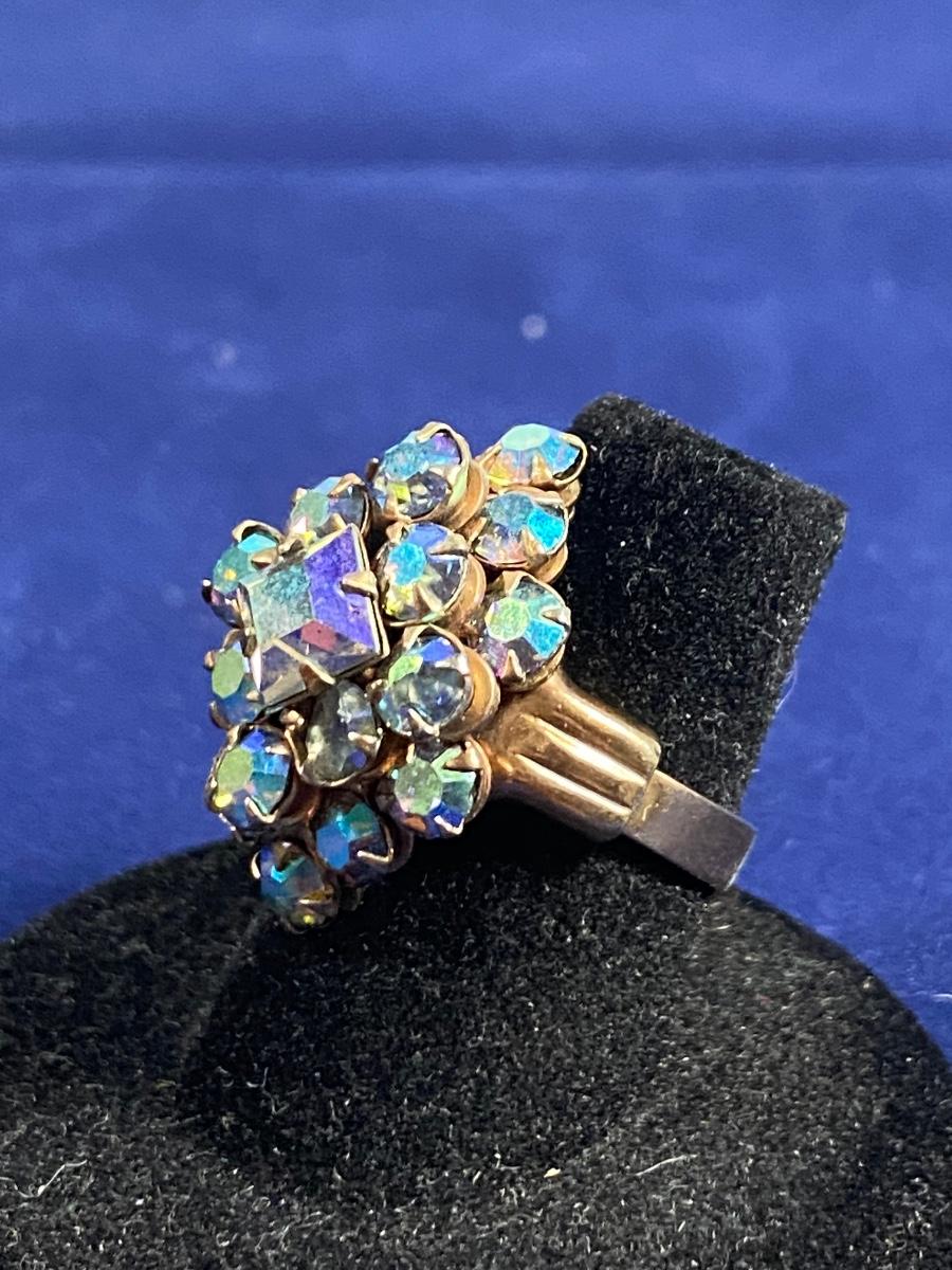 Vintage Blue AB Rhinestone Cluster Ring Adjustable. In good condition, lots of sparkle.