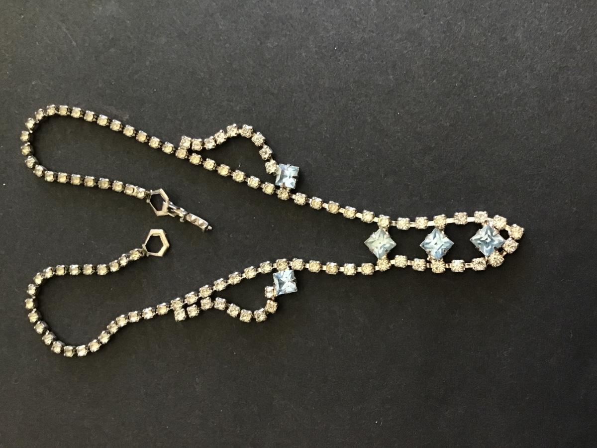 Vintage Blue And Clear Rhinestone Necklace
