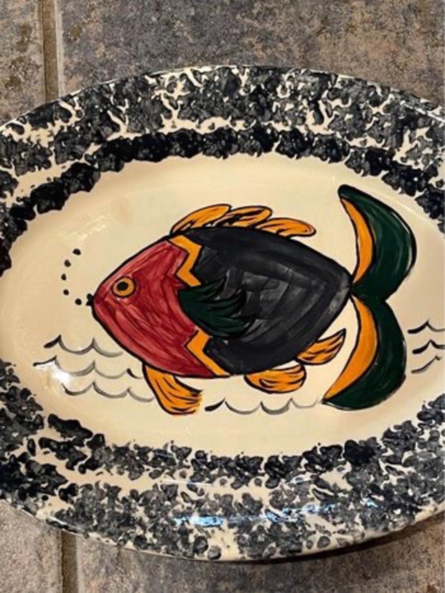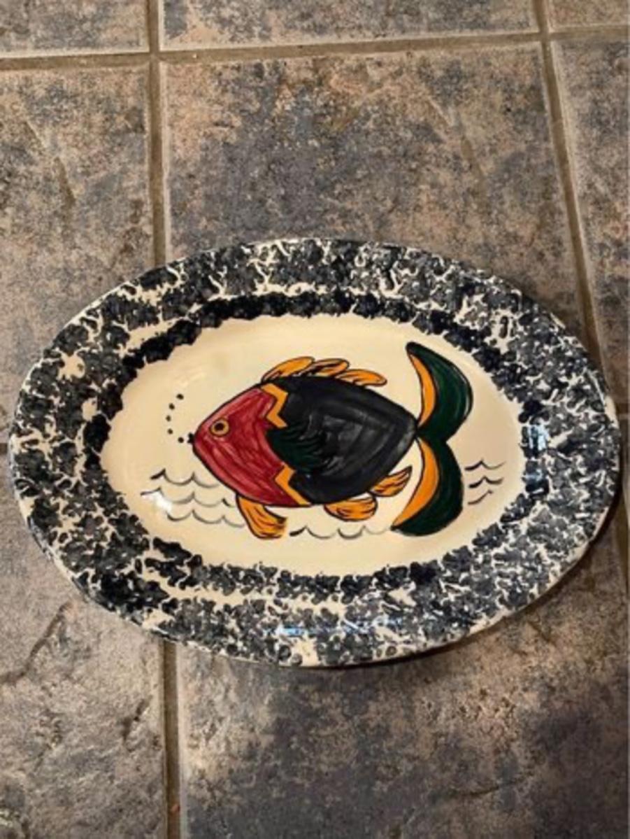 Vintage Blue and White Ceramic Fish Serving Platter