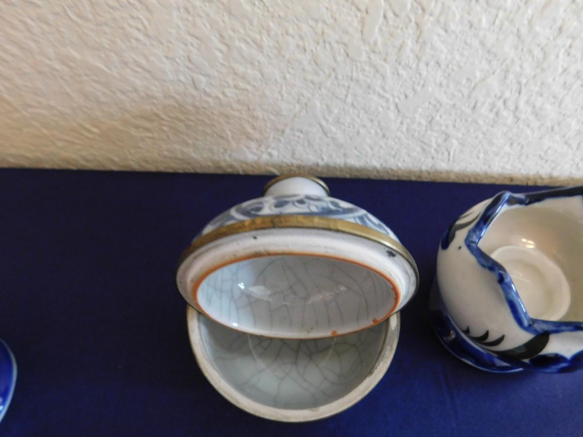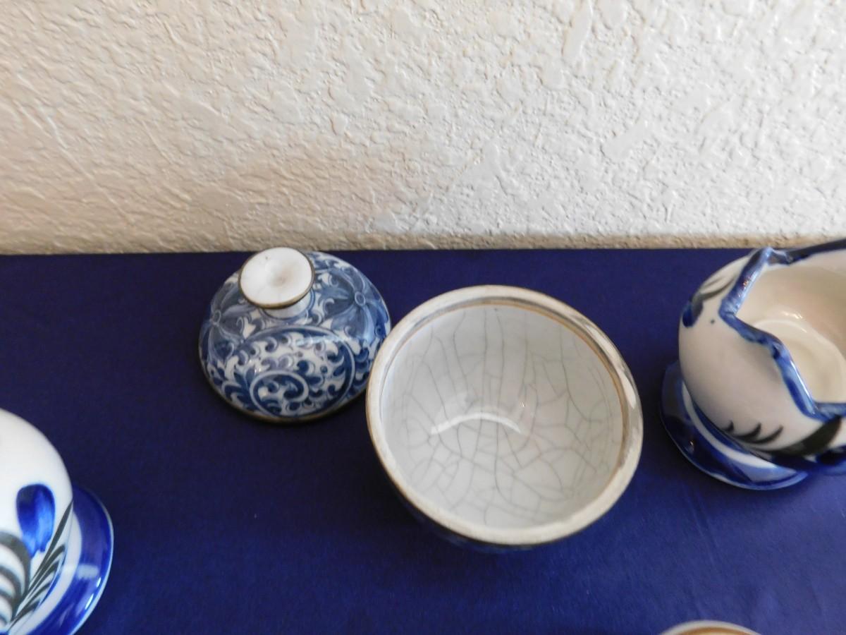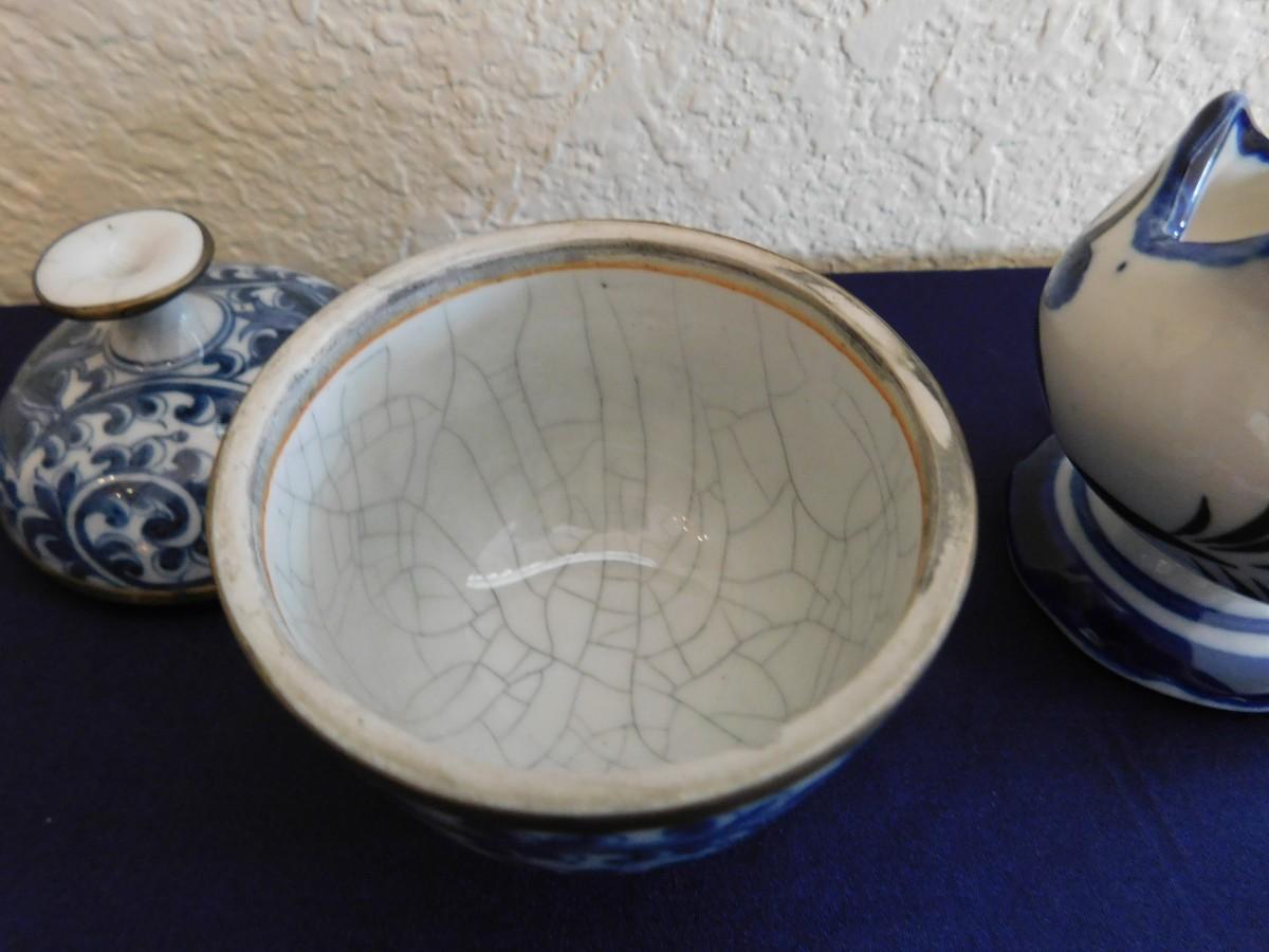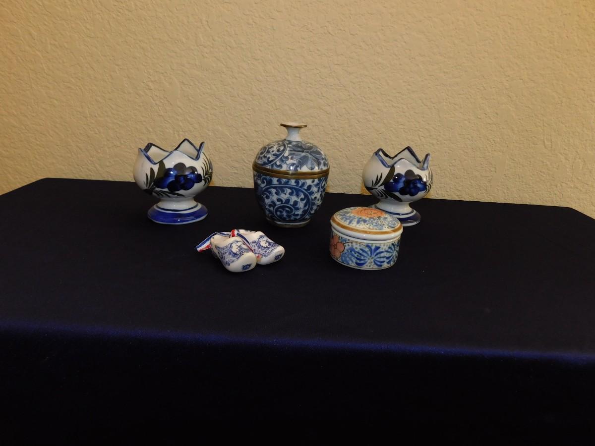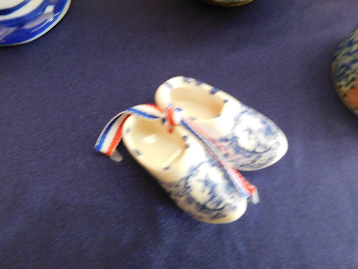 VINTAGE BLUE AND WHITE TRINKET BOXES, CANDLE HOLDERS AND LITTLE SHOES