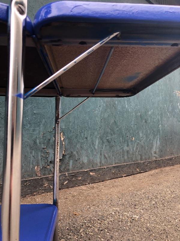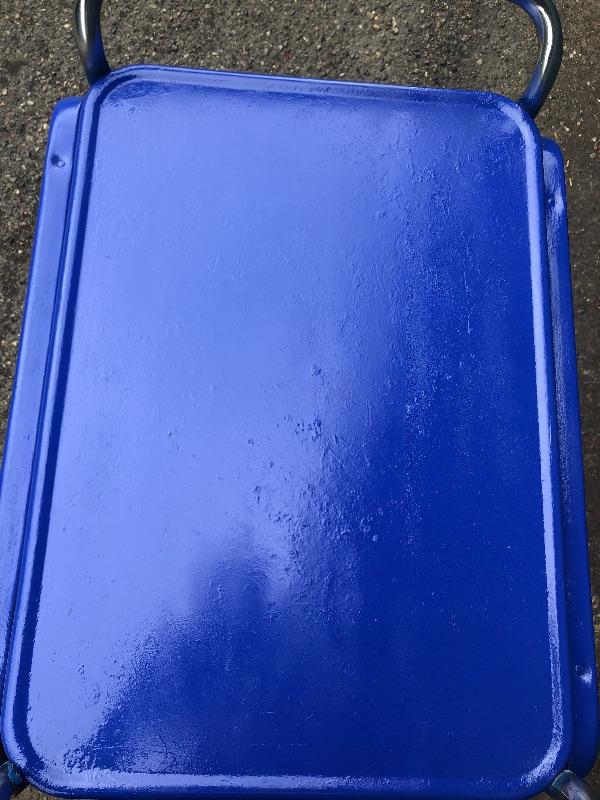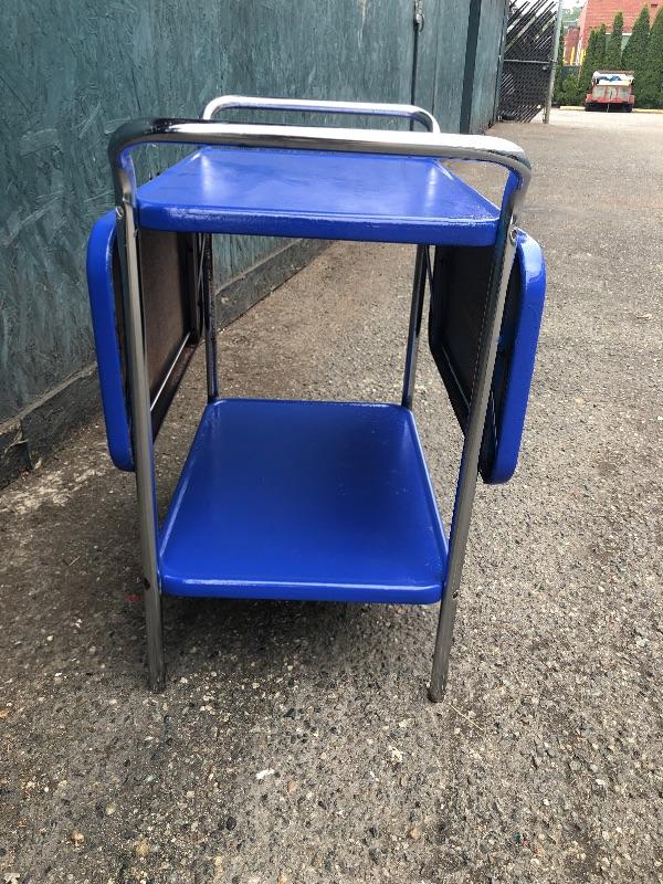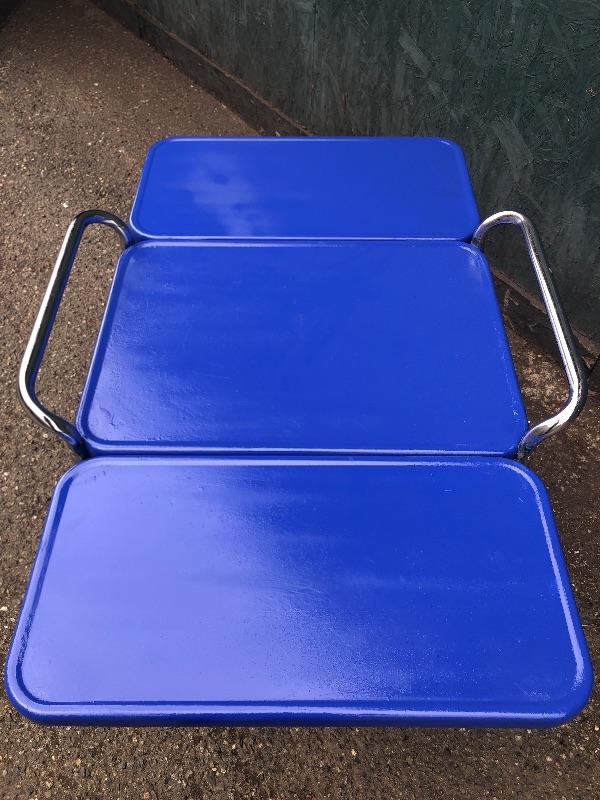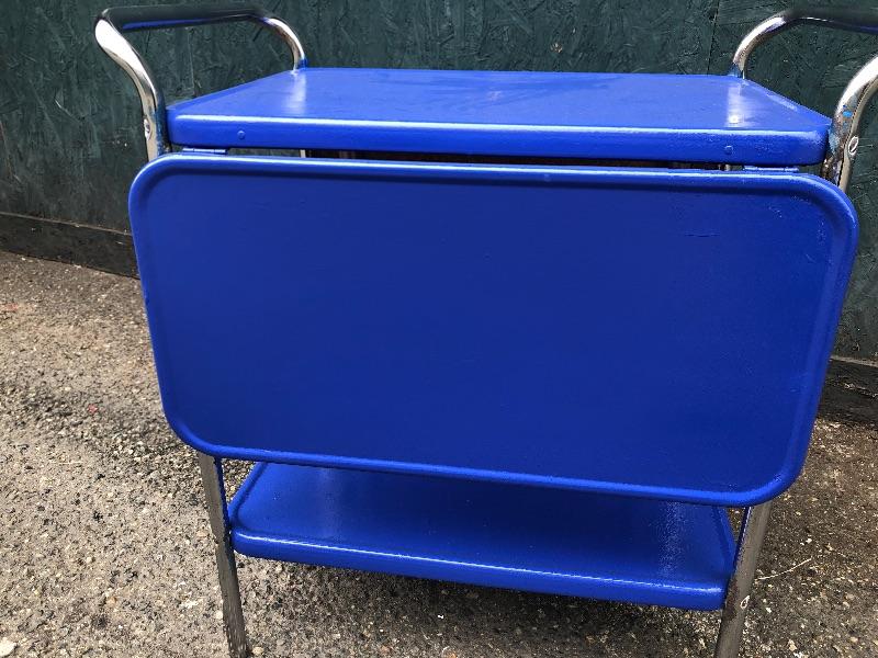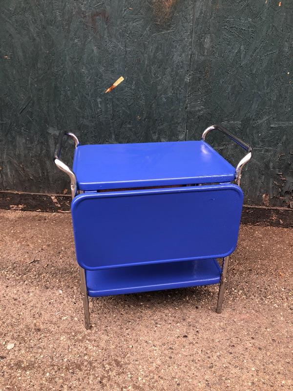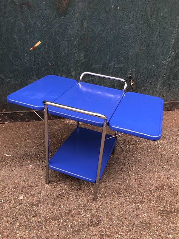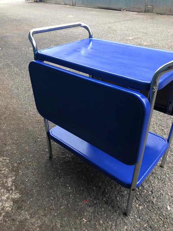 Charming multipurpose piece of furniture! The trays can be up or down. When up, they are nice and strong. Dimensions are 27”W x 19”L(when trays are down), 40”L (when trays are up) x 29”H