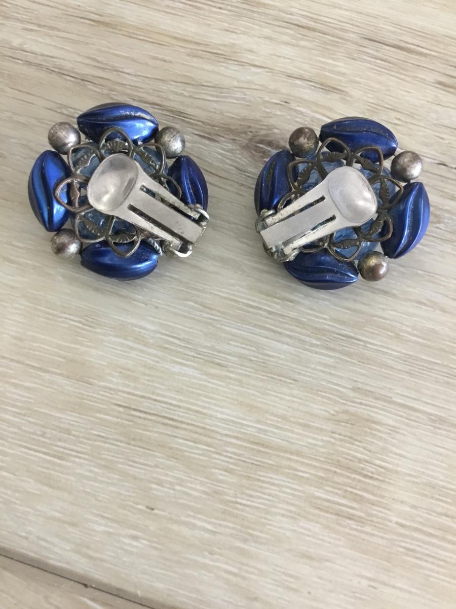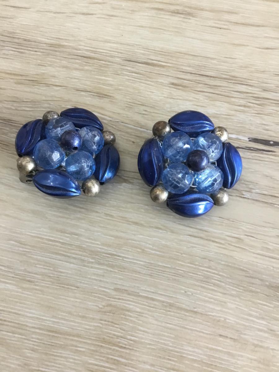 Vintage blue bead clip on earrings