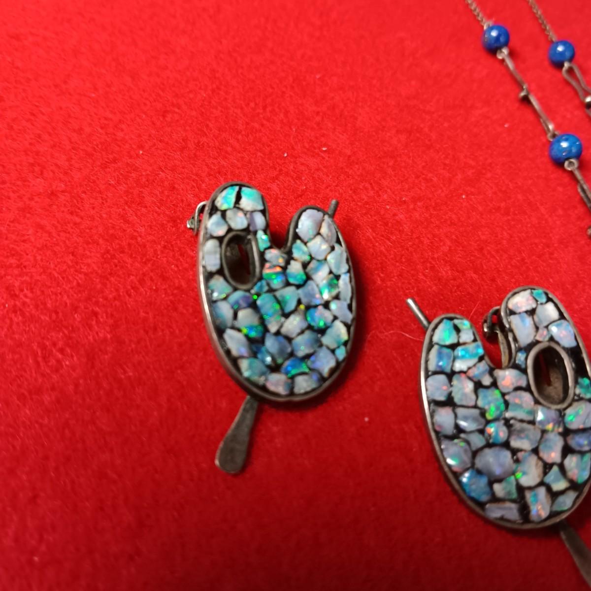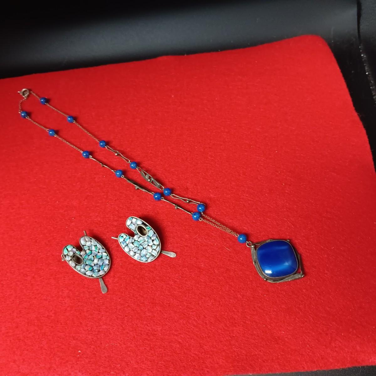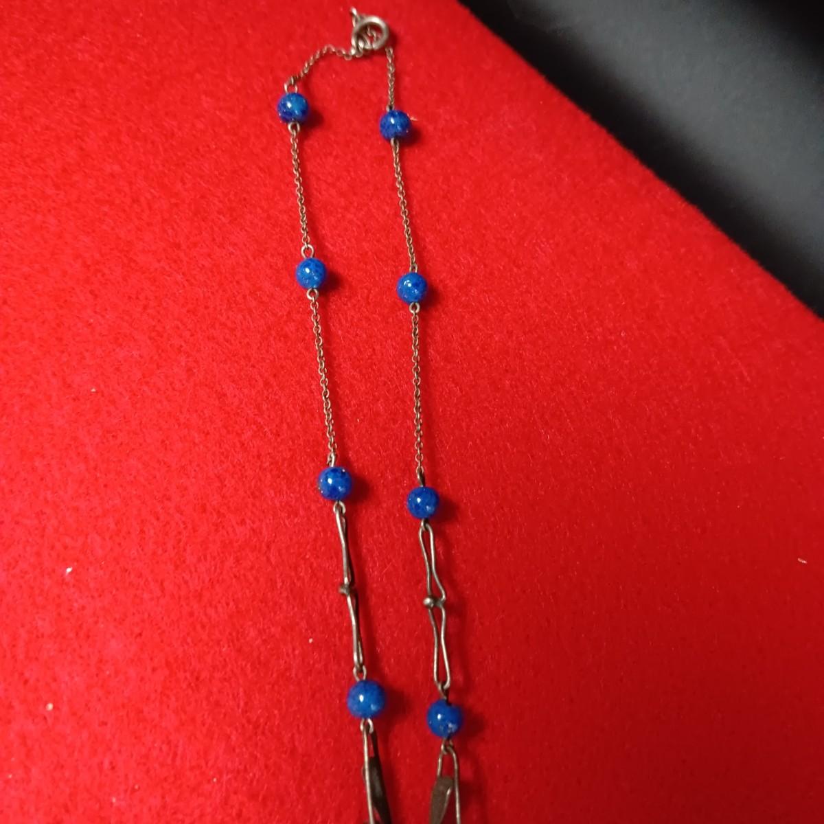 VINTAGE BLUE BEADED NECKLACE AND STERLING CLIP ON EARRINGS