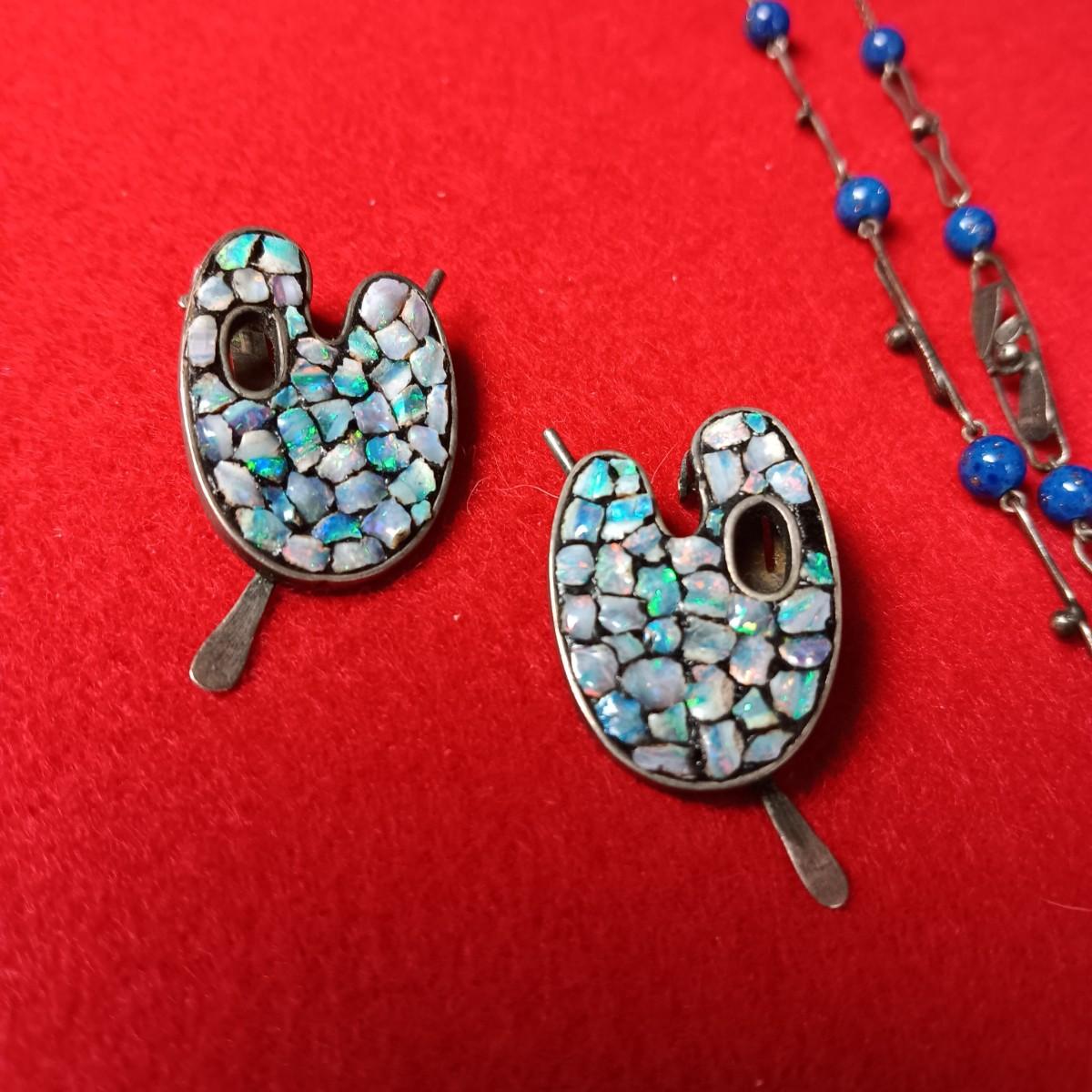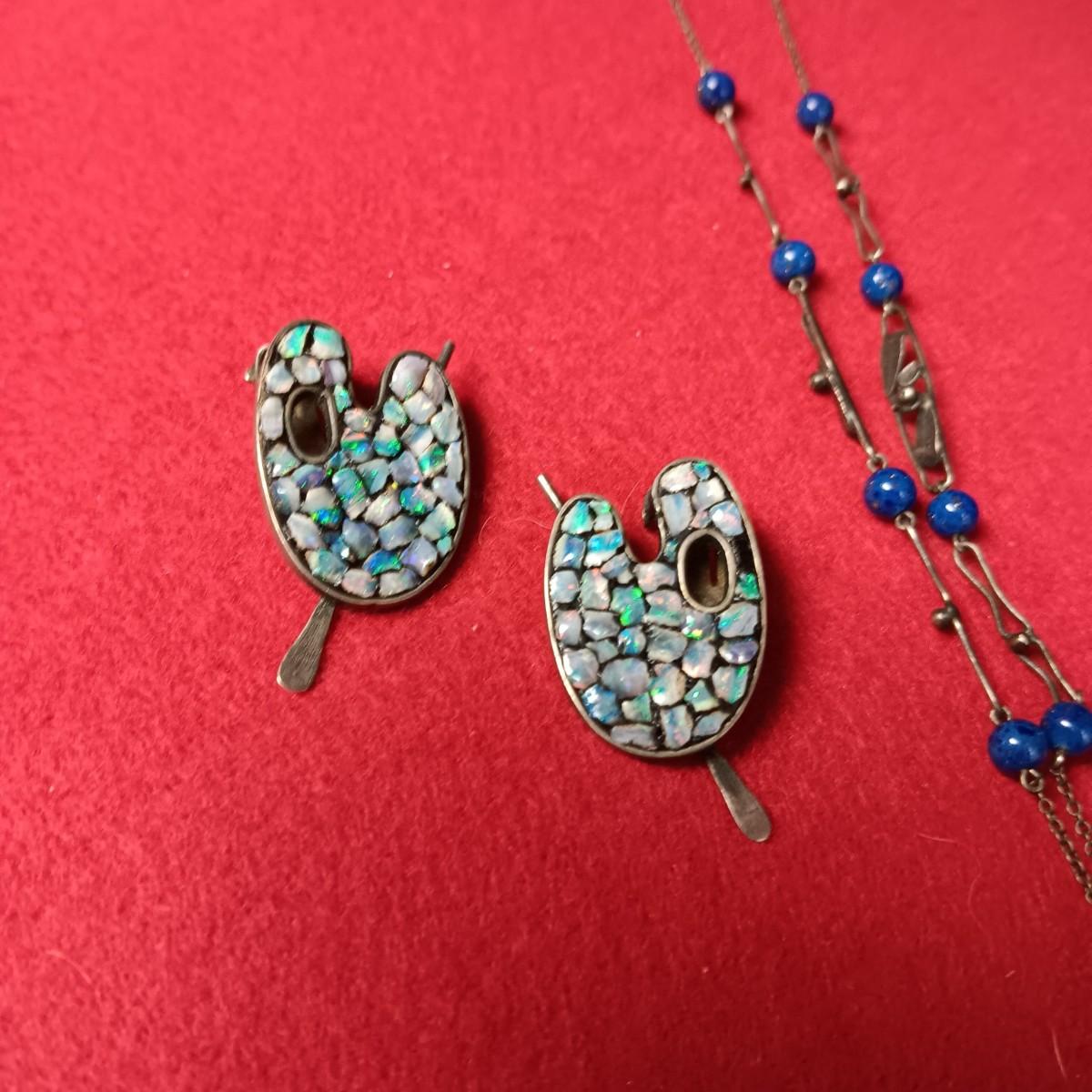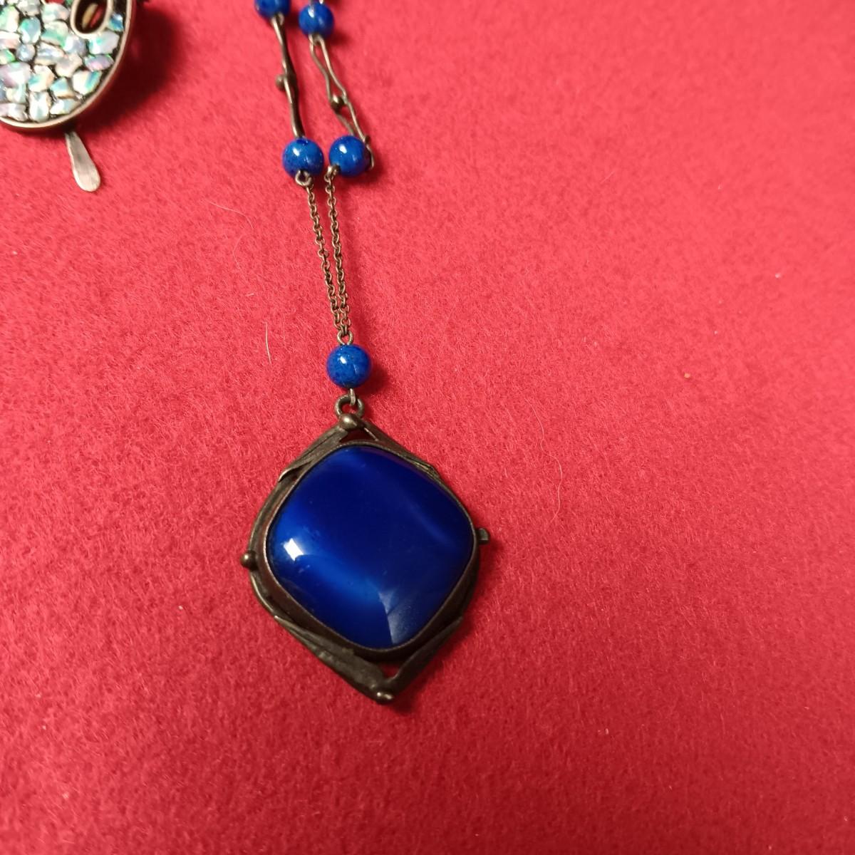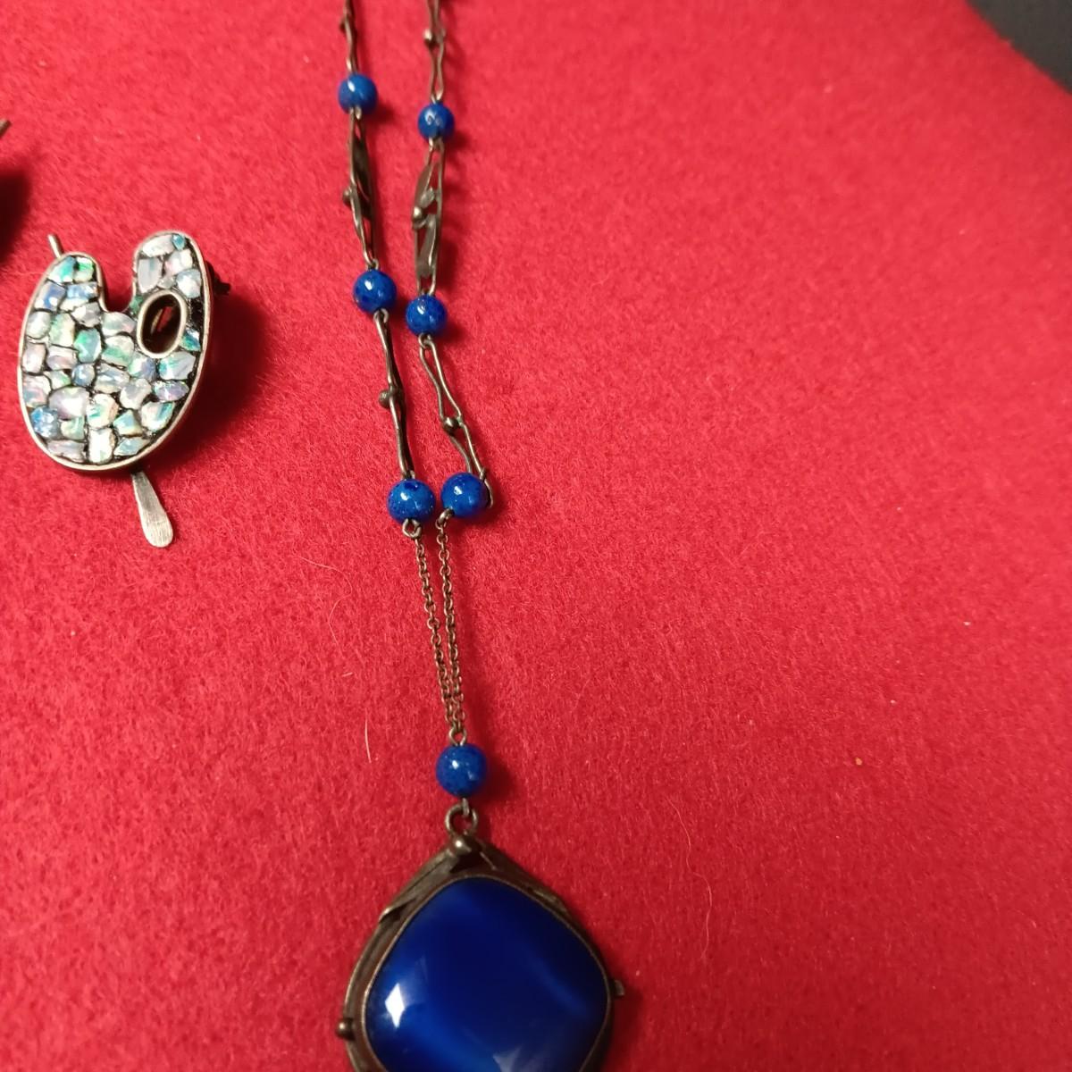 VINTAGE BLUE BEADED NECKLACE AND STERLING CLIP ON EARRINGS