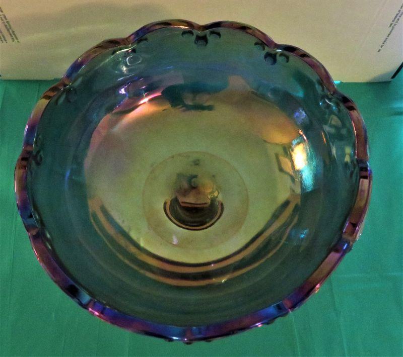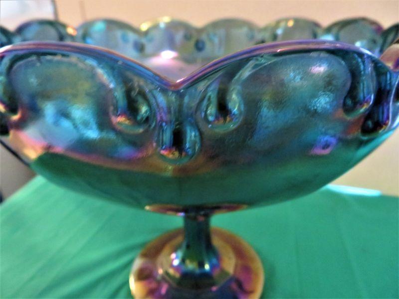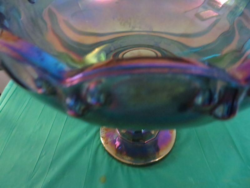 nice Vintage Indiana Blue Carnival Glass Fruit Bowl, Pedestal, Garland teardrop design