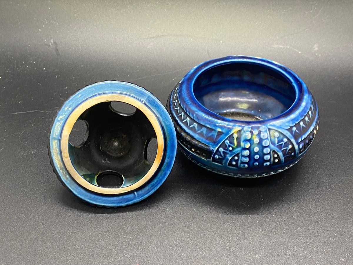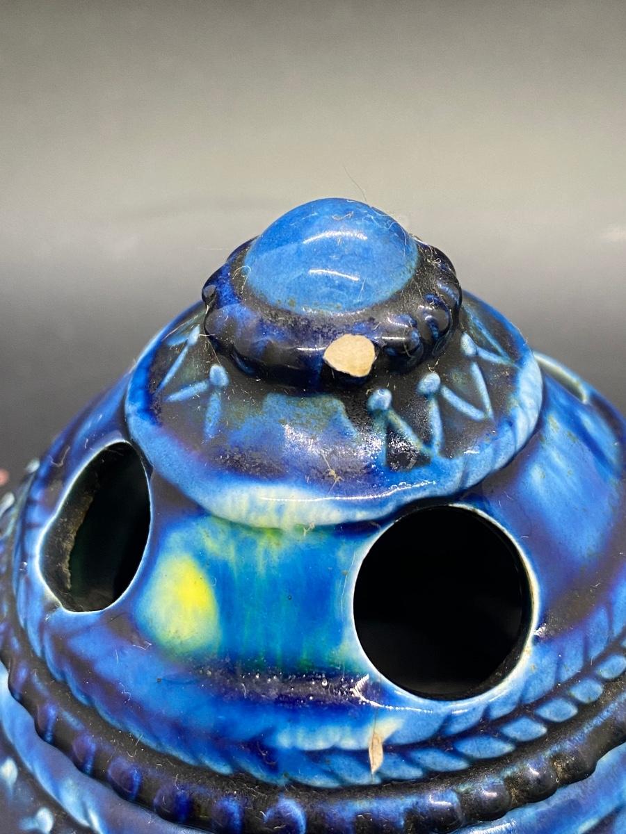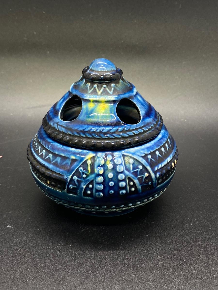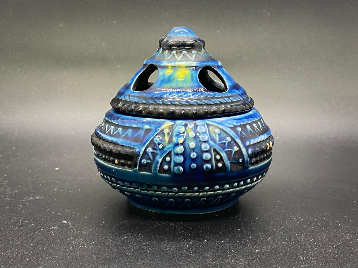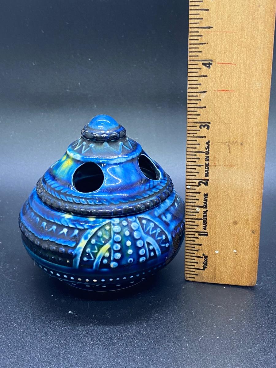 Vintage Napcoware blue ceramic incense burner. For use with cone style incense. Great tribal like pattern. Good condition.