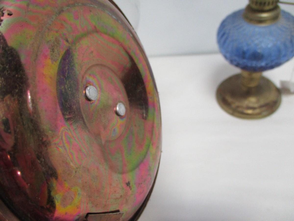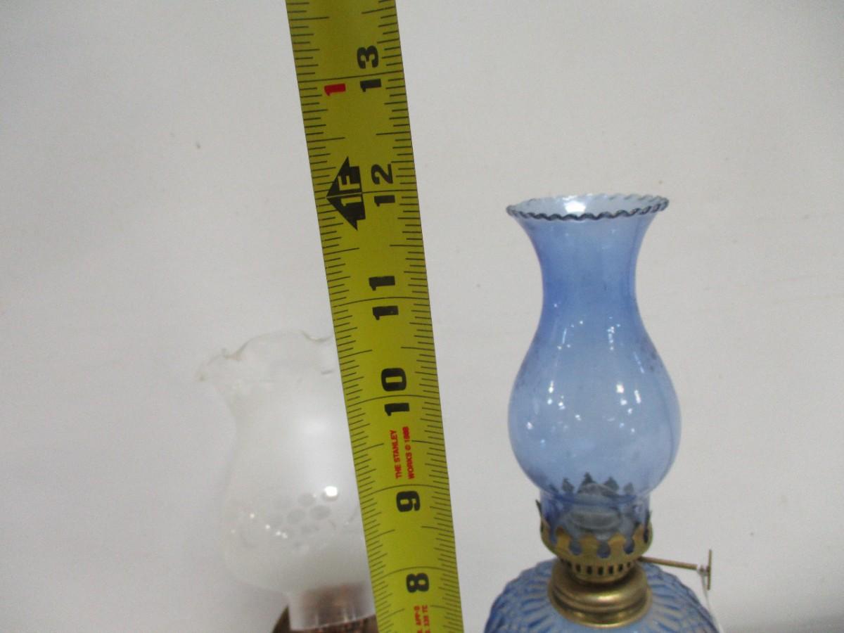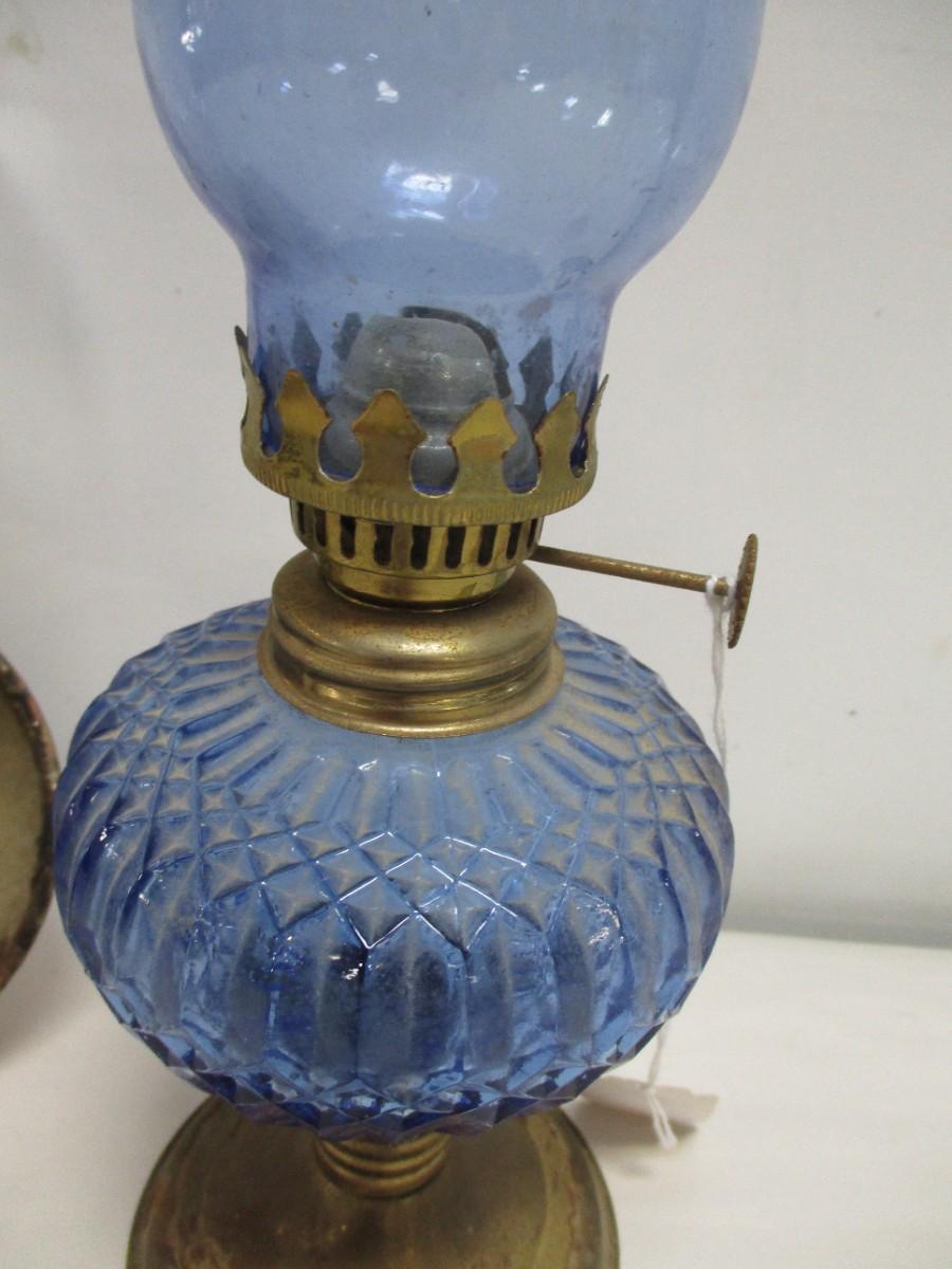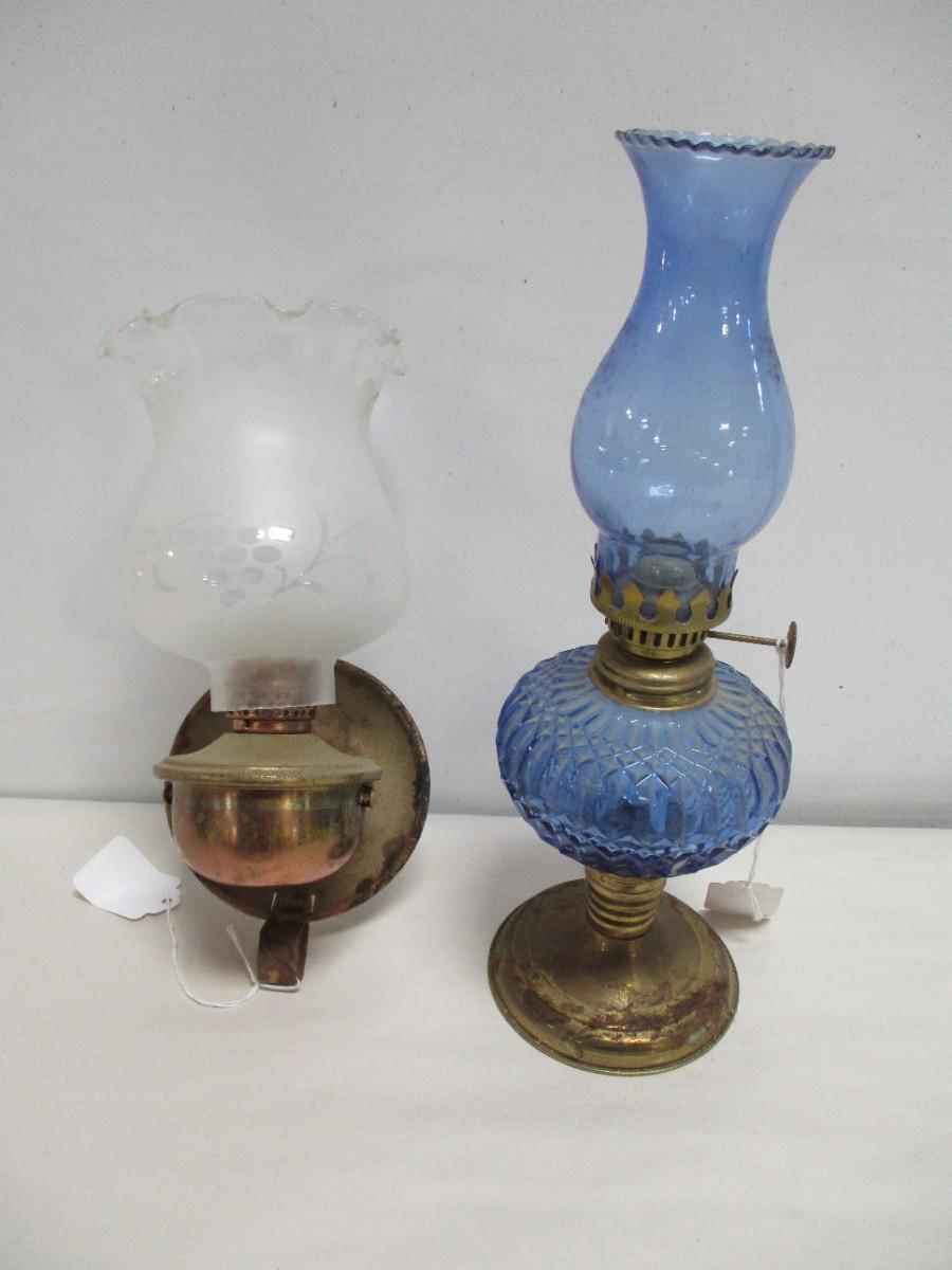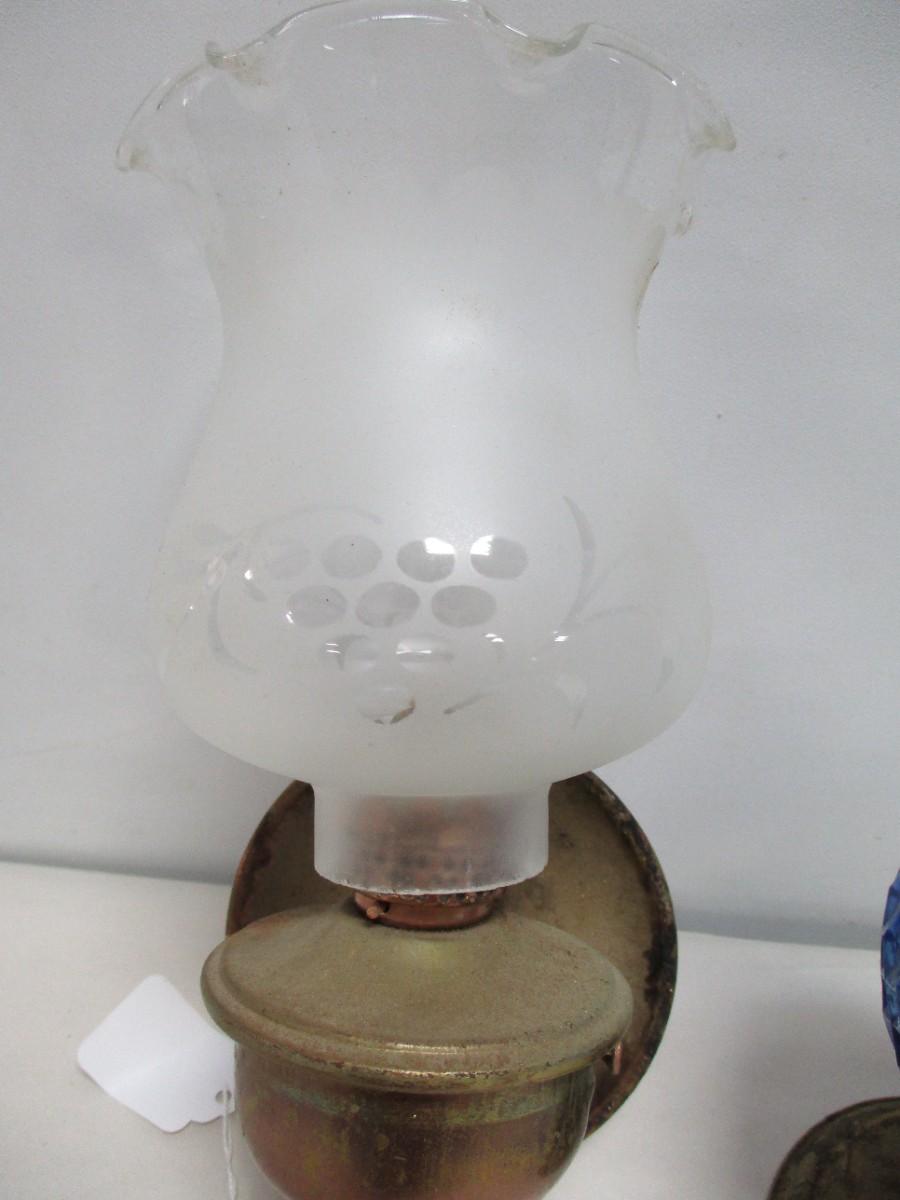 Vintage Blue Cobalt Oil Lamp Glass + Brass Base & Oil Wall Hanging Lamp
