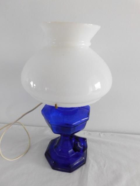 Vintage Blue Cobalt Post Electric Table Lamp