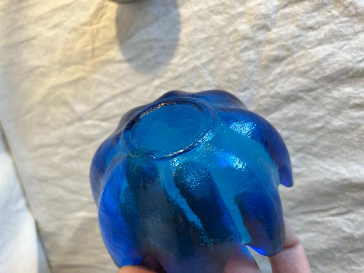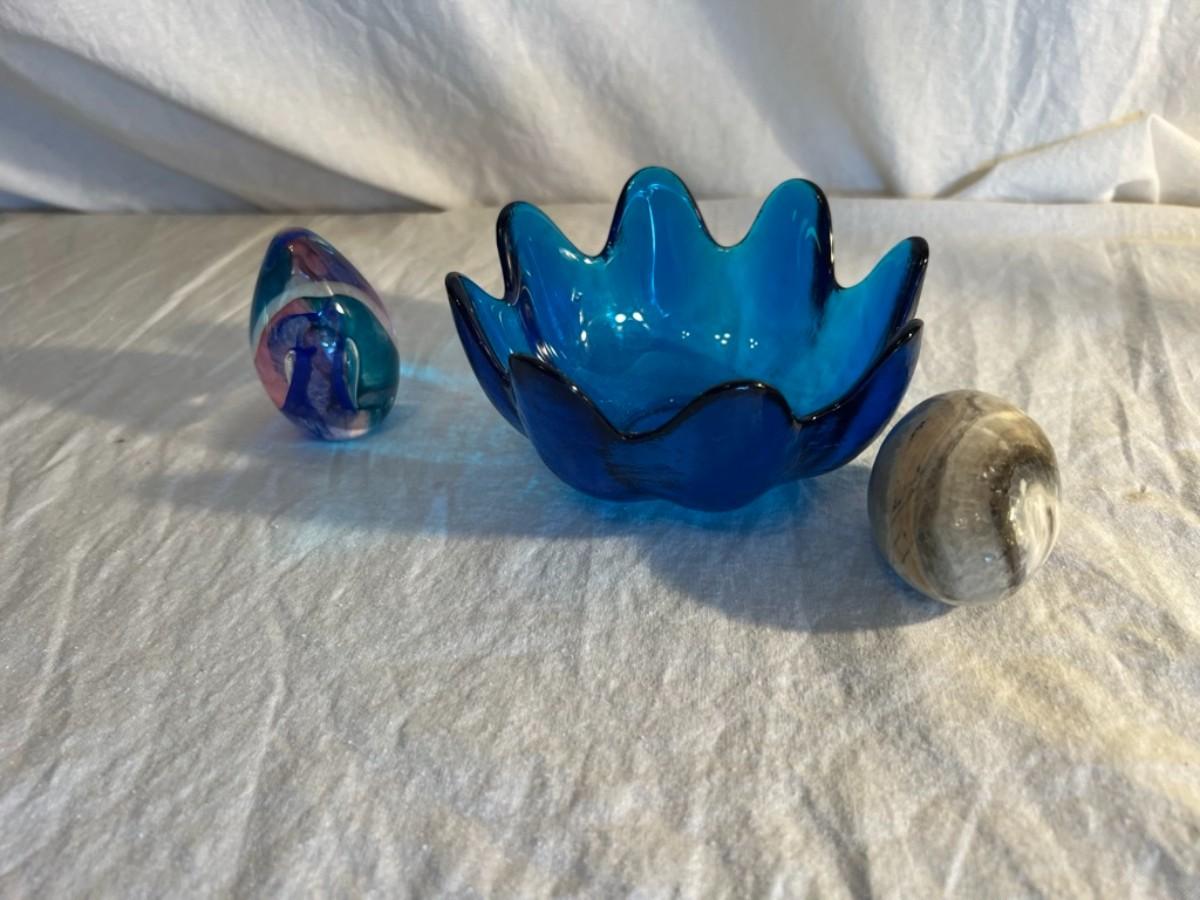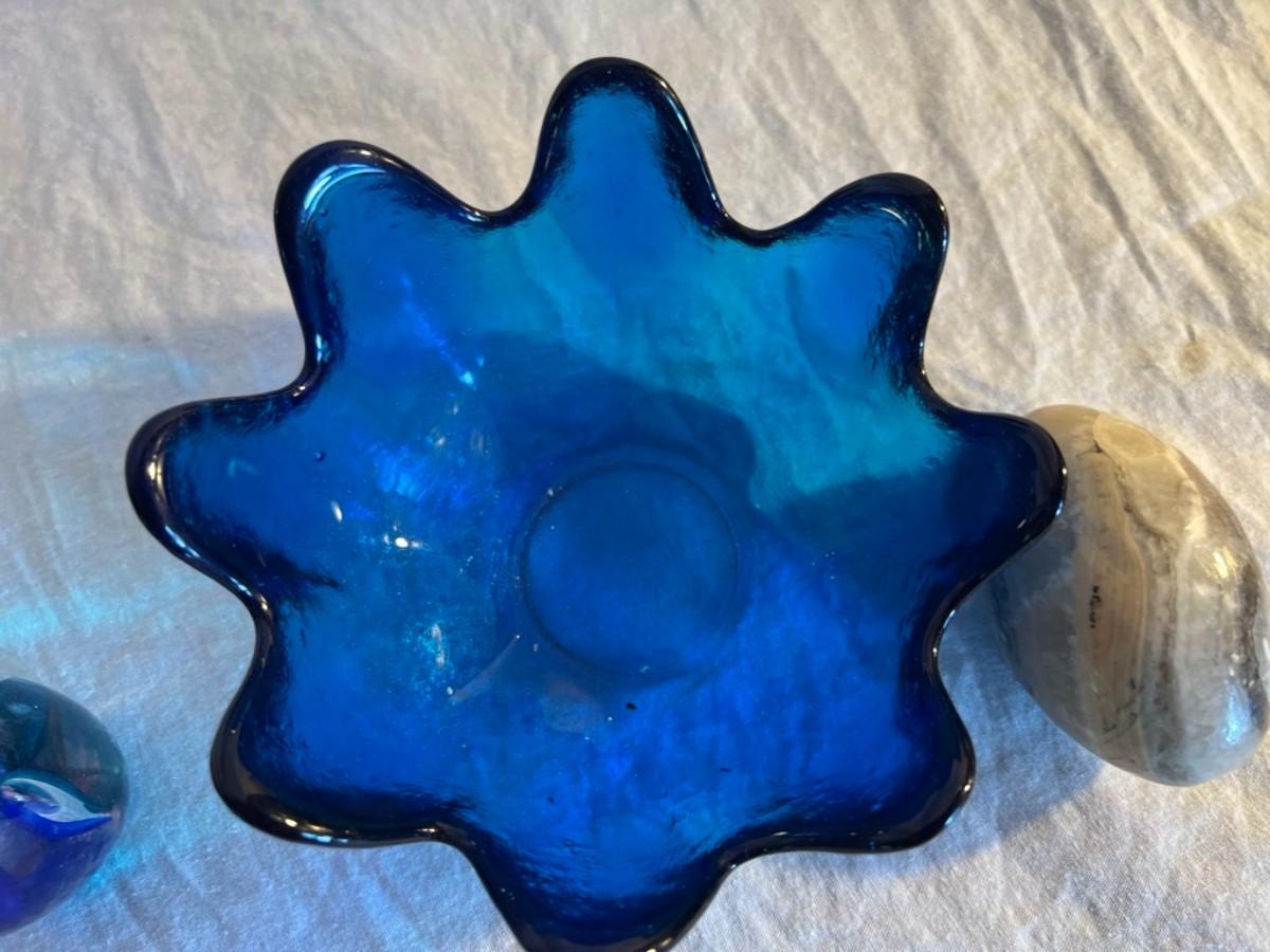 Vintage Blue Colored Glass Bowl and Glass Egg343