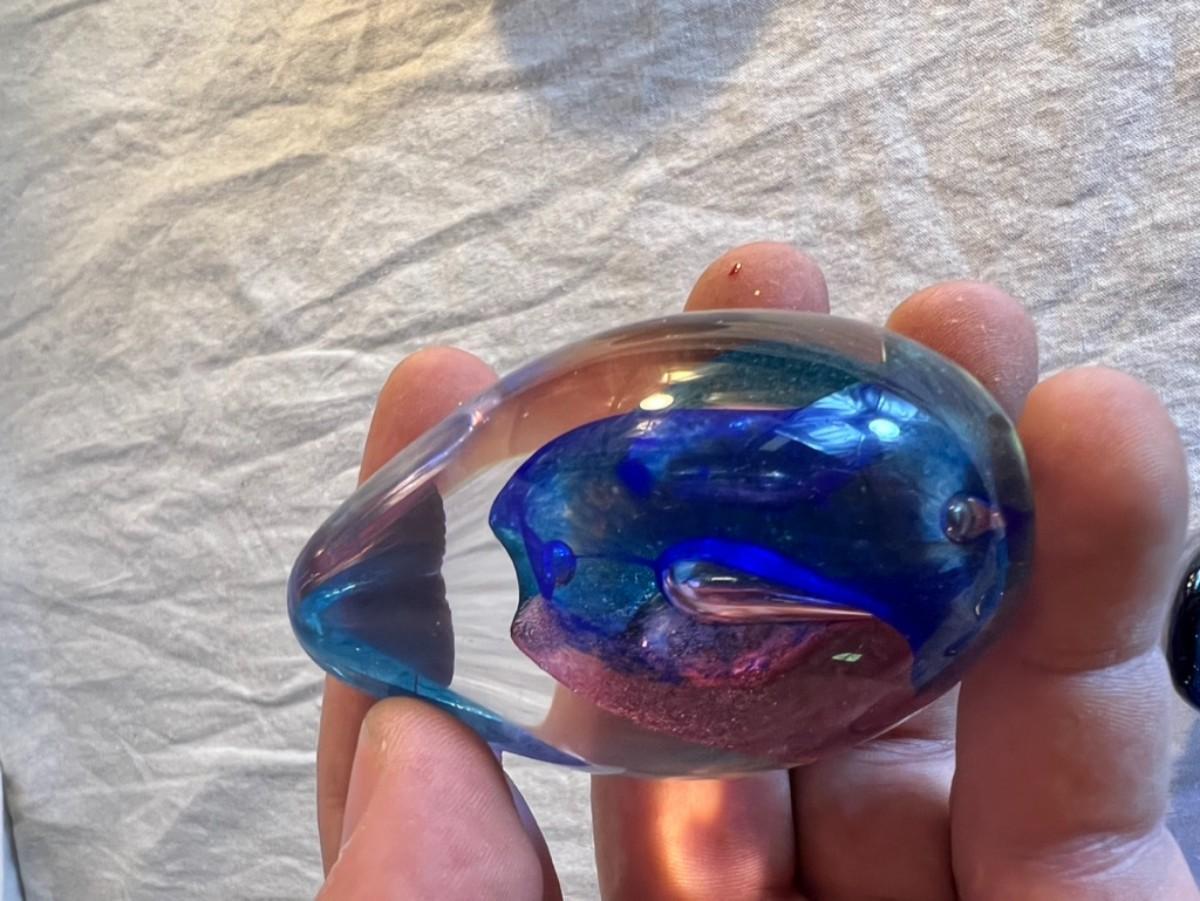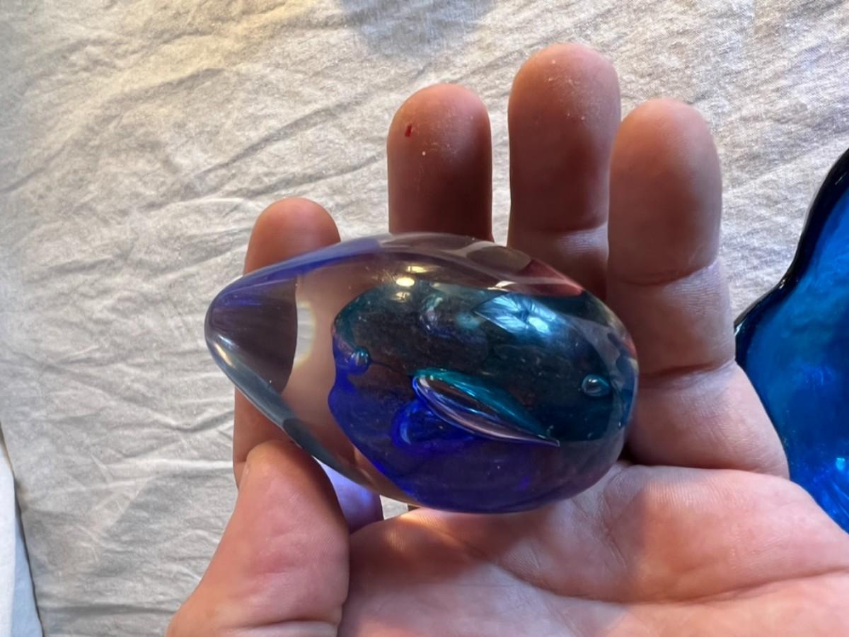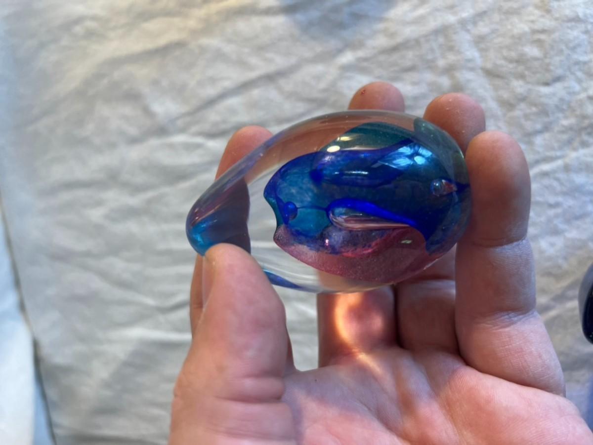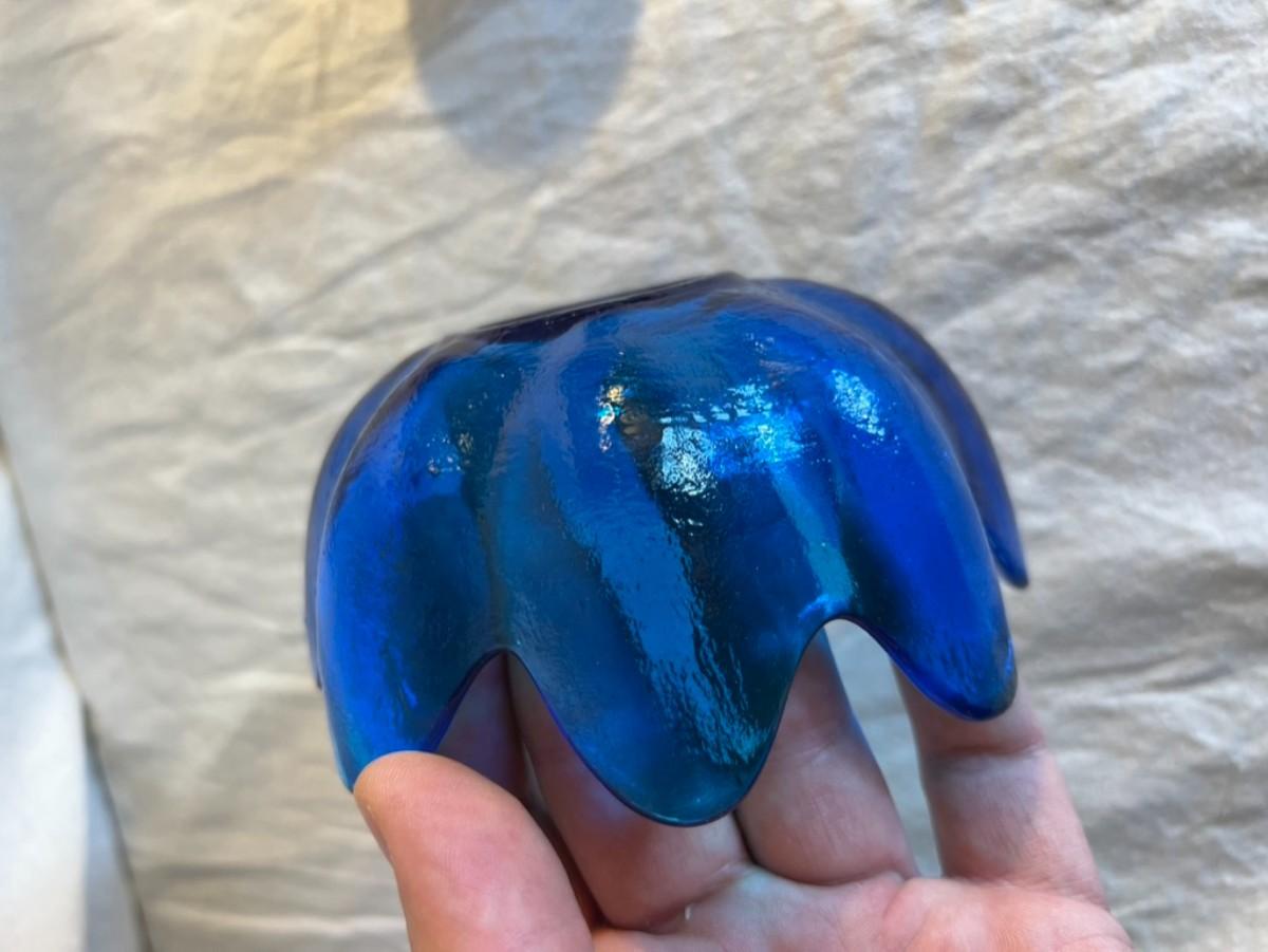 Vintage Blue Colored Glass Bowl and Glass Egg343