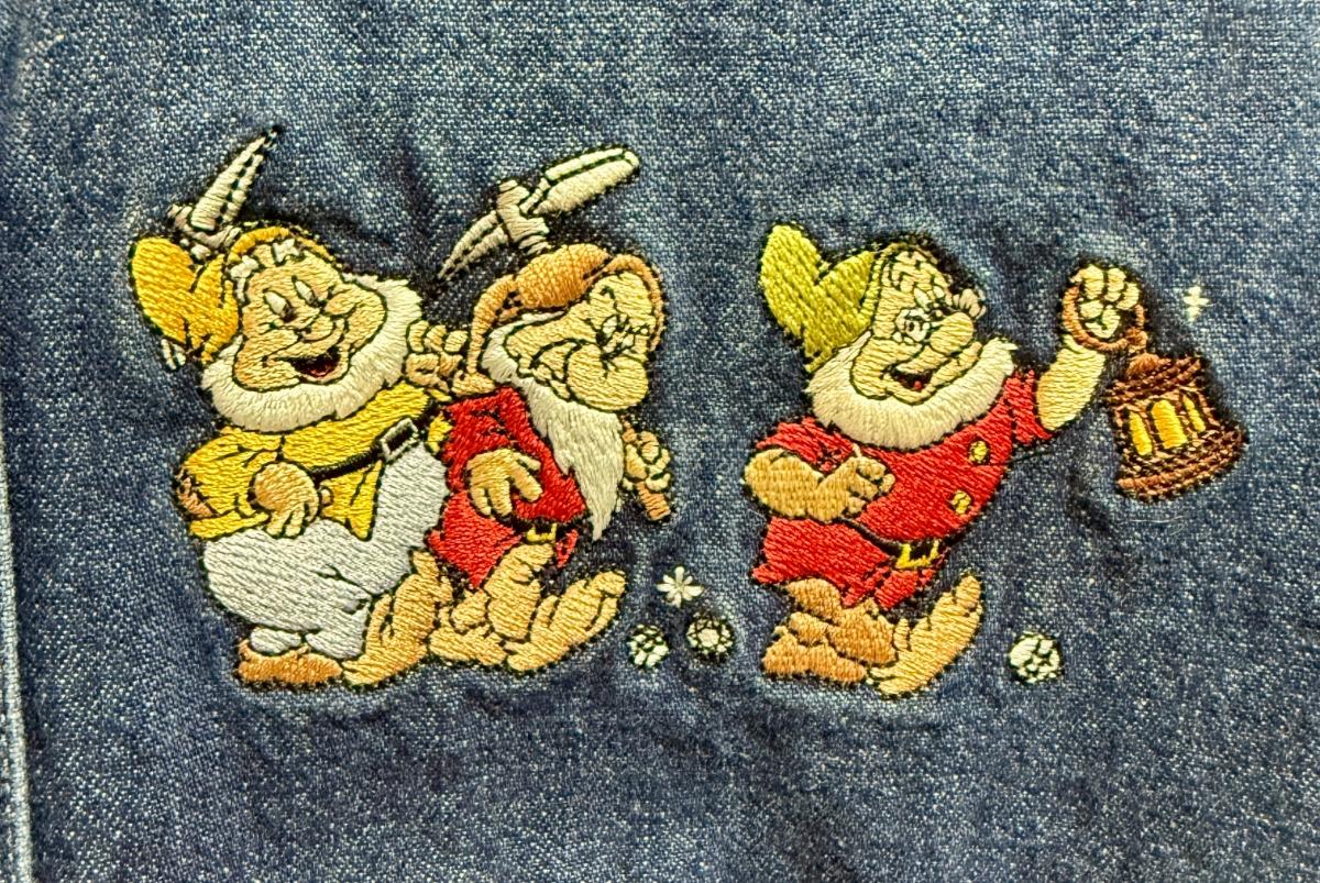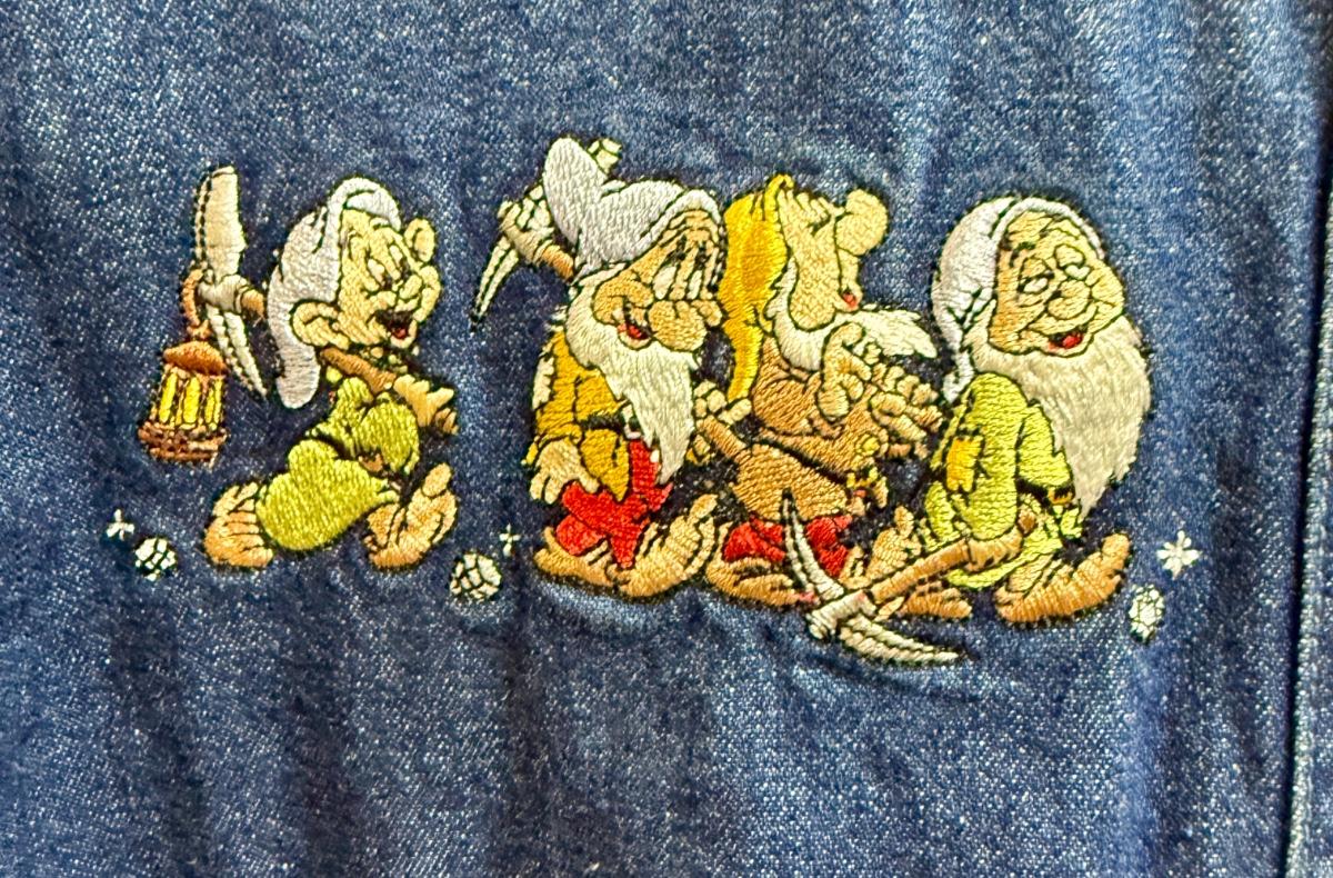 Vintage Blue Denim Button-up Top with Embroidered 7 Dwarves Disney Store tag size S small