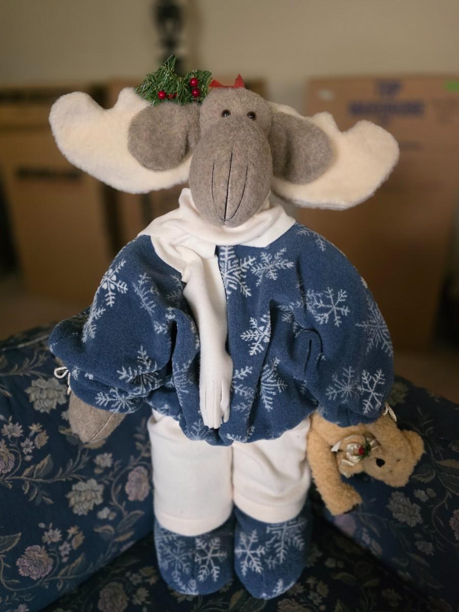 Vintage Blue Floral Sofa by Norwalk with Winter Moose.