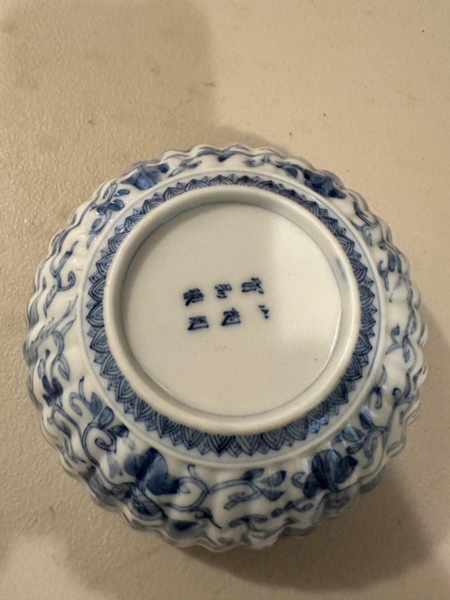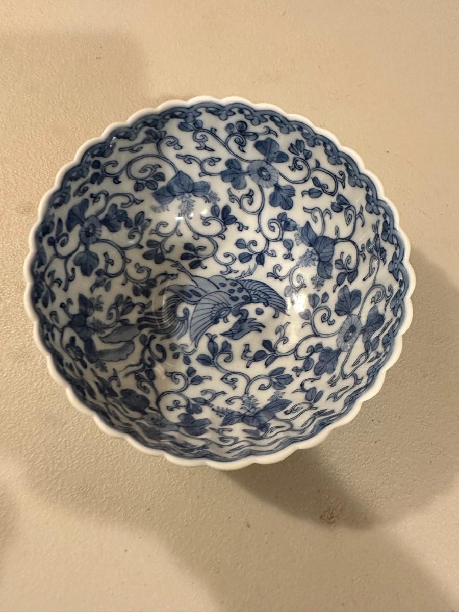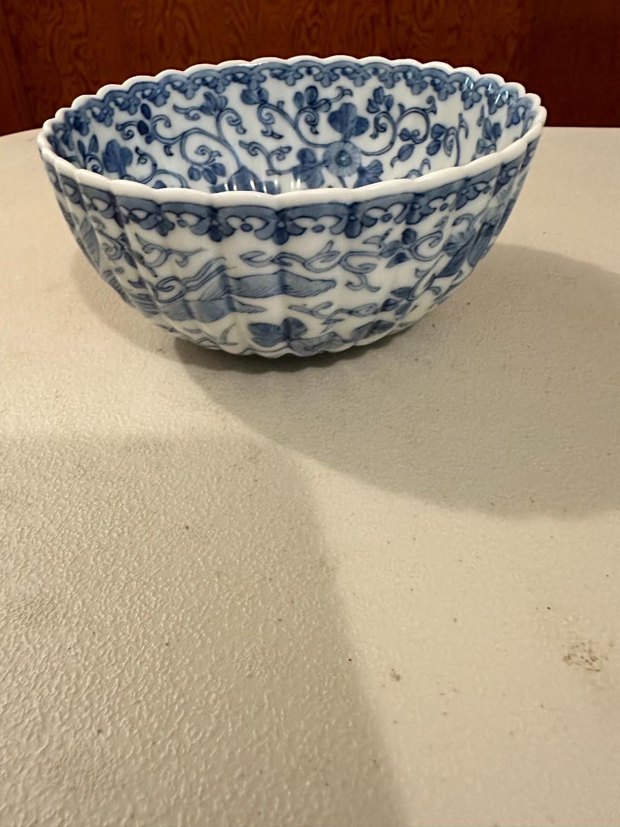 Vintage Blue Floral Three Peaks porcelain Japanese bowl