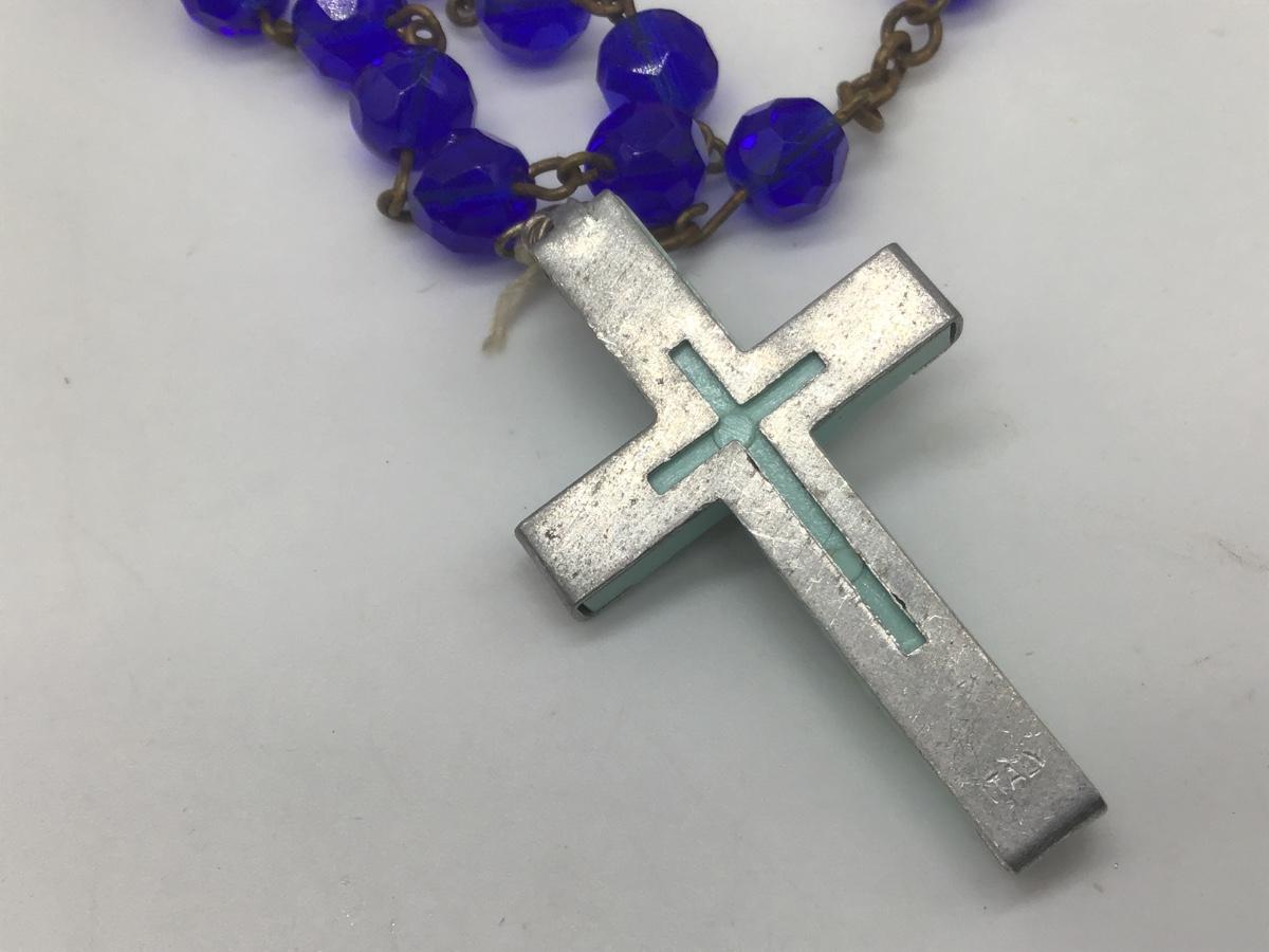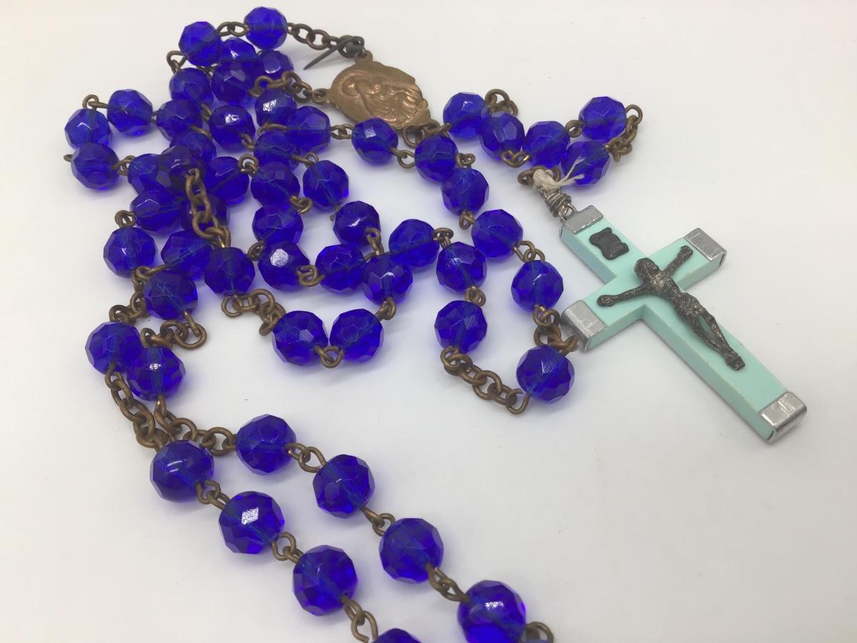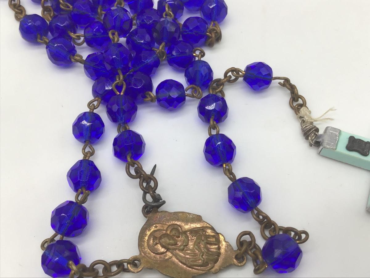 Vintage Blue Glass Beaded Necklace Rosary