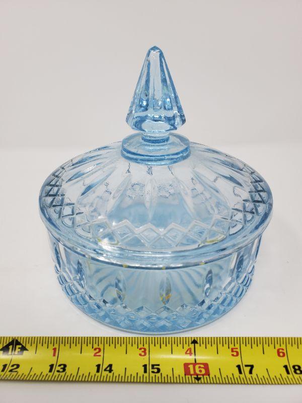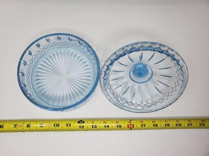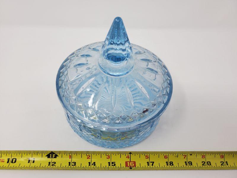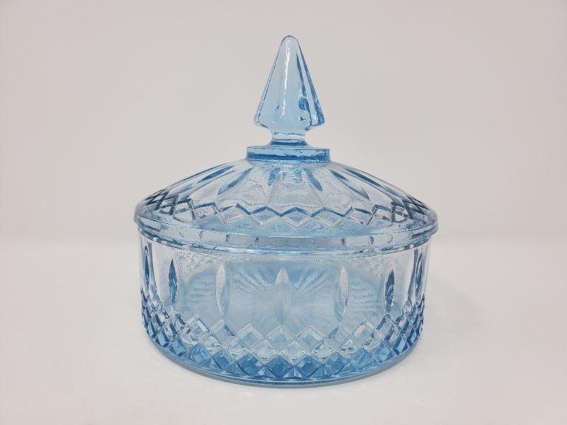 VINTAGE BLUE GLASS CANDY DISH WITH LID