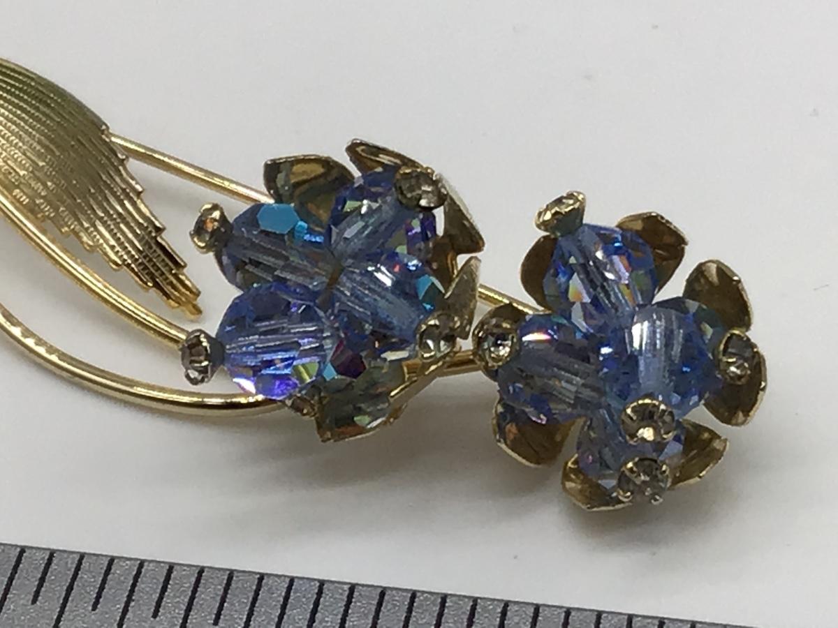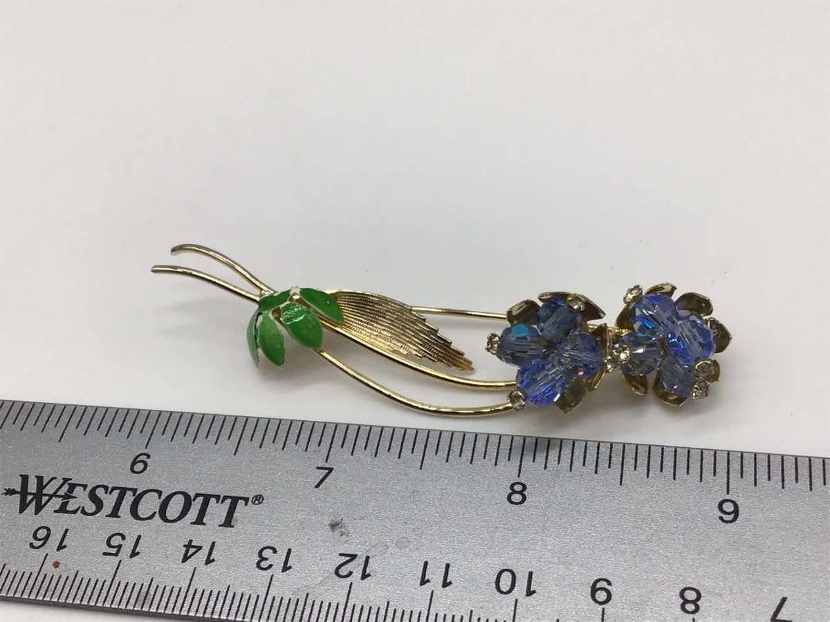 Vintage Blue Glass Flower Brooch