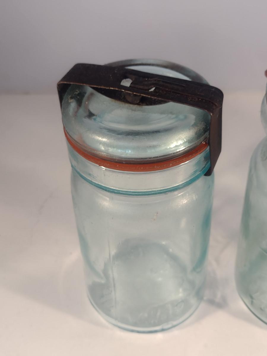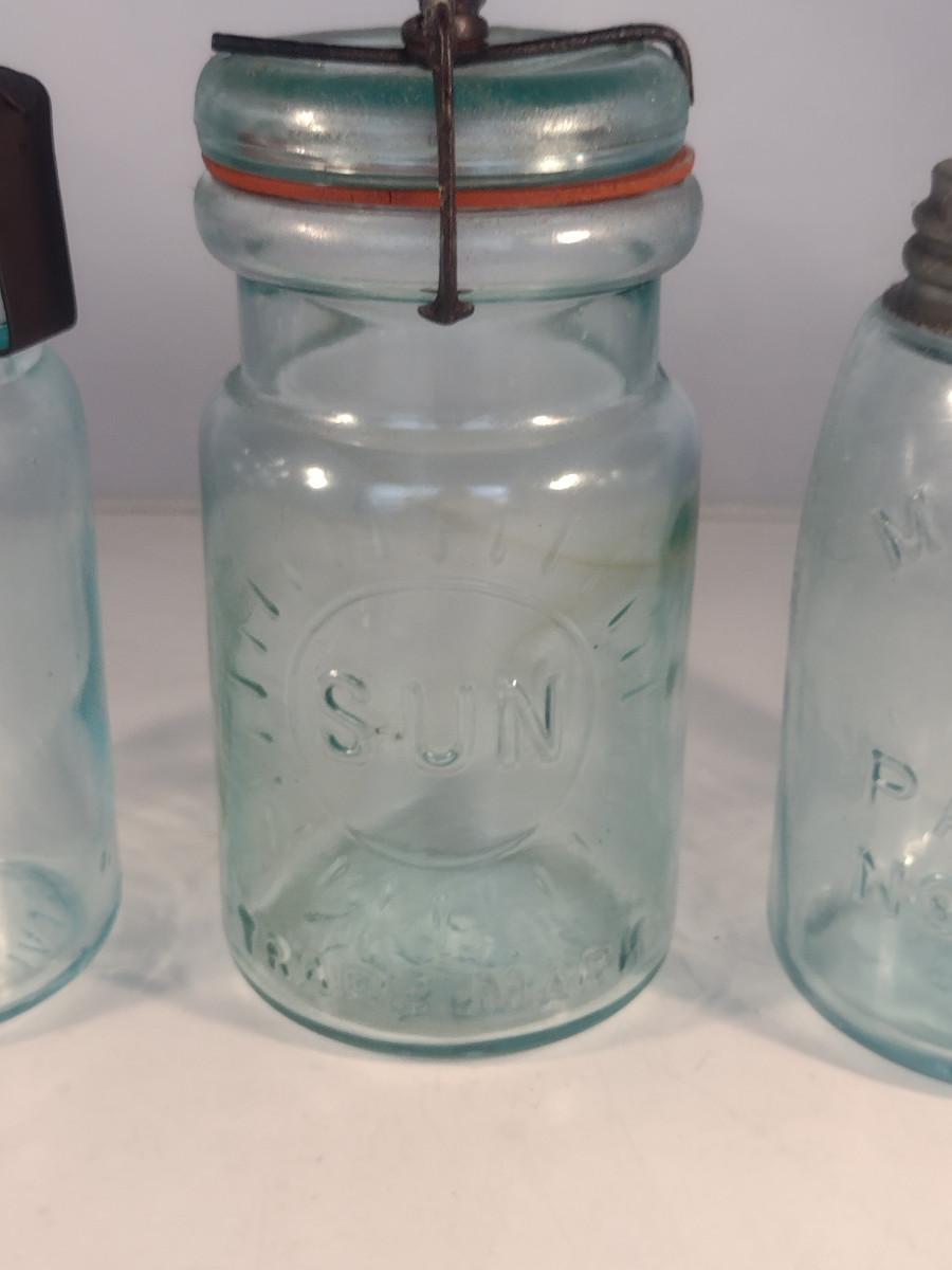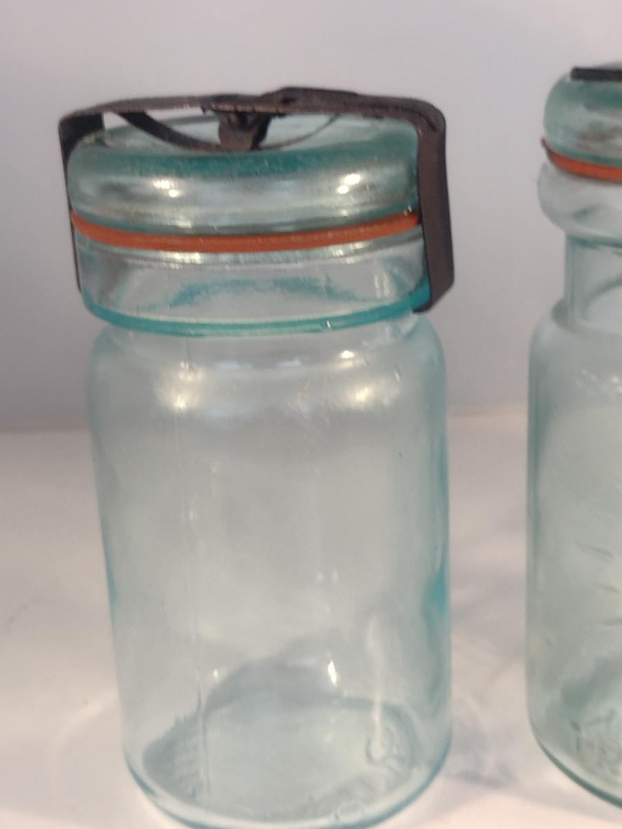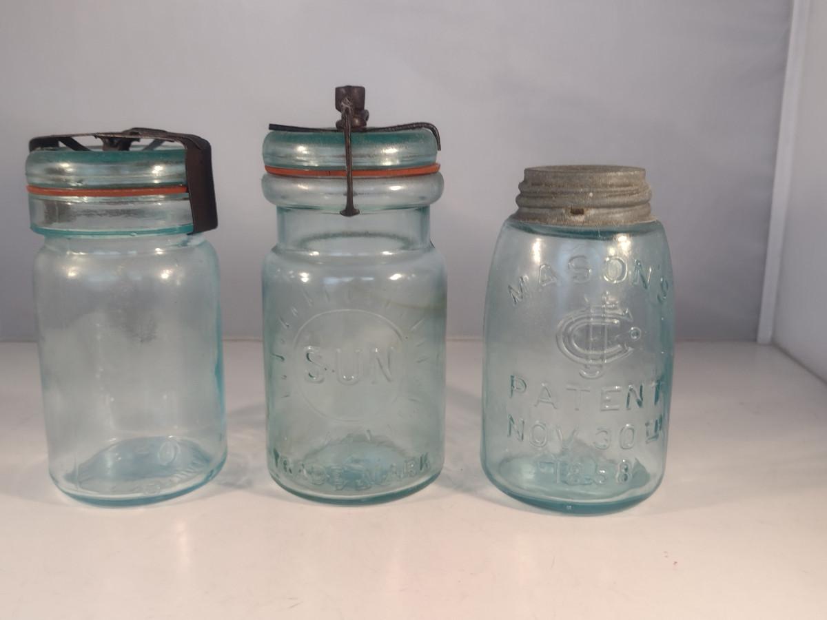 Vintage Blue Glass Jars- Pint Size- Three Pieces (#2)