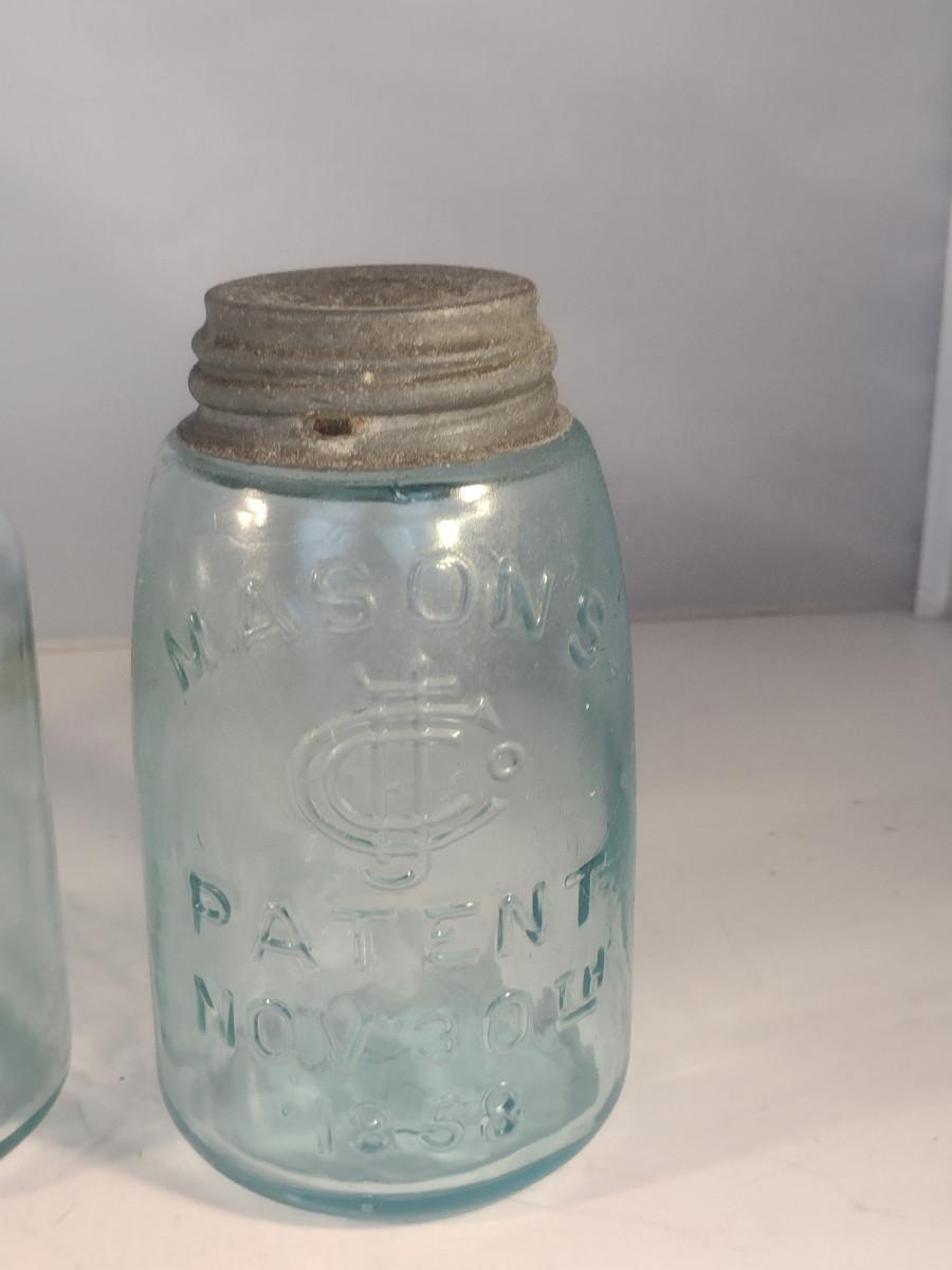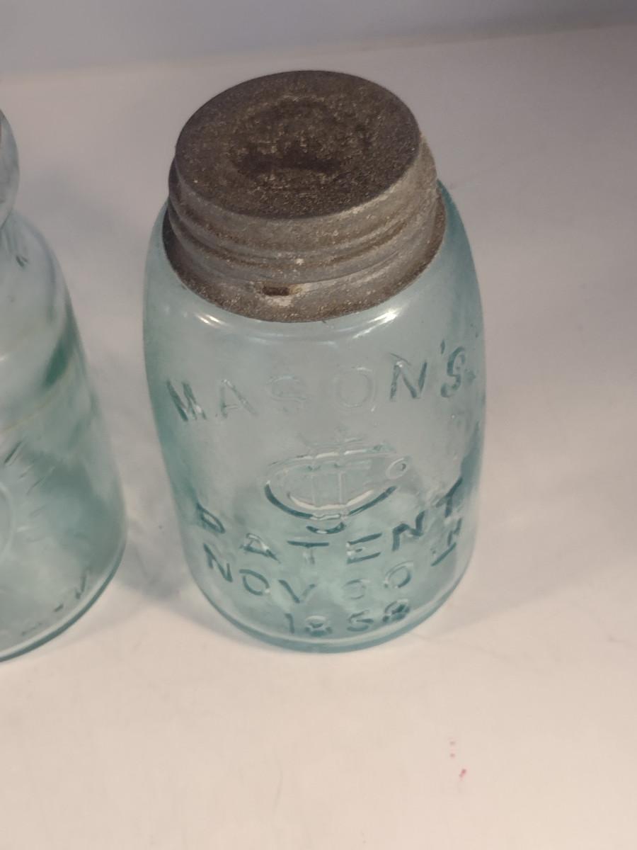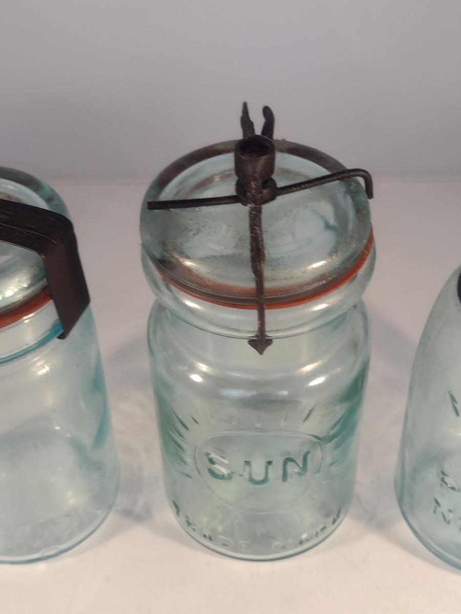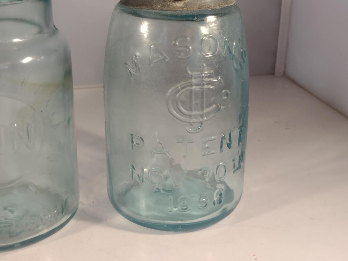 Vintage Blue Glass Jars- Pint Size- Three Pieces (#2)