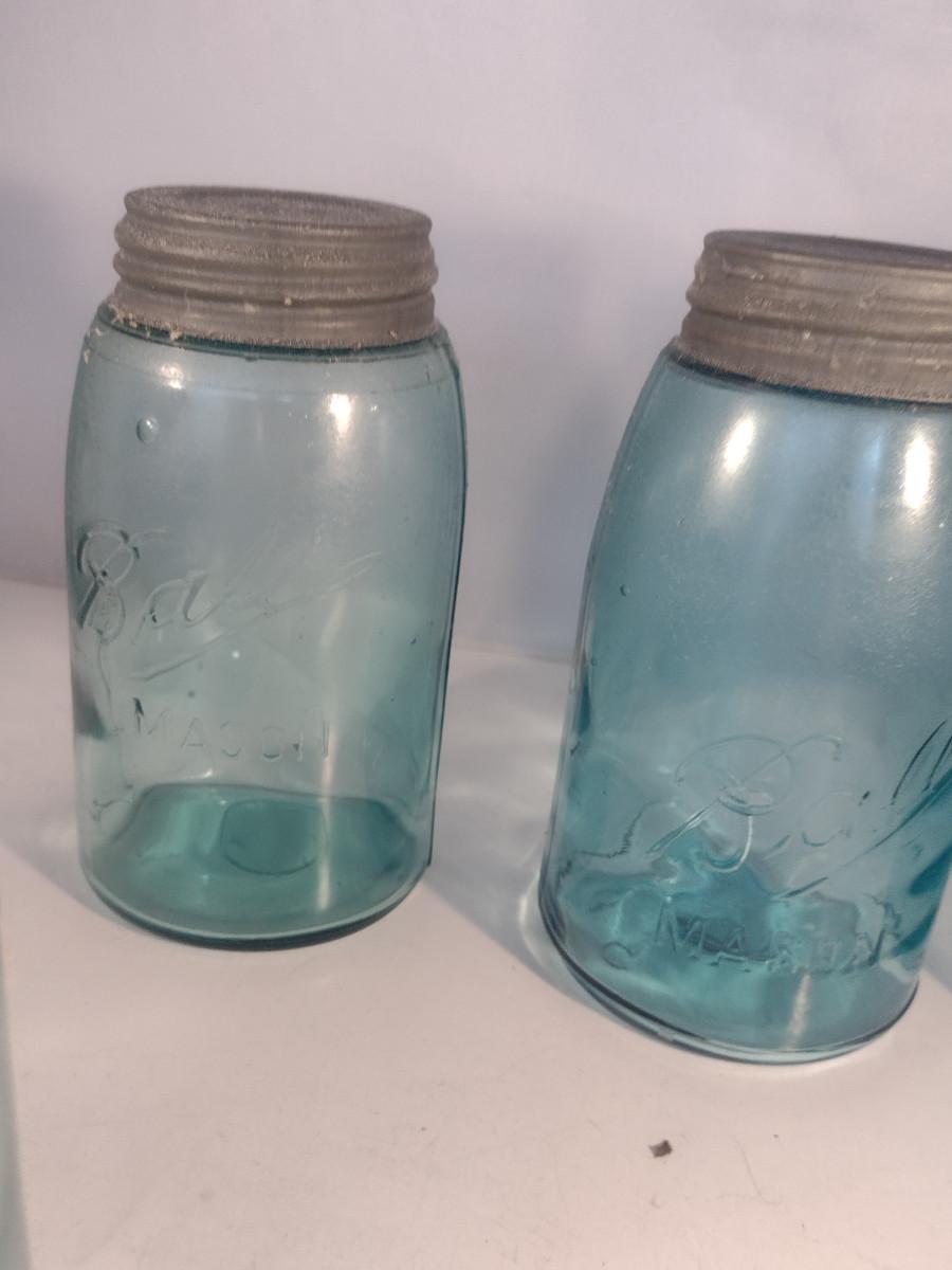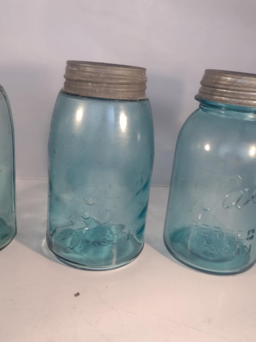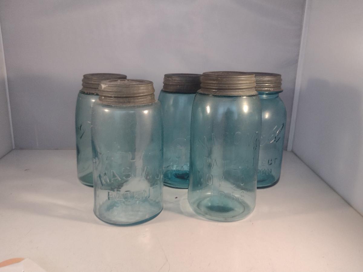 Vintage Blue Glass Jars- Pint Size- Five Pieces (#3)