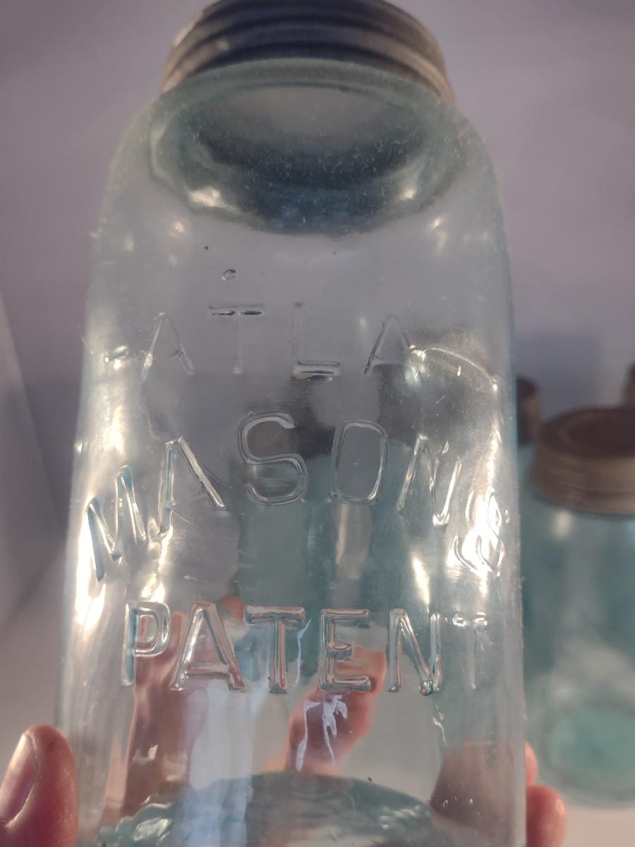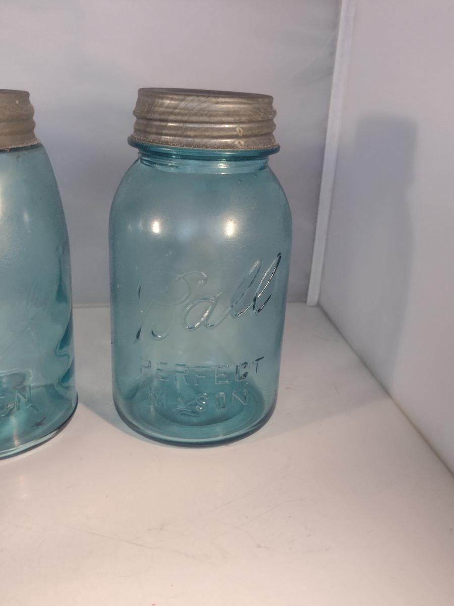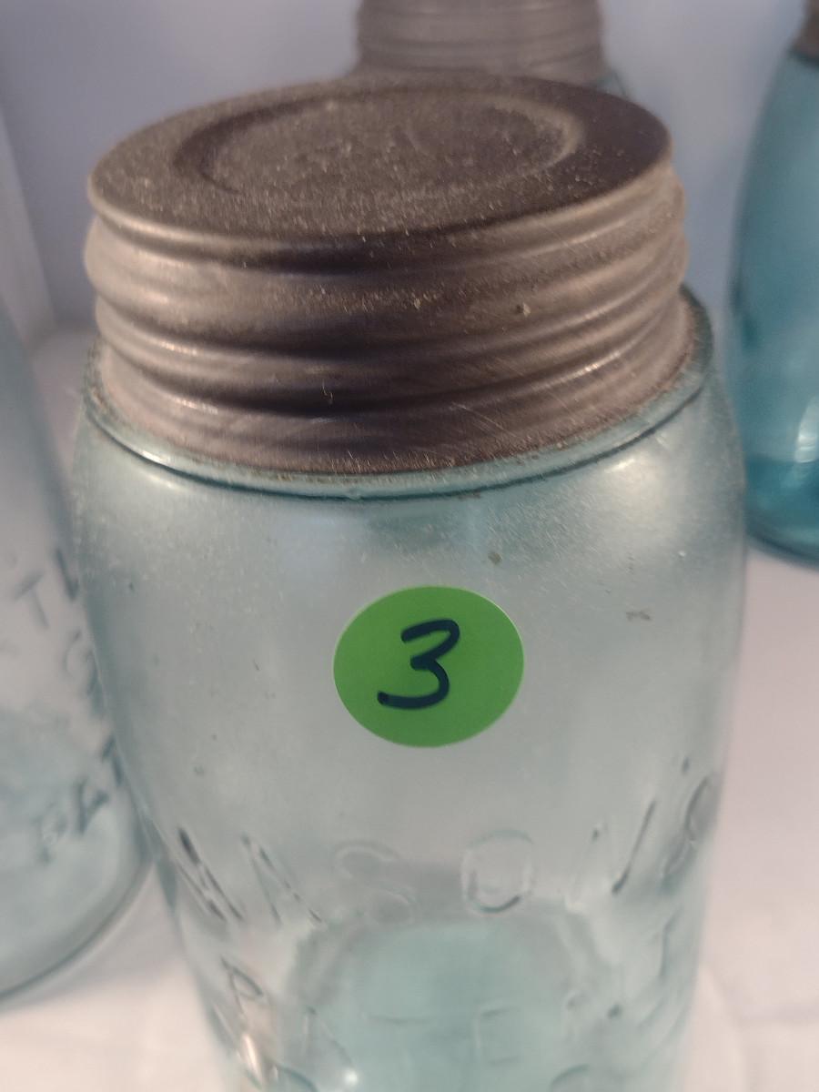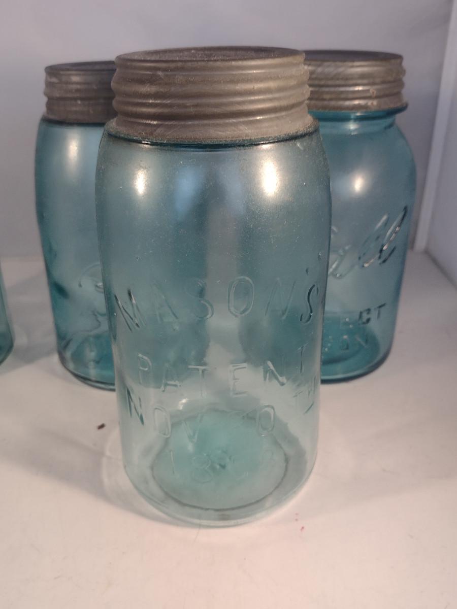 Vintage Blue Glass Jars- Pint Size- Five Pieces (#3)