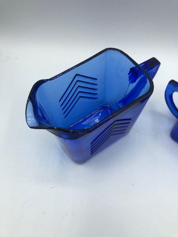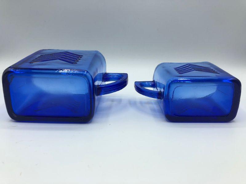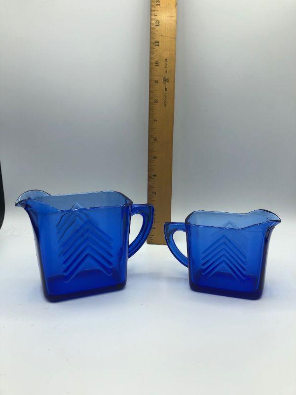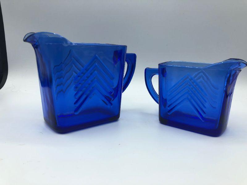 Set of vintage measuring cup pitchers. Rounded square shape. The only markings are the arrows on the sides. Not sure of the maker. Good Condition, no chips.
