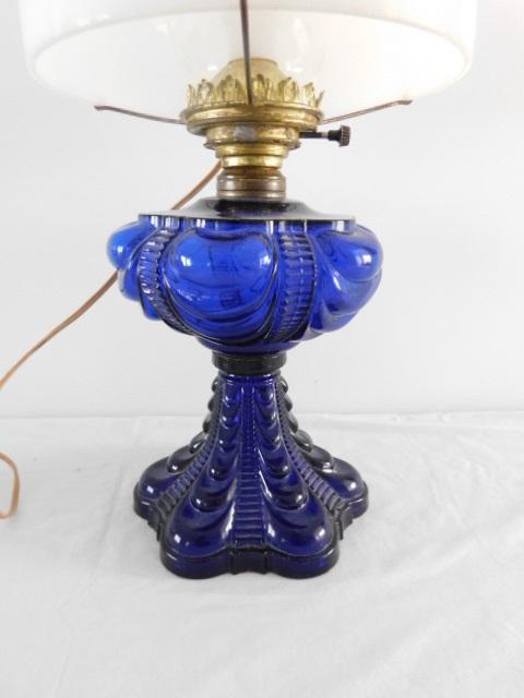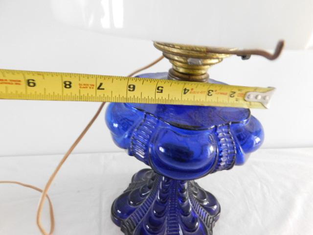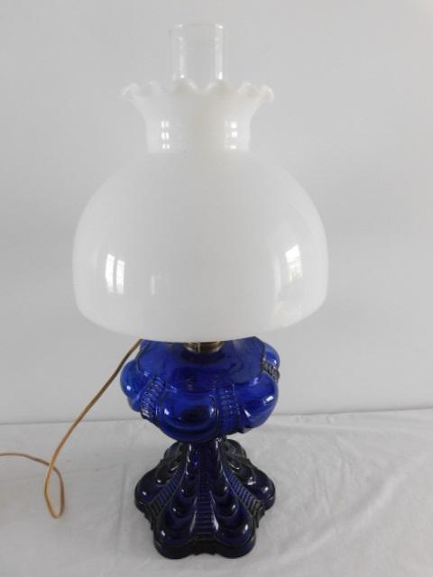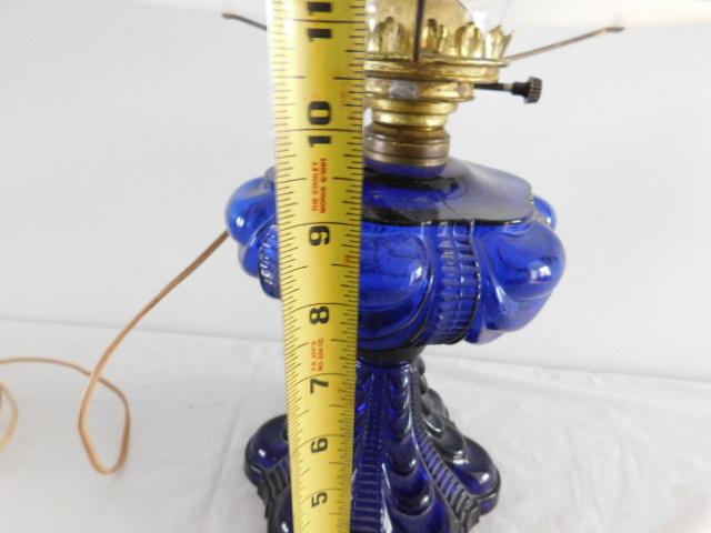 Vintage Blue Glass Post Table Lamp 7" Body #2 of 2