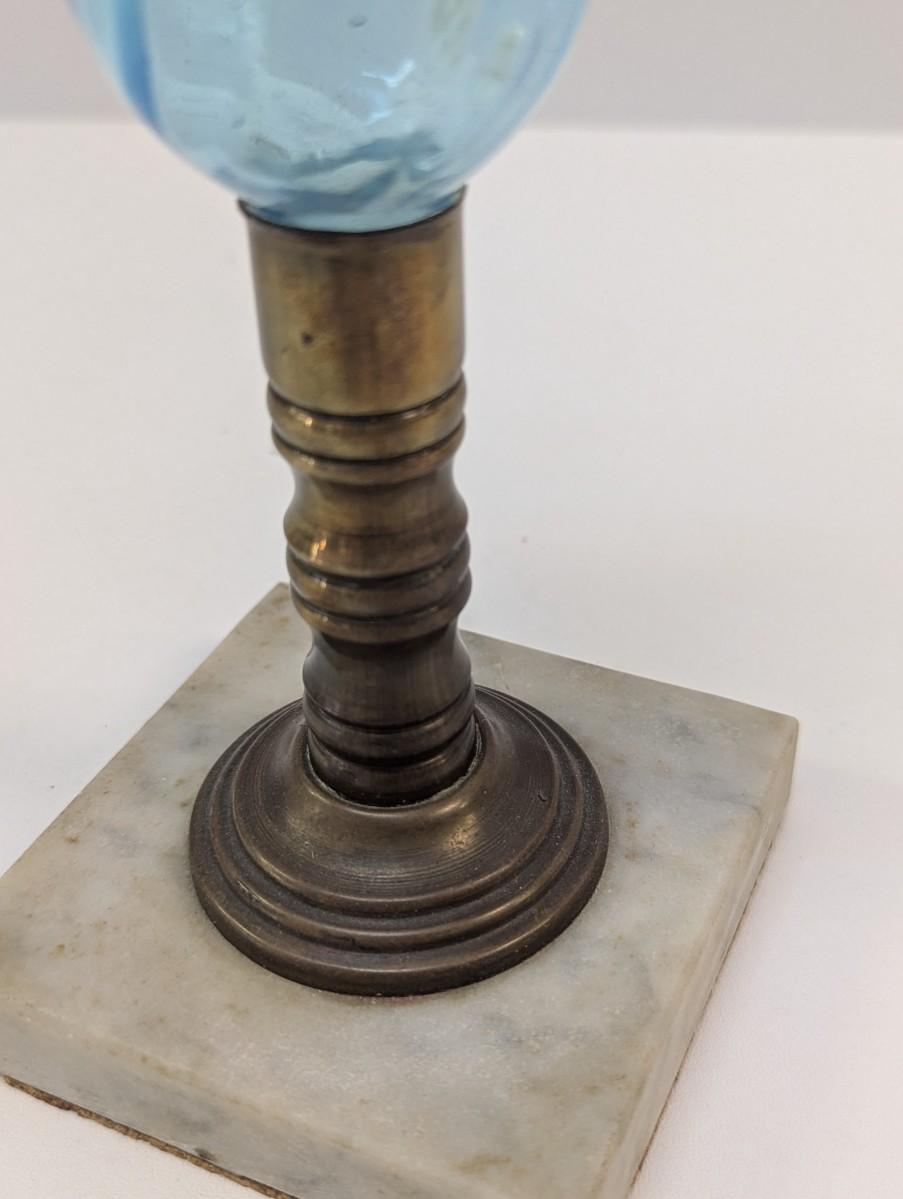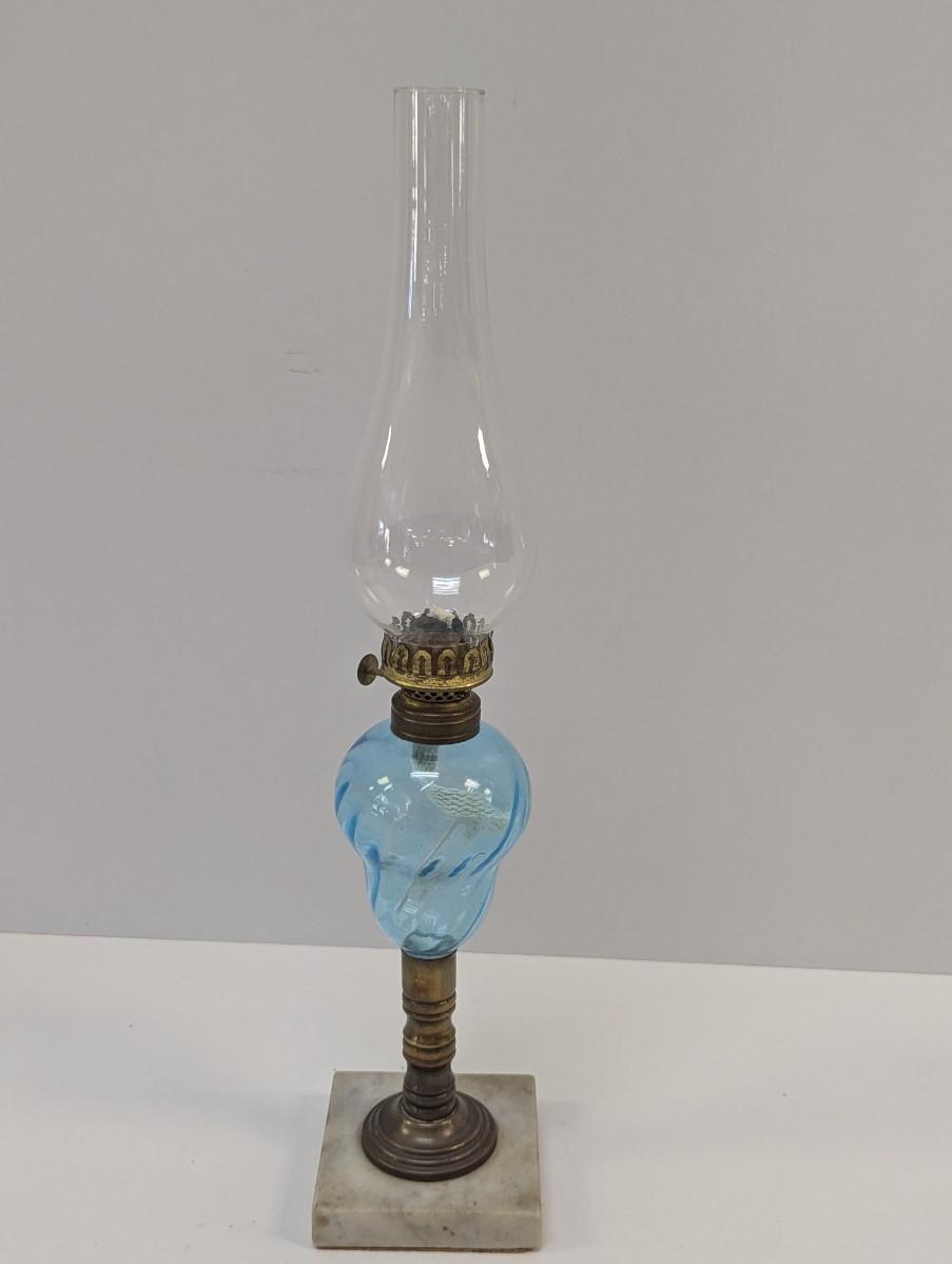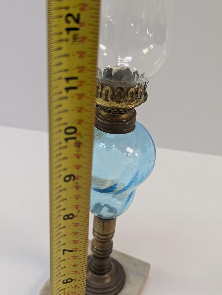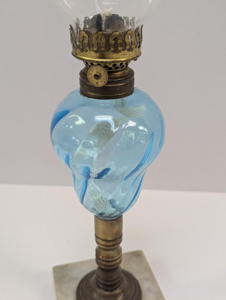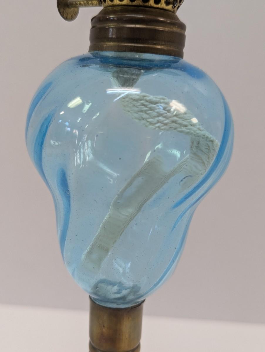 Vintage Blue Glass Swirl & Stone Bass Oil Lamp