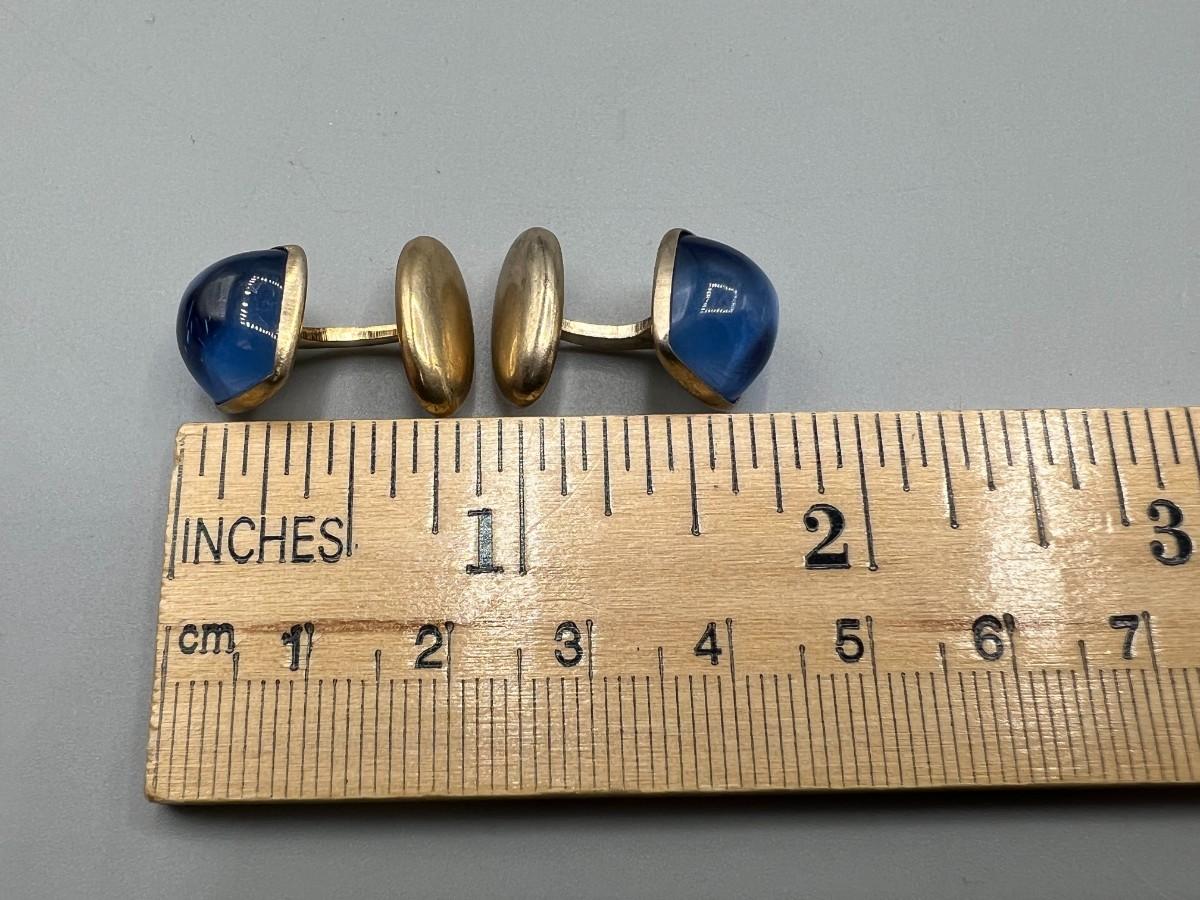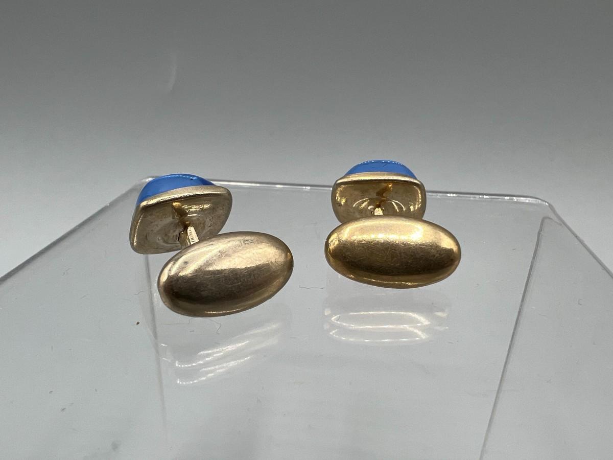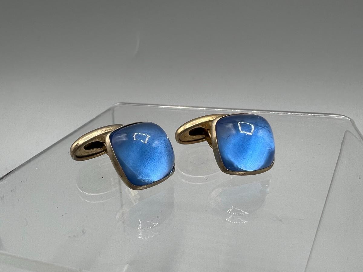 Pair of vintage cuff links. Pale blue glow on fixed setting. Good condition.
