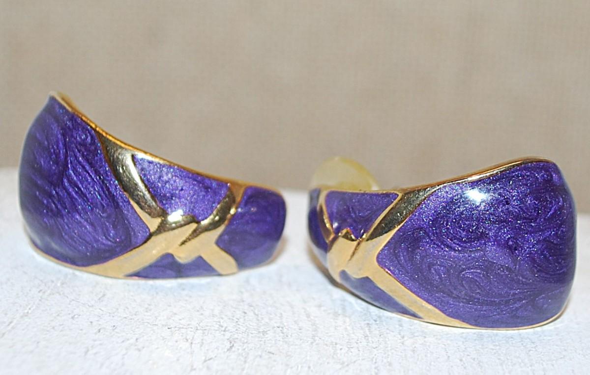 VINTAGE Blue & Gold Colored Curved Earrings Set (1") with 2 DIFFERENT Stud Style Clasps
