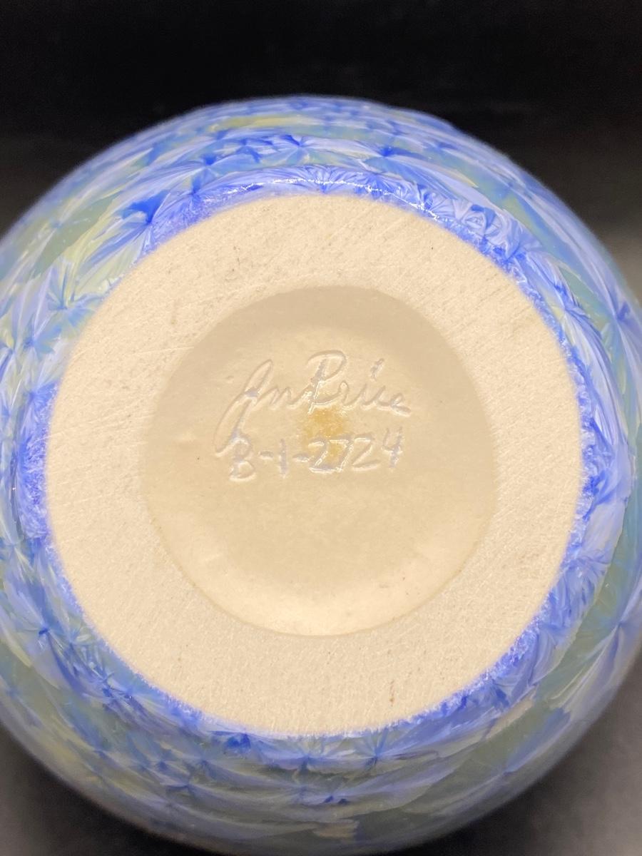 Vintage Blue Gold Crystalline Pottery Vase Artist Jon Price Signed Numbered