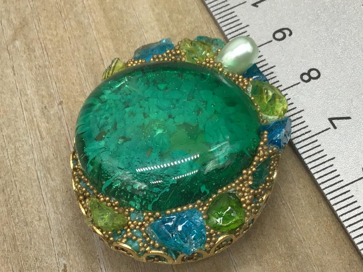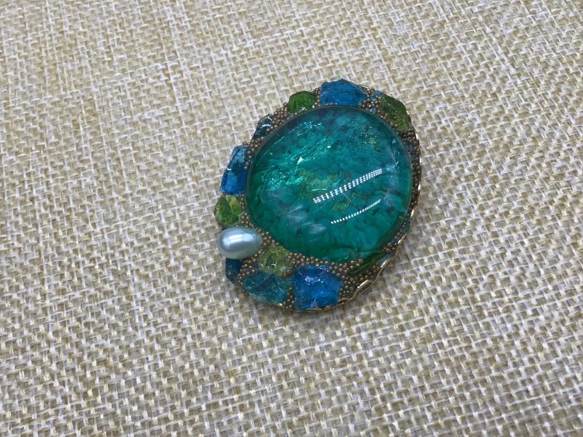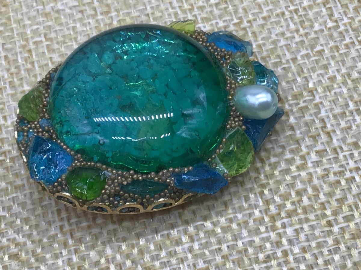 Vintage Blue/ Green Faux Pearl Art Nouveau with Brooch Pin Unique