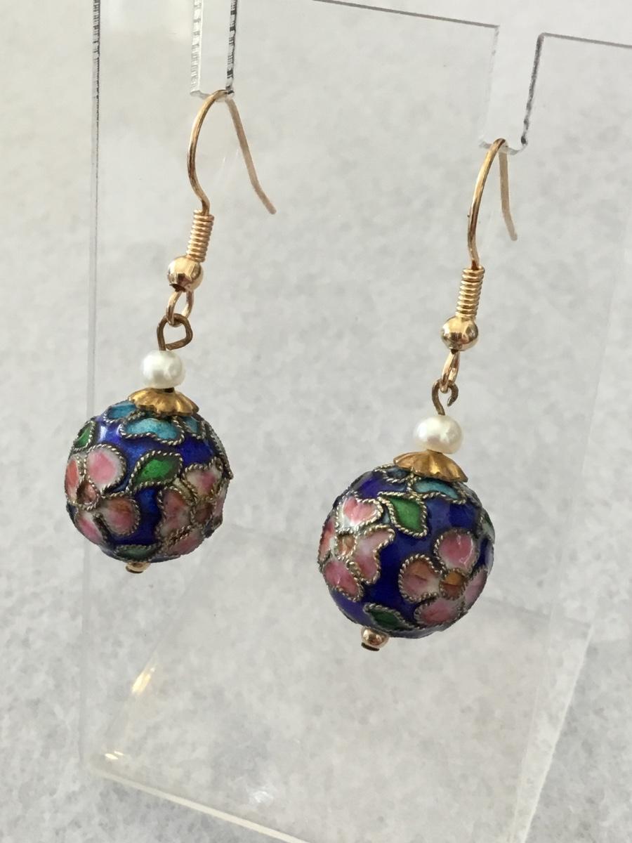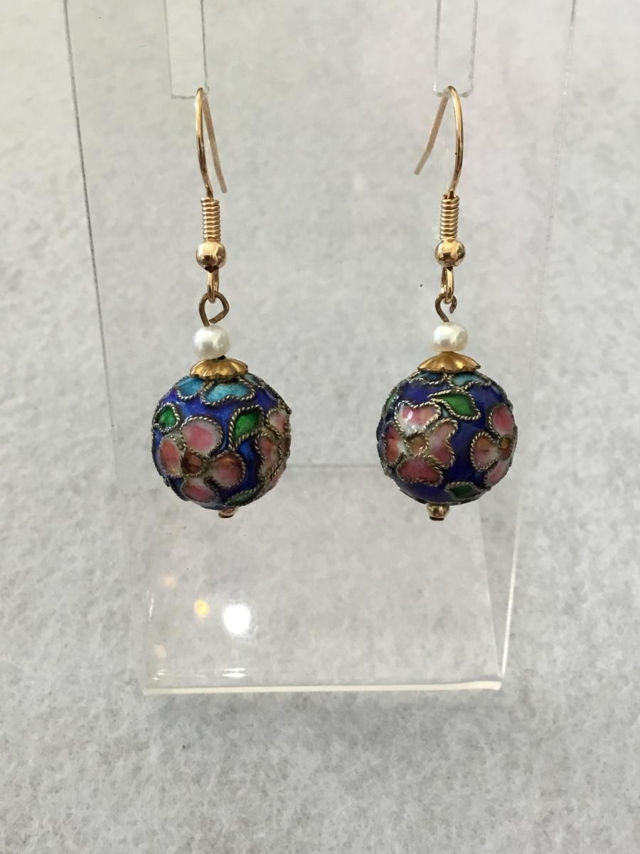 Vintage blue green pink cloisonné enamel ball earrings