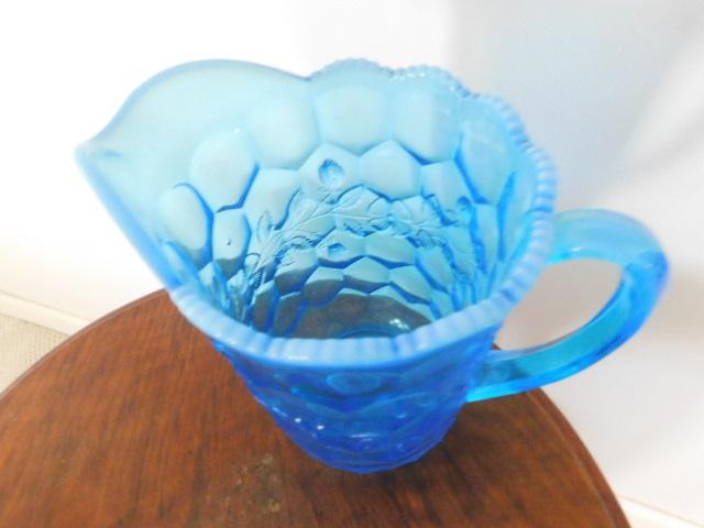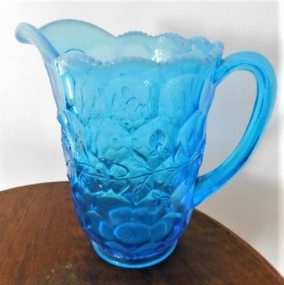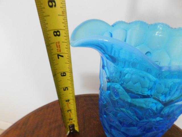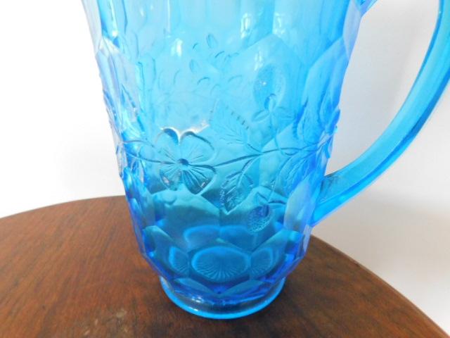 Vintage Blue Imperial Glass Sawtooth Rim Water Pitcher