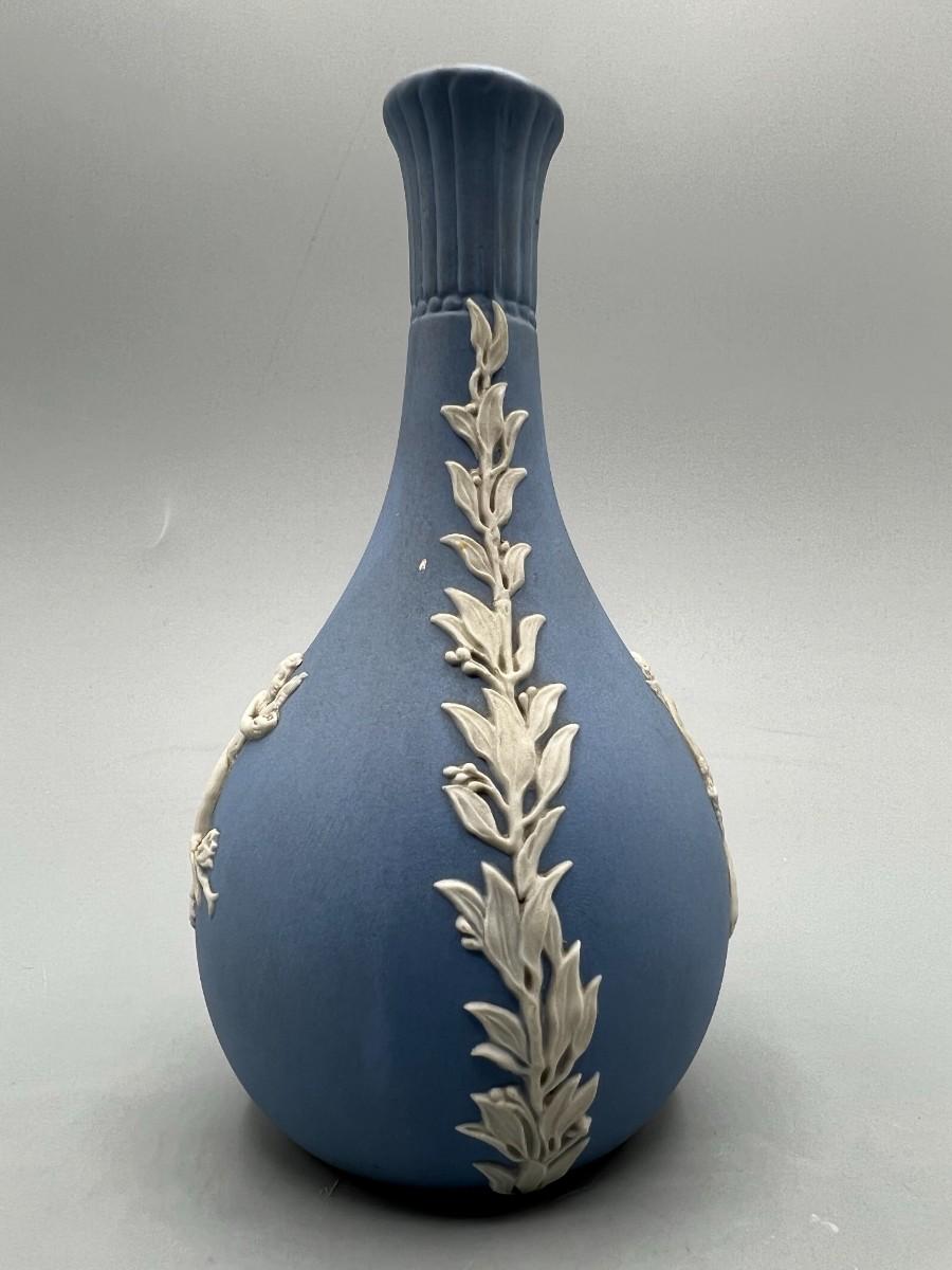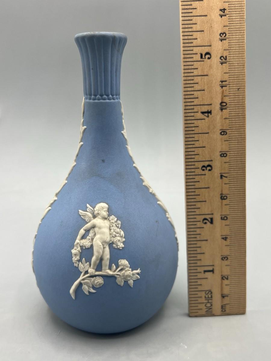 Vintage Blue Jasper Wedgwood Bud Vase. Under 6" size. Needs to be cleaned.